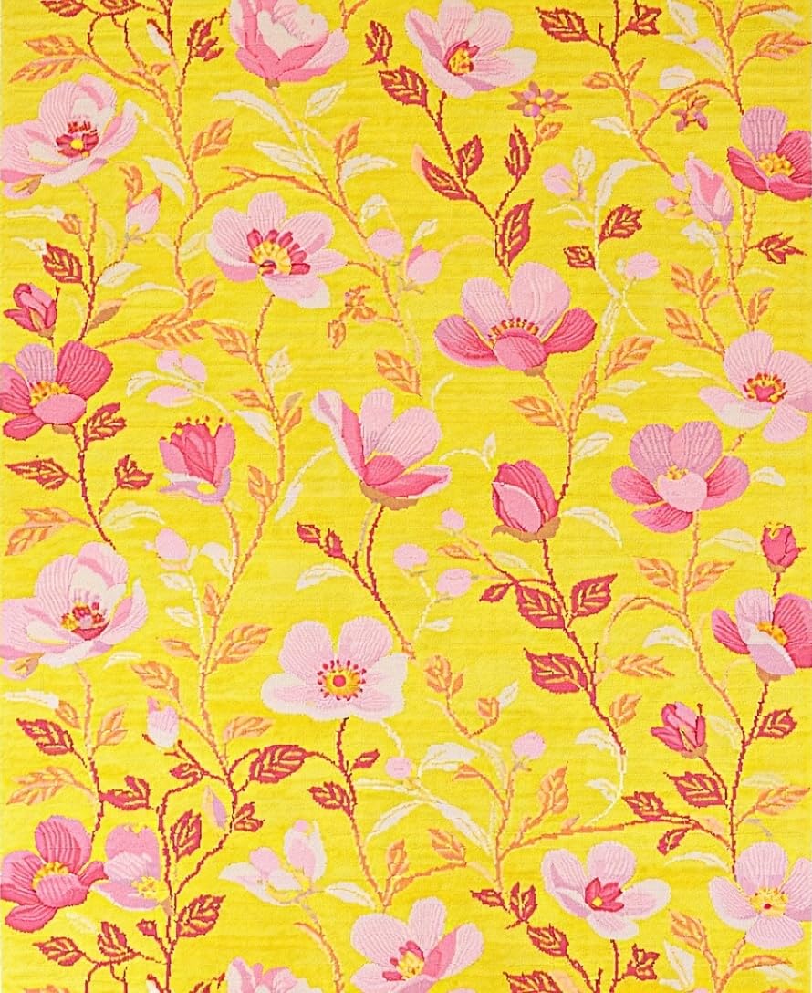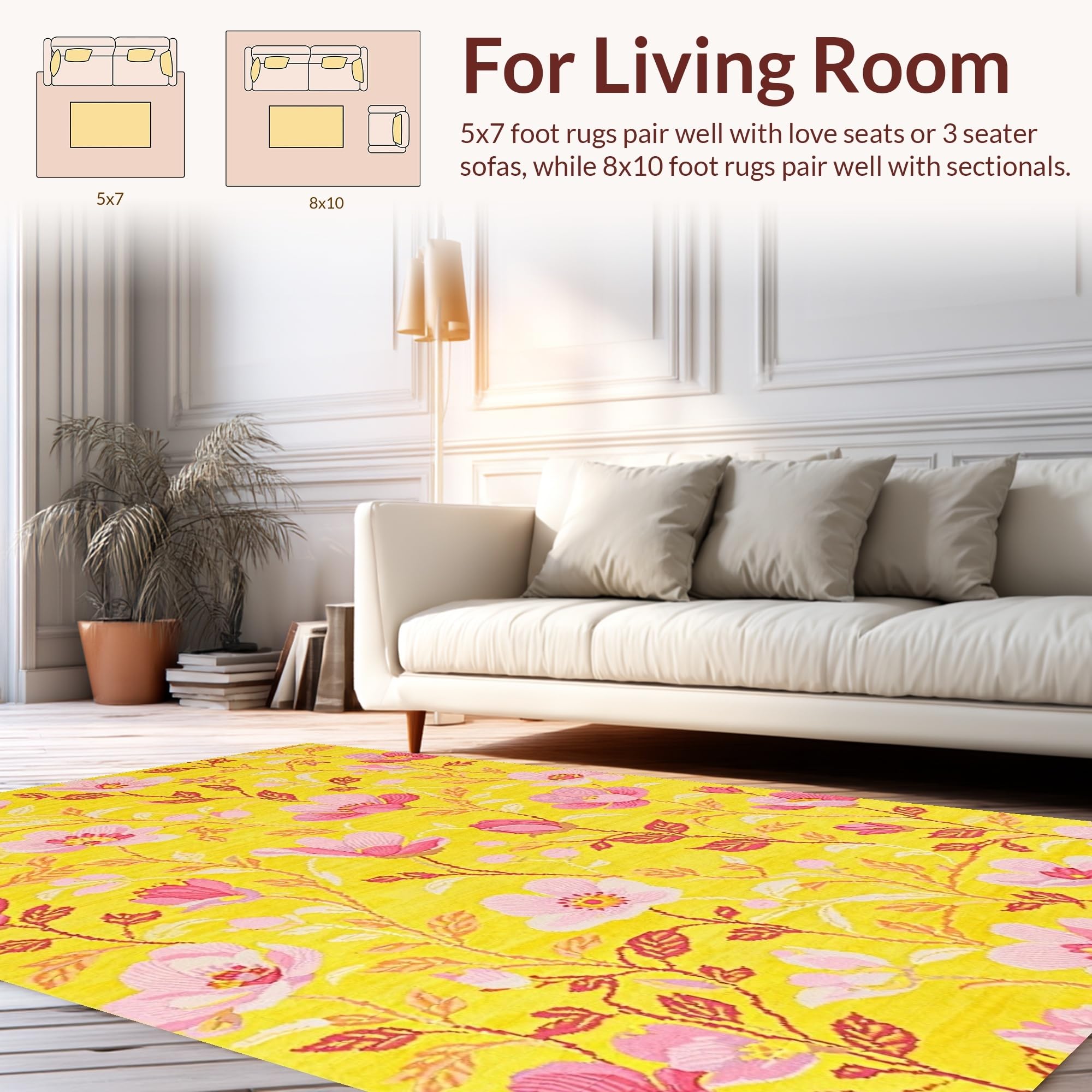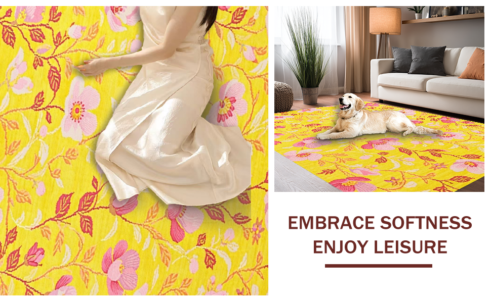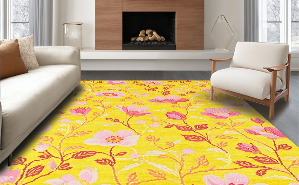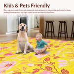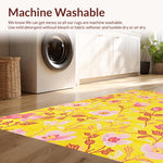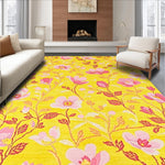 Ultra Soft Area Rug, Non Slip, Stain Resistant, Washable Area Rugs for Living Room, Bedroom, Charming Round Blossom Motif(Yellow) Overview: