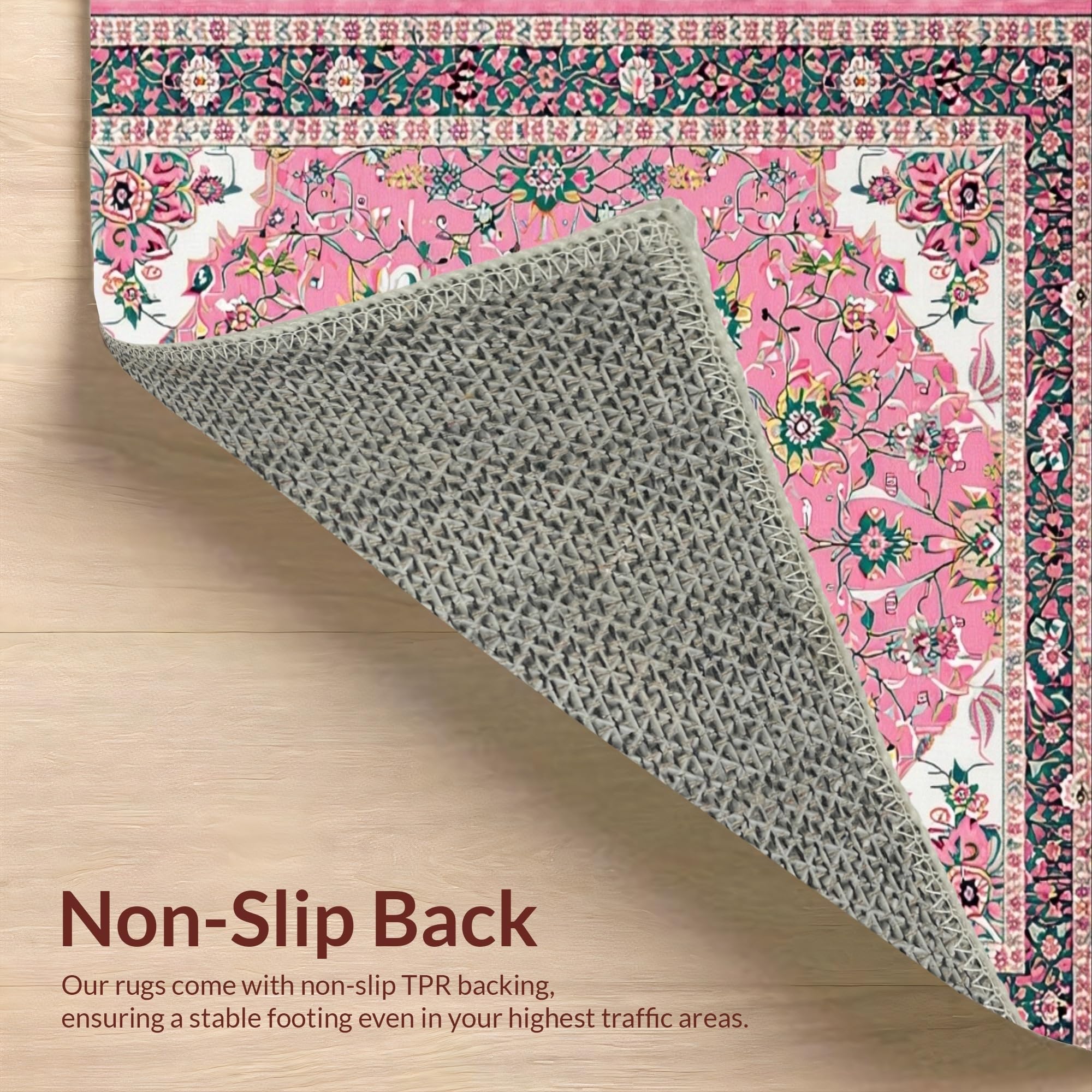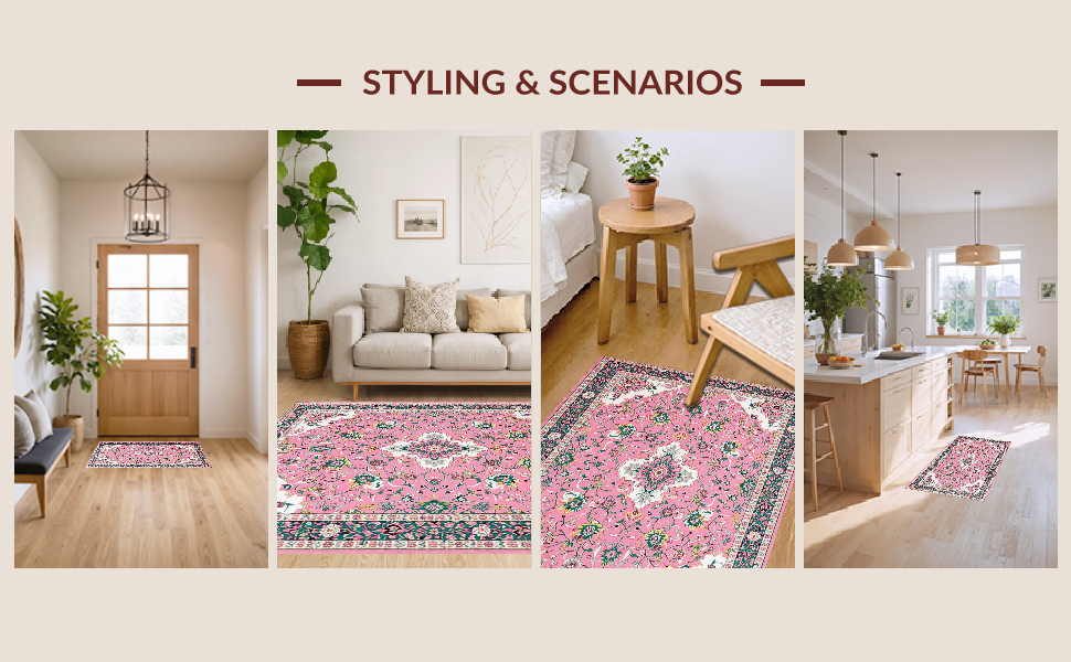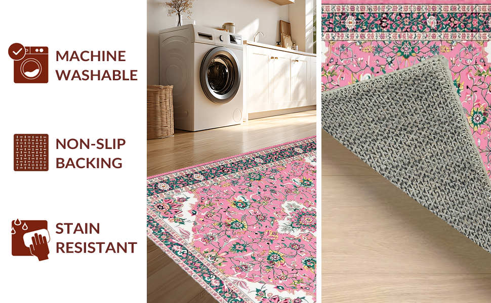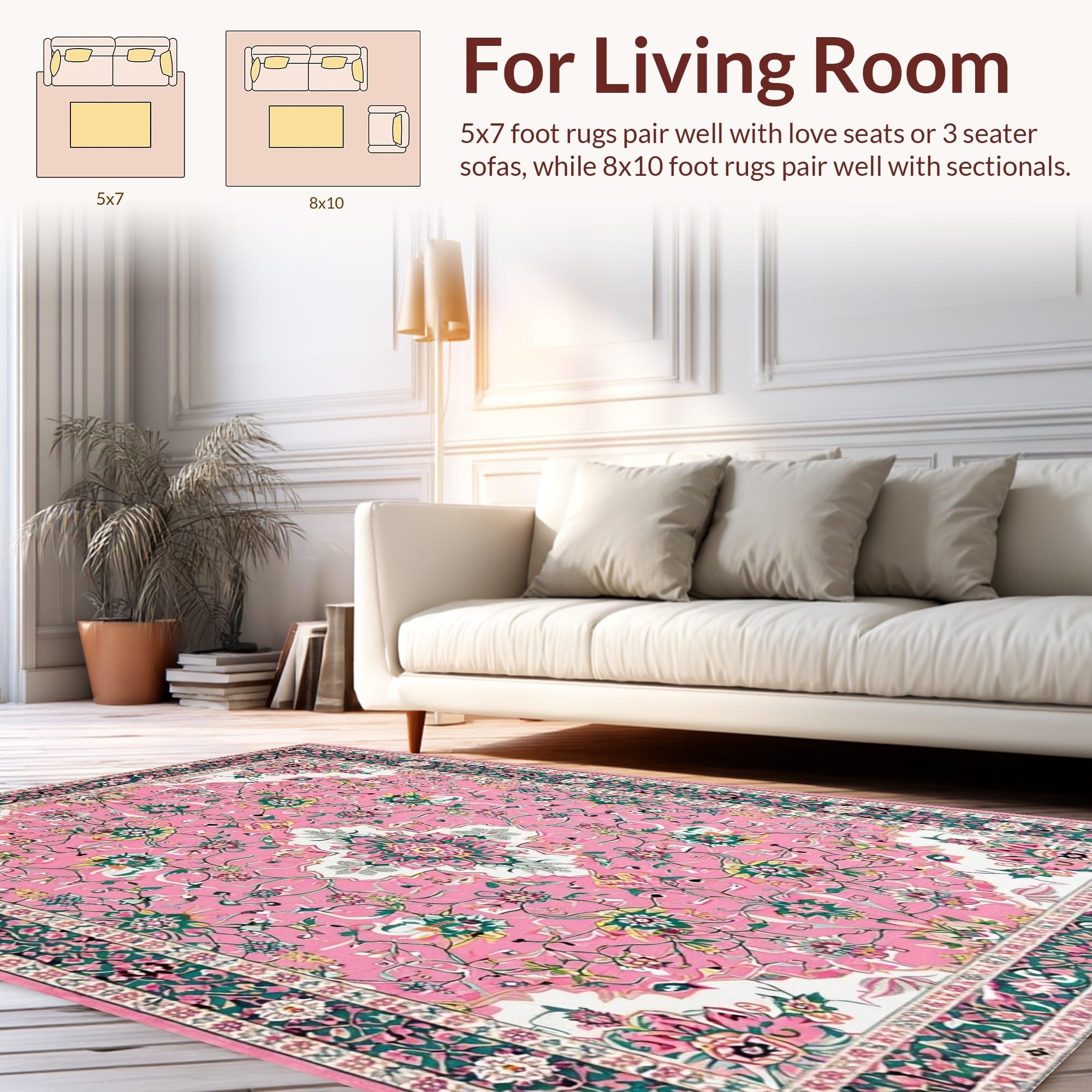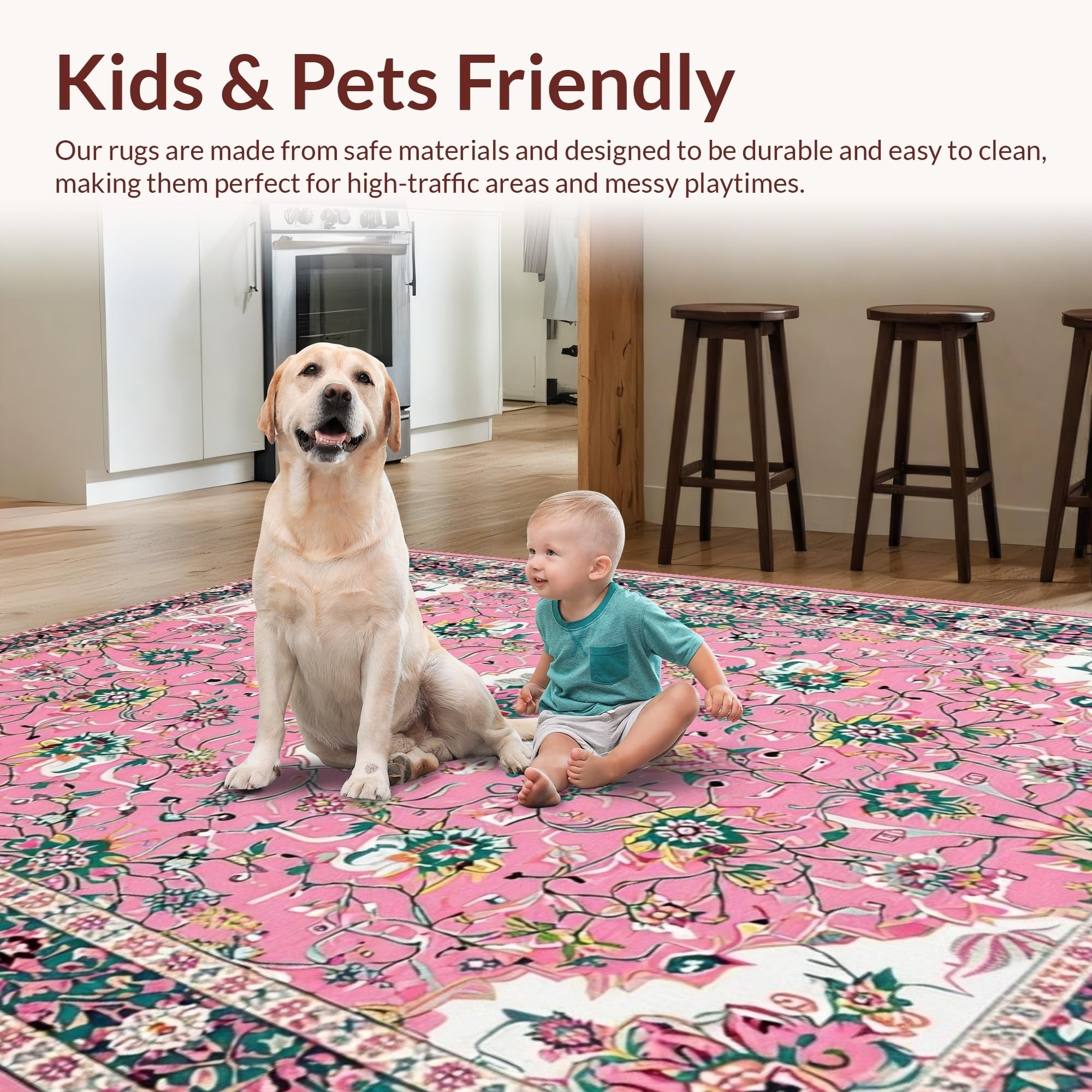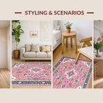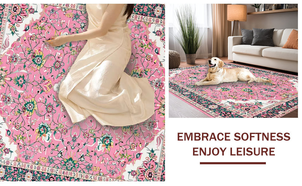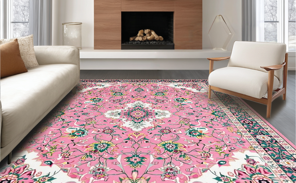 Ultra Soft Area Rug, Non Slip, Stain Resistant, Washable Area Rugs for Living Room, Bedroom, Charming Rustic Abstract Patterns(Pink) Overview: