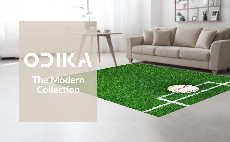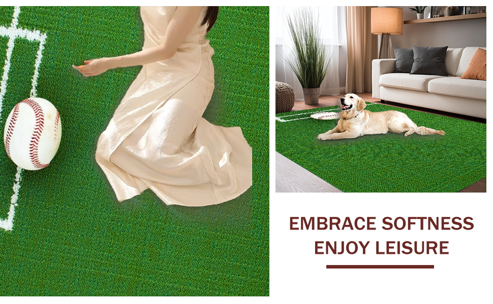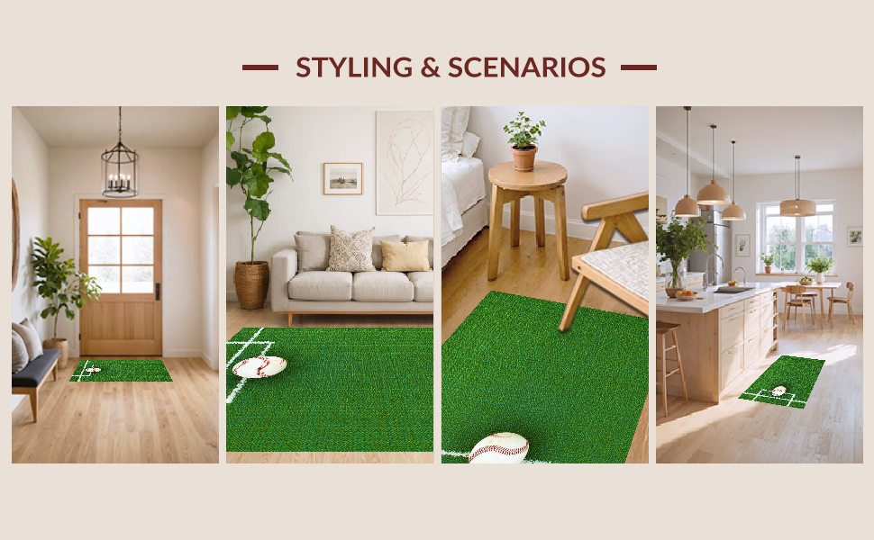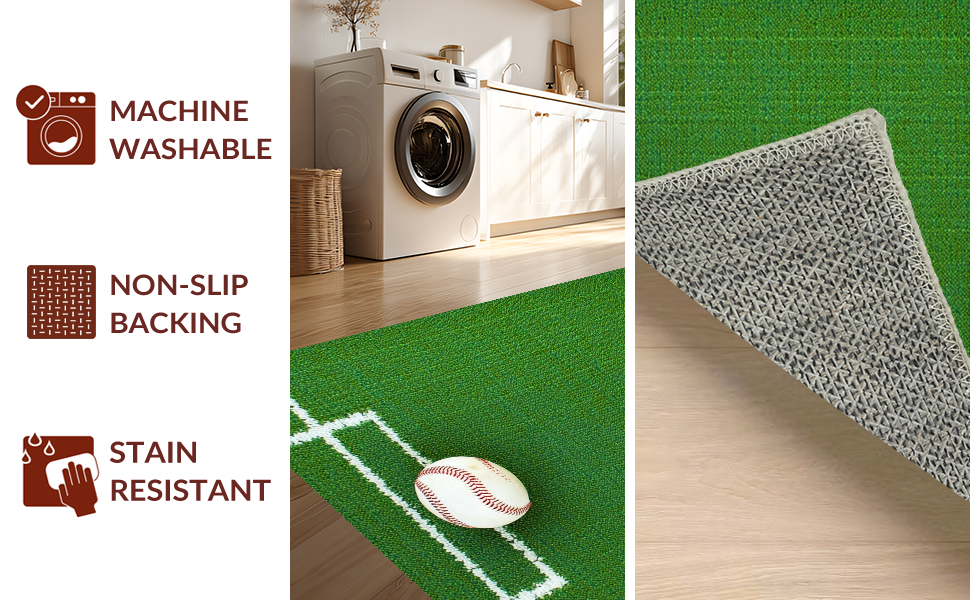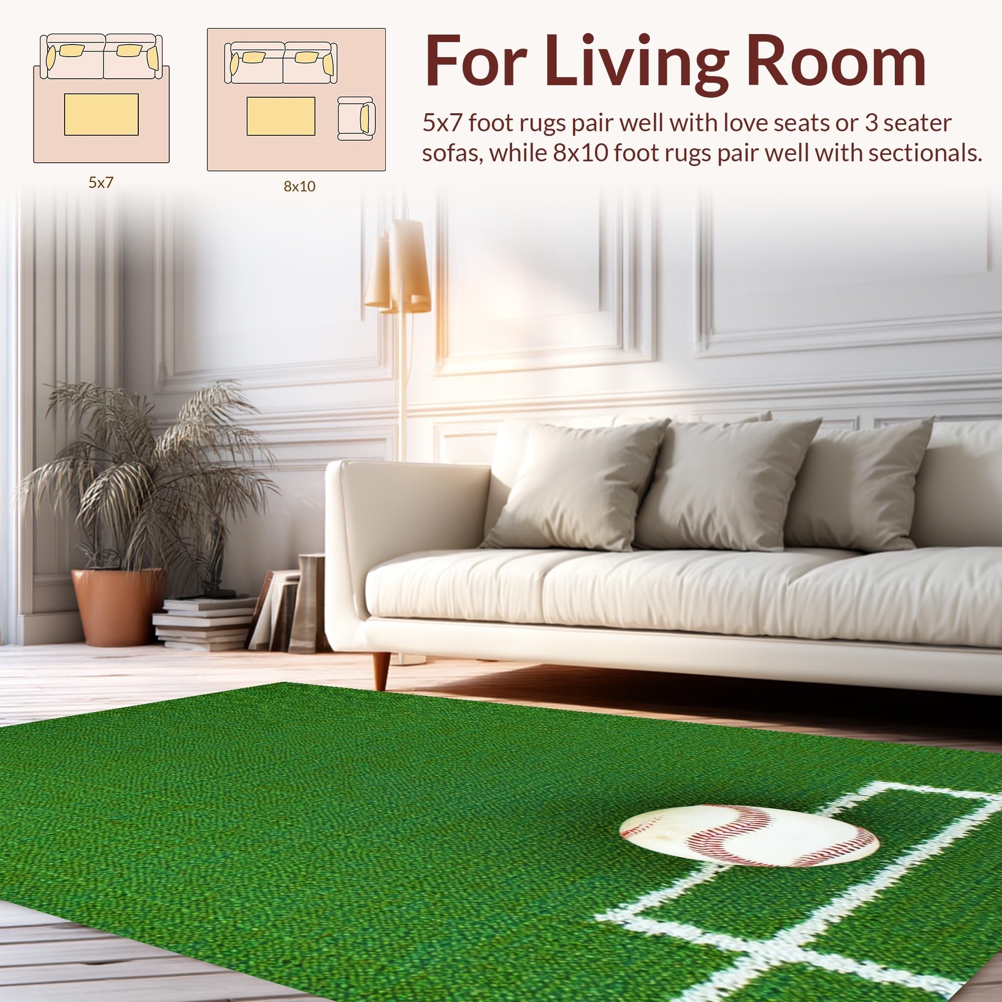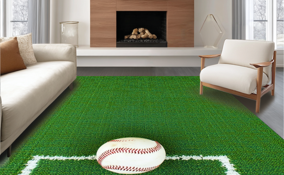 Ultra Soft Area Rug, Non Slip, Stain Resistant, Washable Area Rugs for Living Room, Bedroom, Charming Rustic Baseball Theme Accent(Green) Overview: