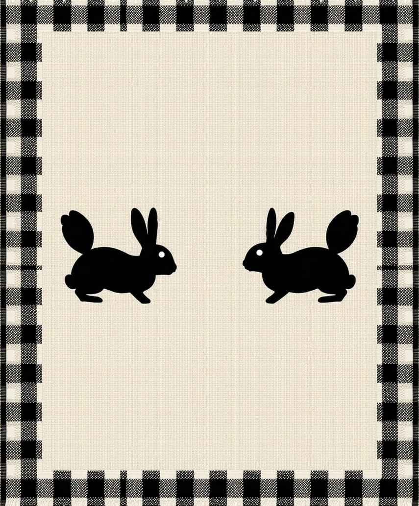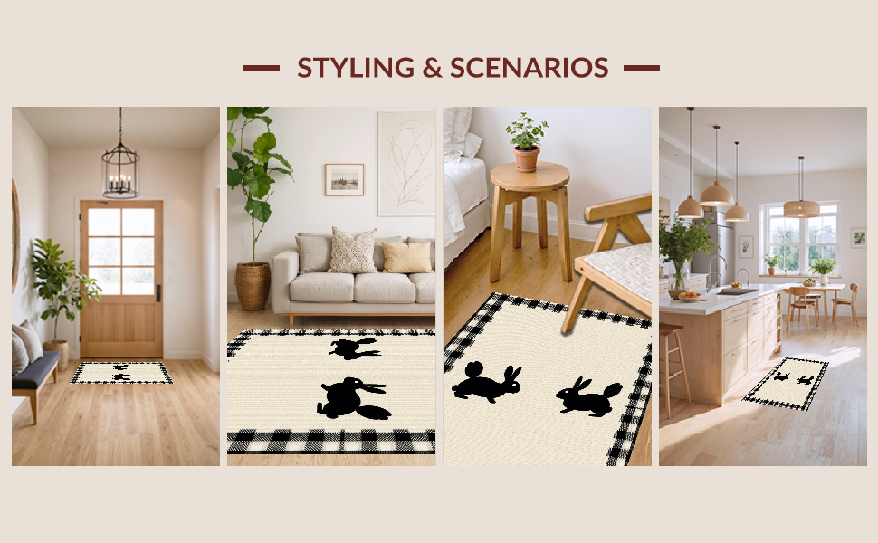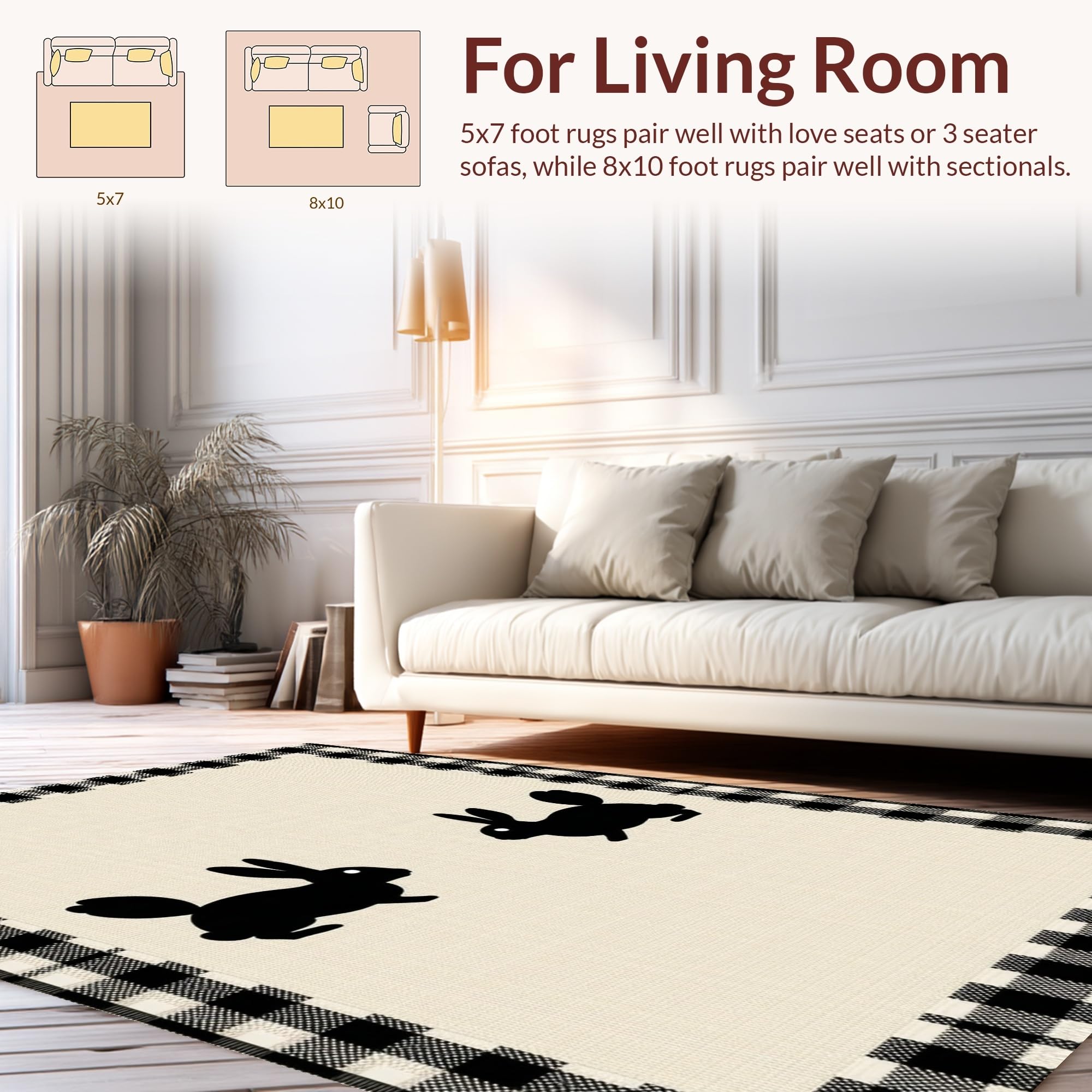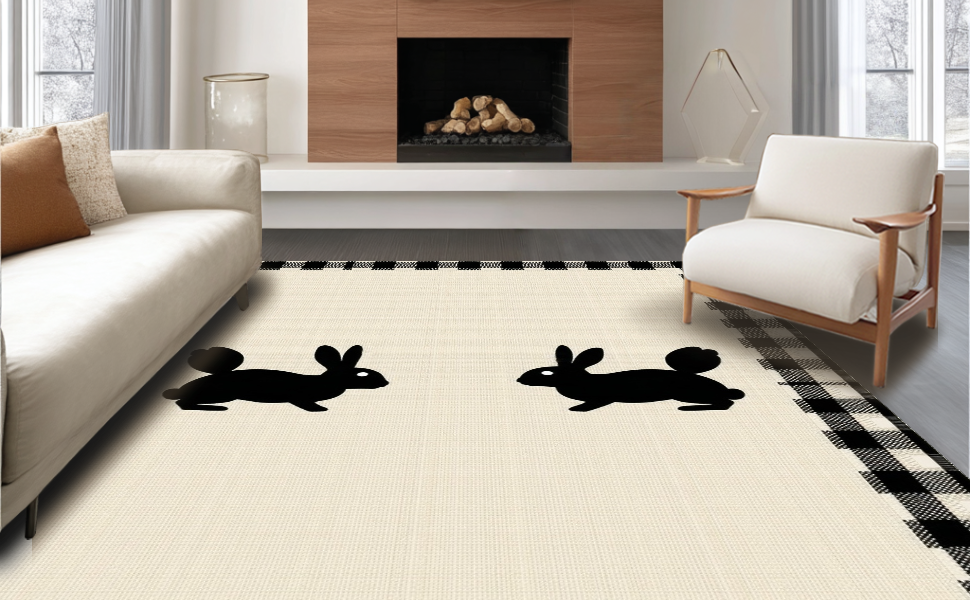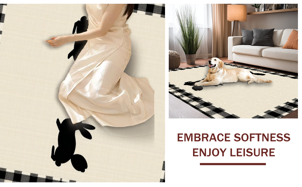 Ultra Soft Area Rug, Non Slip, Stain Resistant, Washable Area Rugs for Living Room, Bedroom, Charming Rustic Bunny Motif(Beige) Overview: