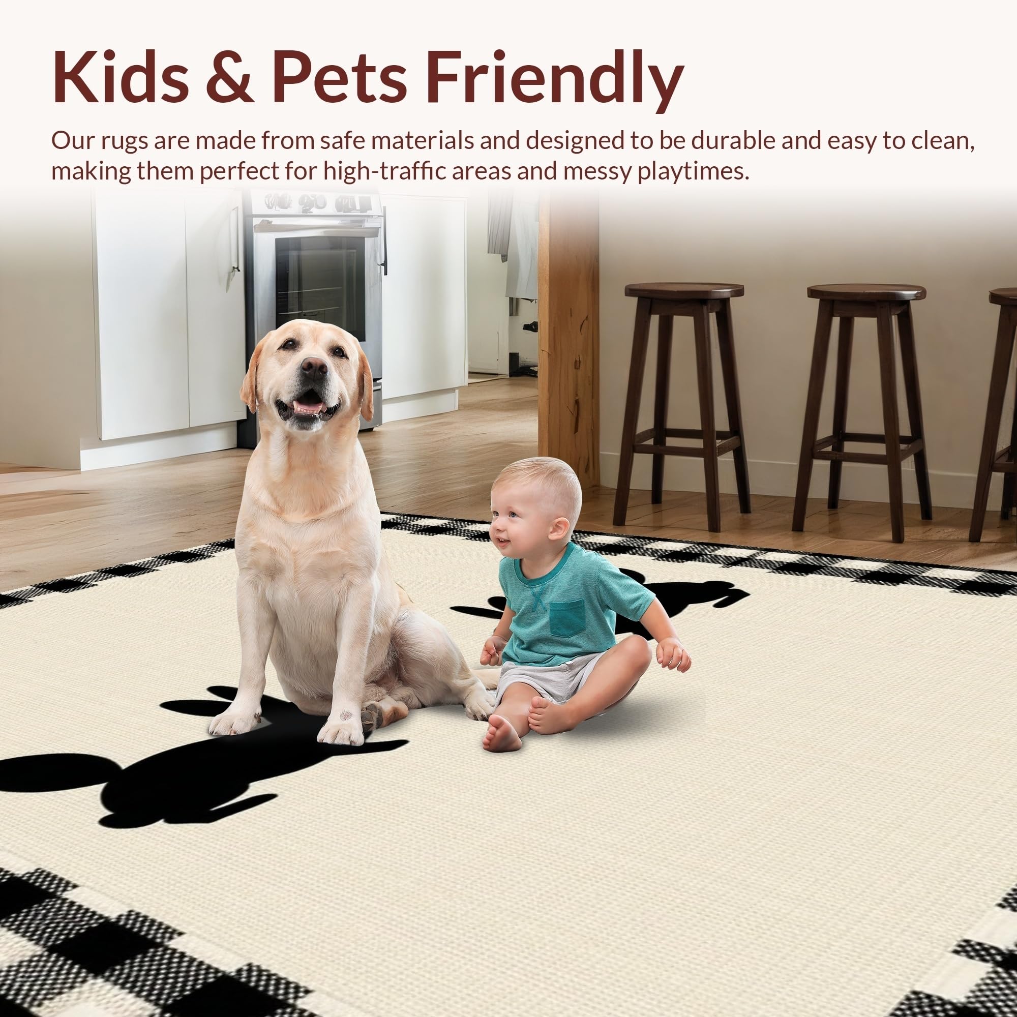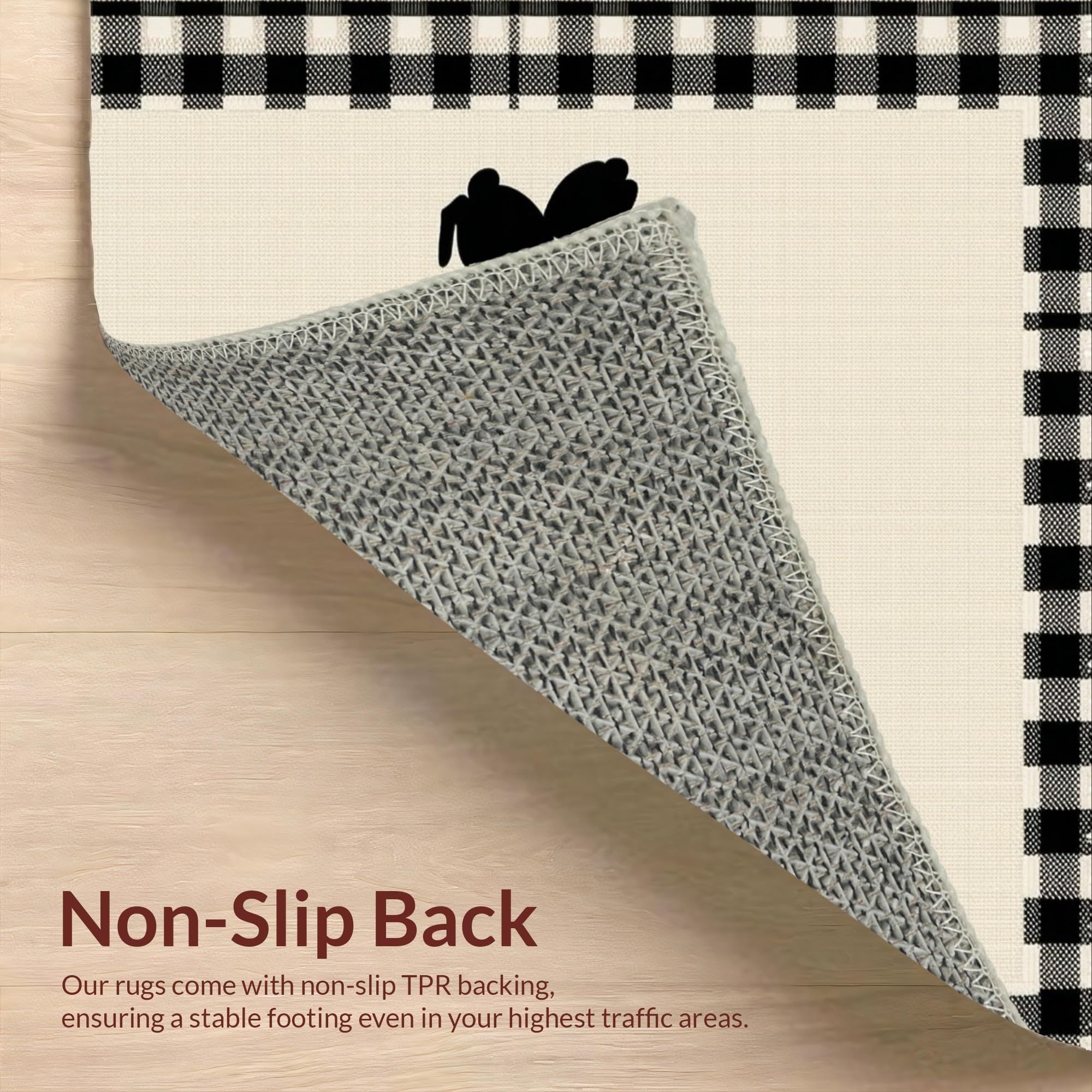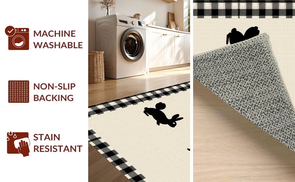 Ultra Soft Area Rug, Non Slip, Stain Resistant, Washable Area Rugs for Living Room, Bedroom, Charming Rustic Bunny Motif(Beige) Overview: