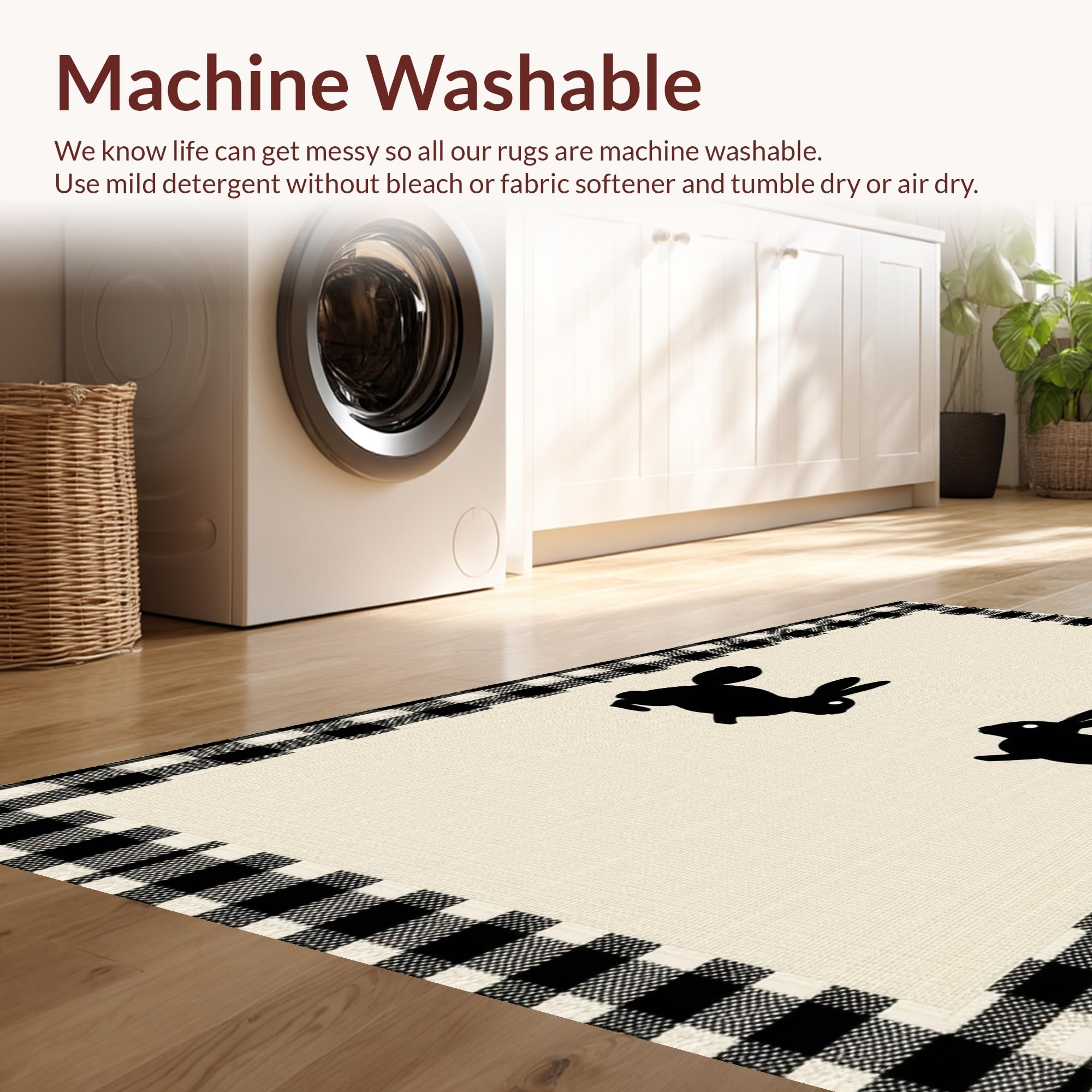 - Machine Washable: Our rugs can be easily thrown in the wash machine.