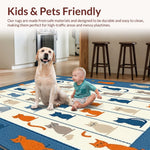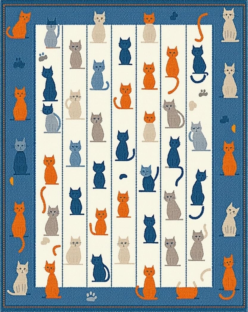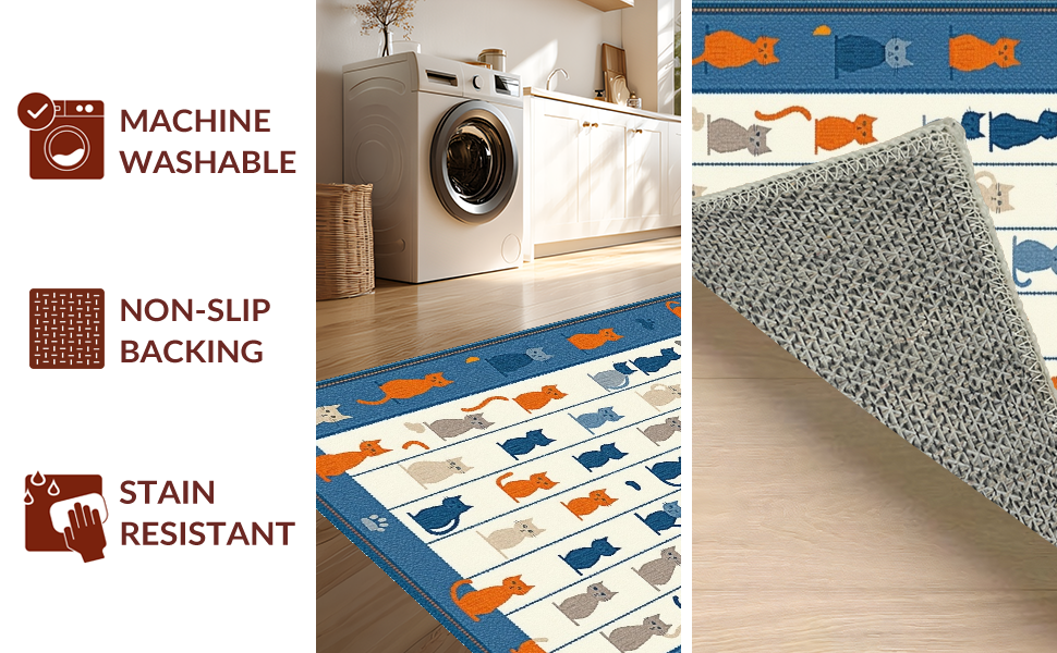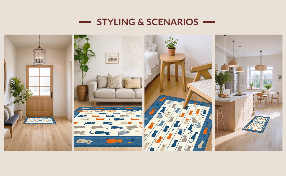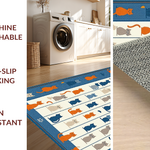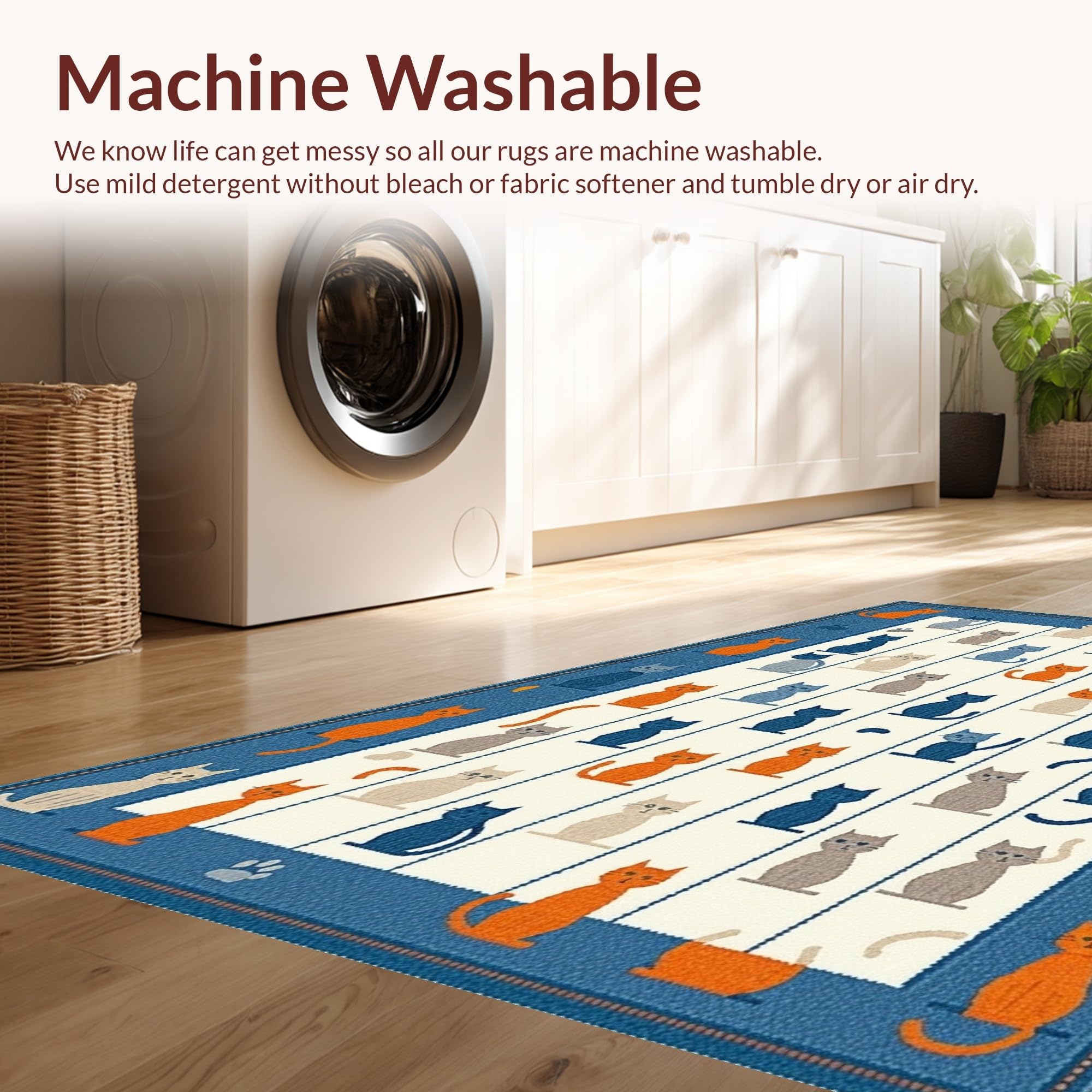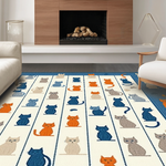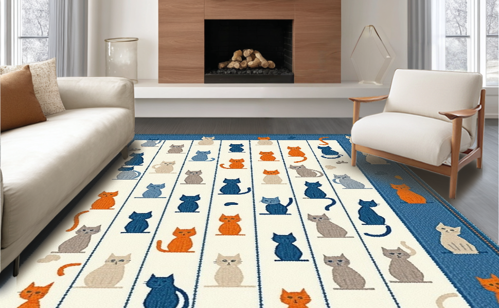Ultra Soft Area Rug, Non Slip, Stain Resistant, Washable Area Rugs for Living Room, Bedroom, Charming Rustic Cat Illustrations(Blue) Overview: