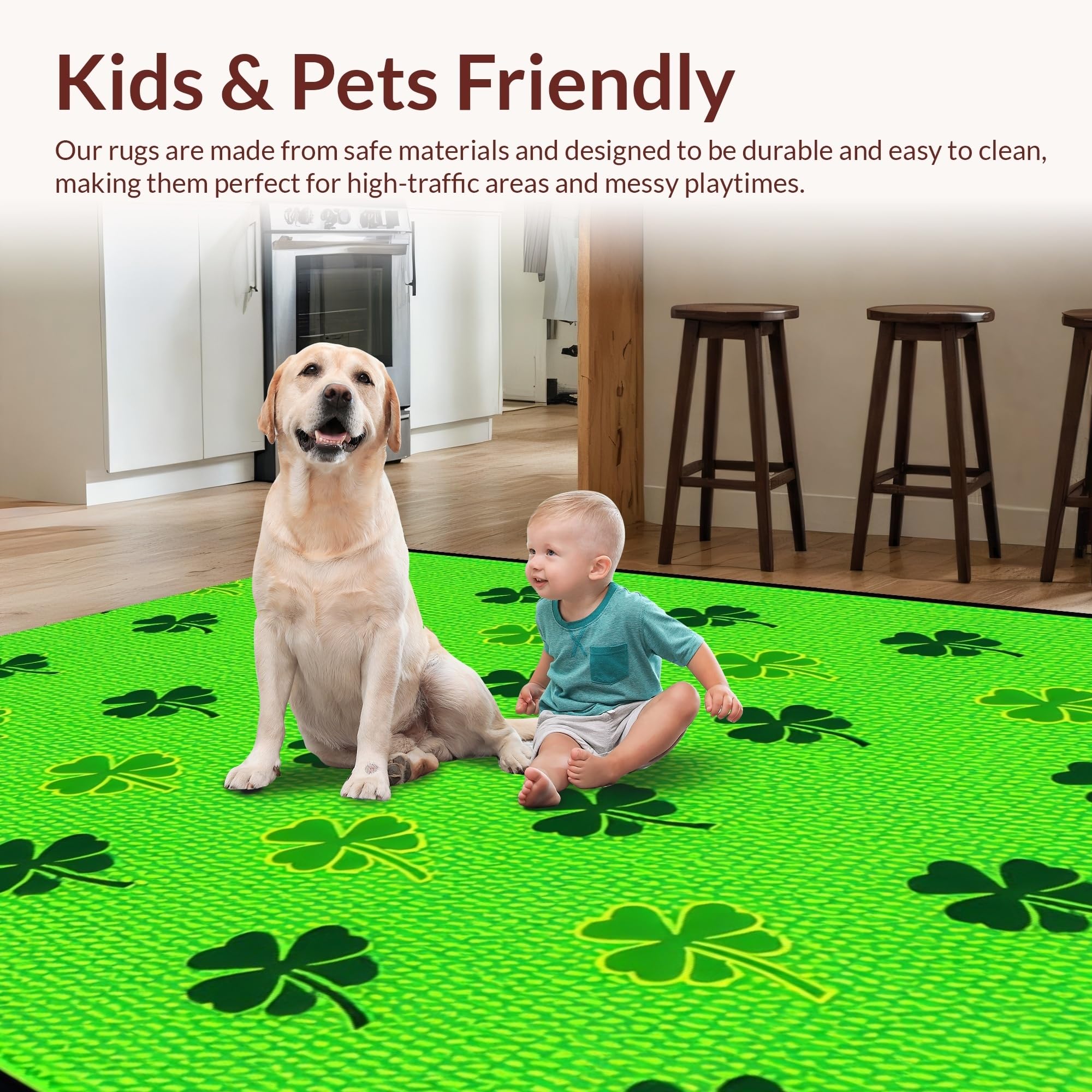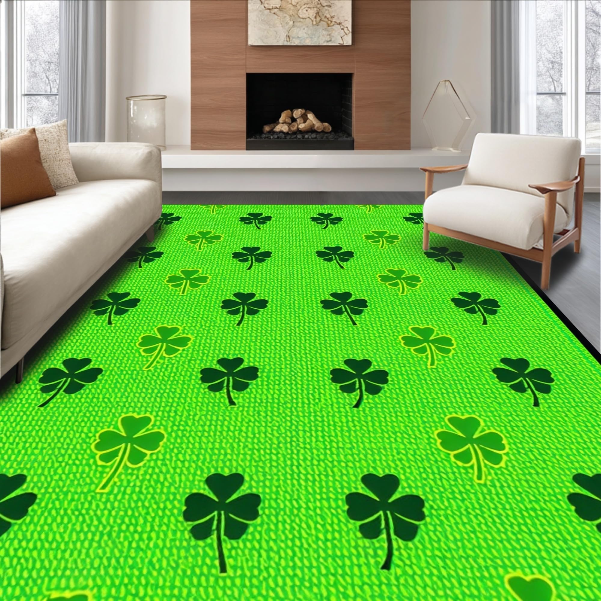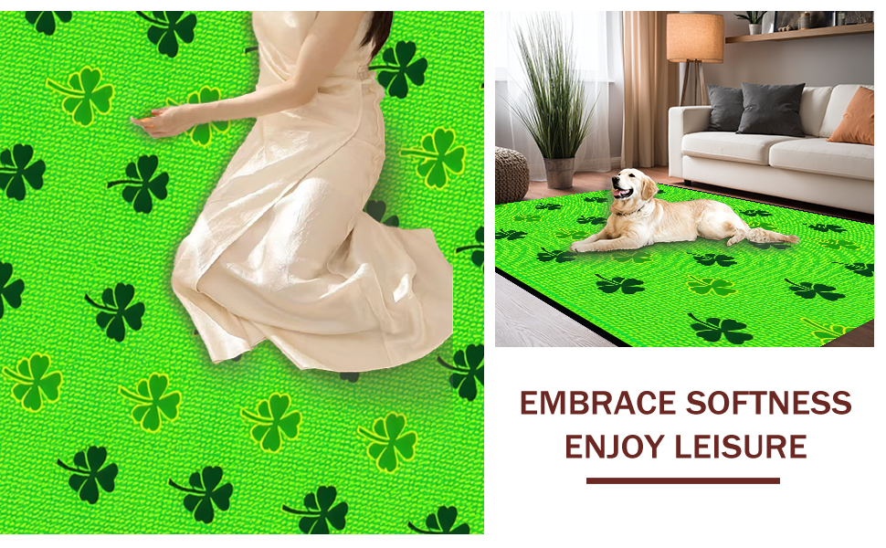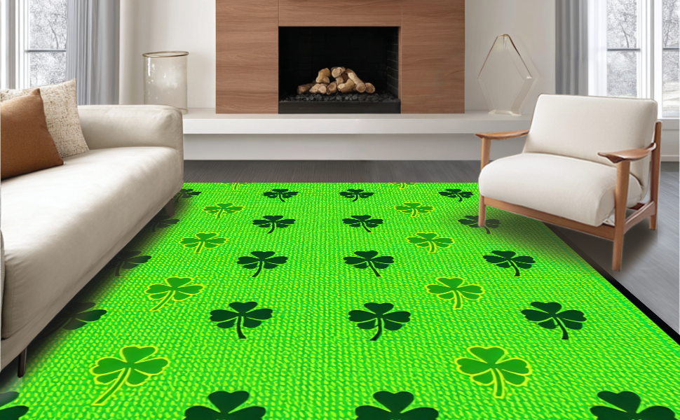 Ultra Soft Area Rug, Non Slip, Stain Resistant, Washable Area Rugs for Living Room, Bedroom, Charming Rustic Clover Aesthetic(Green) Overview: