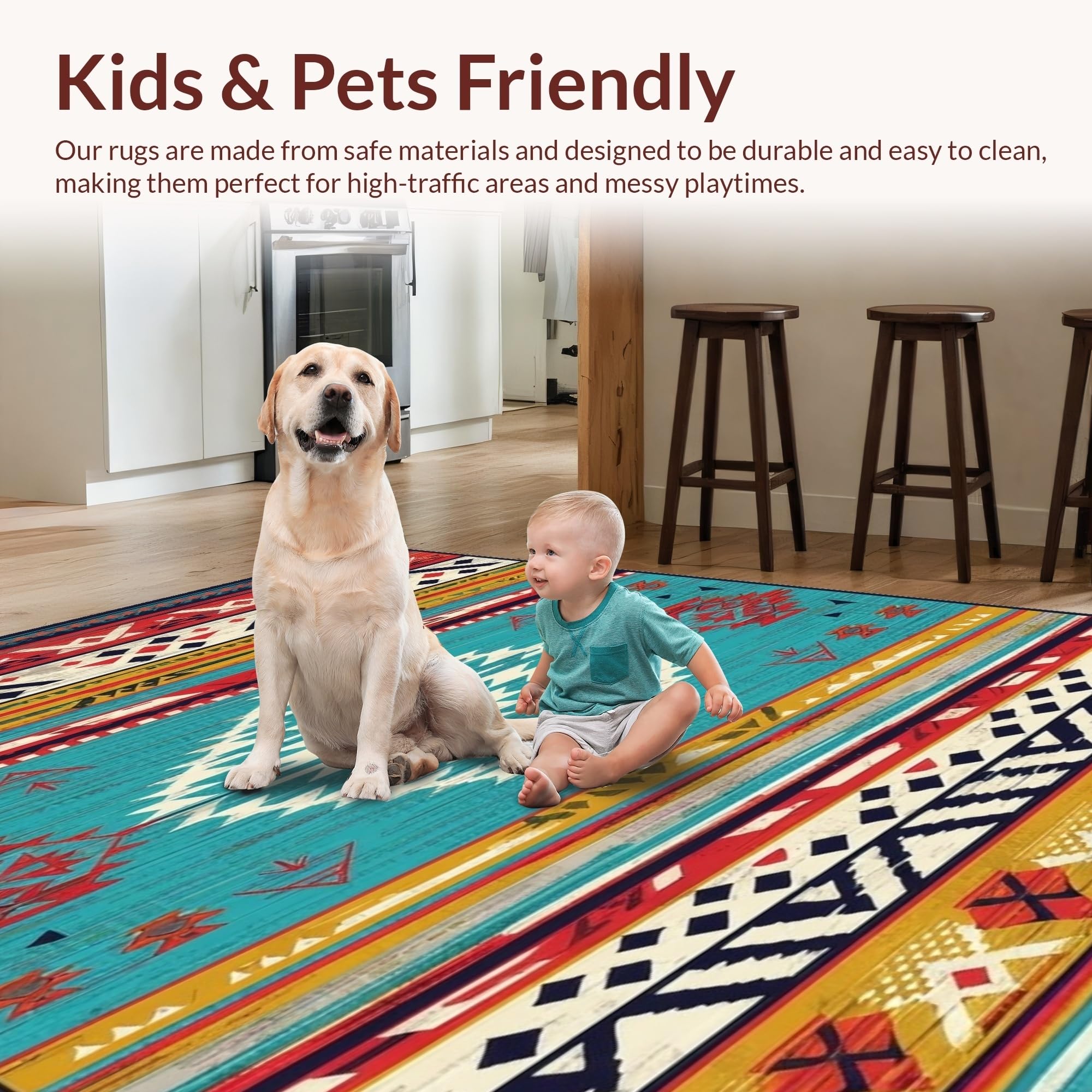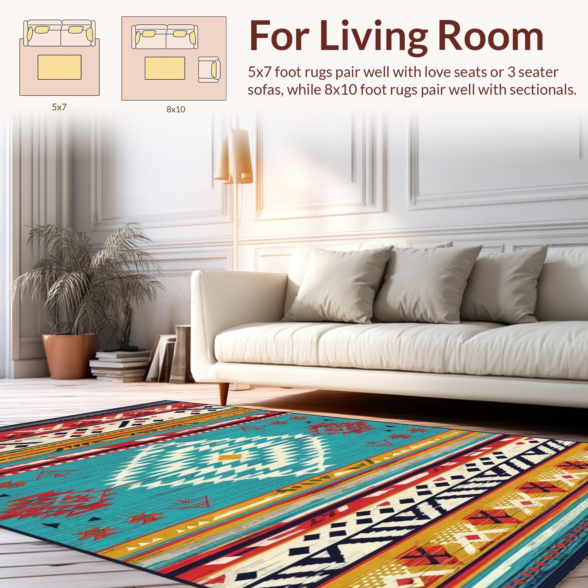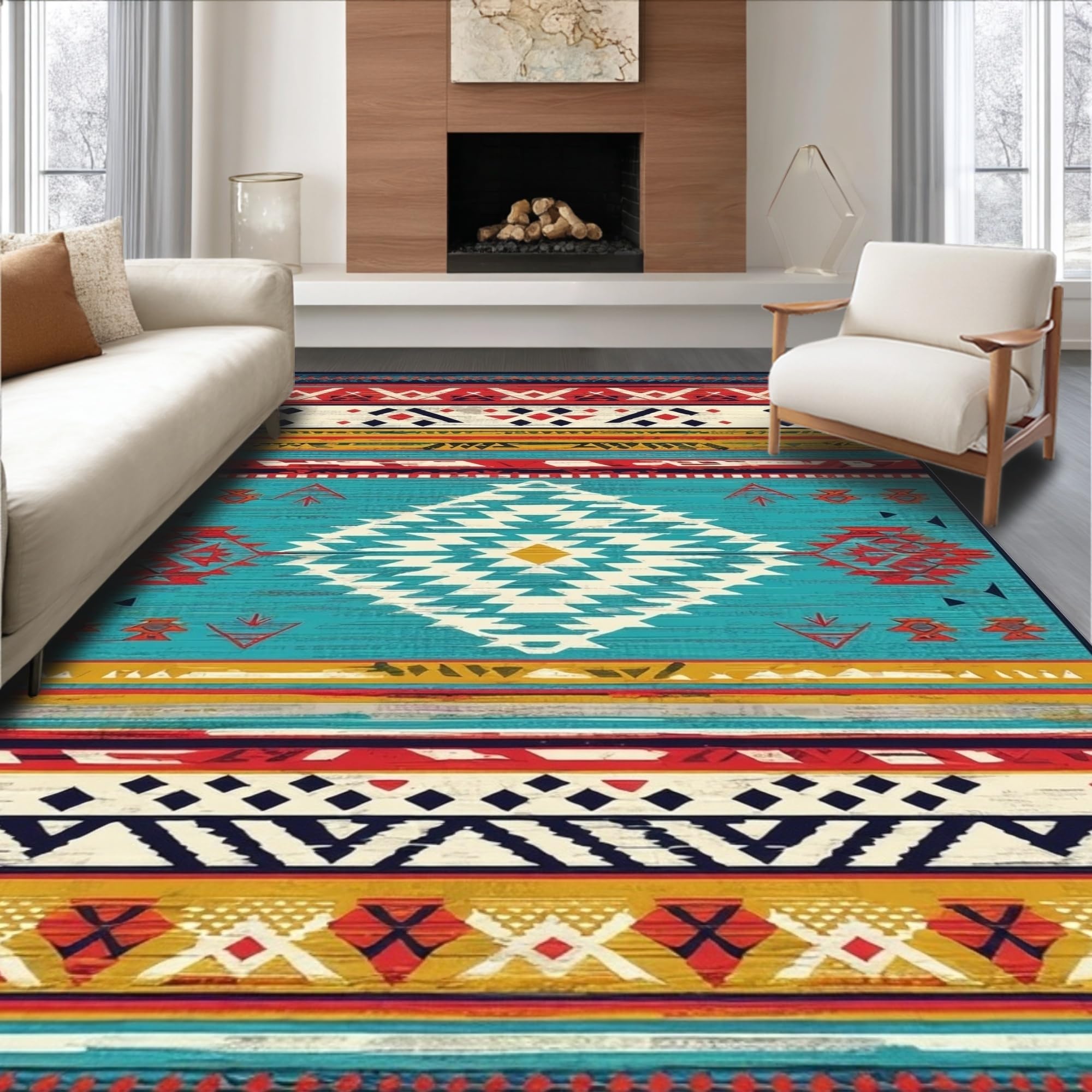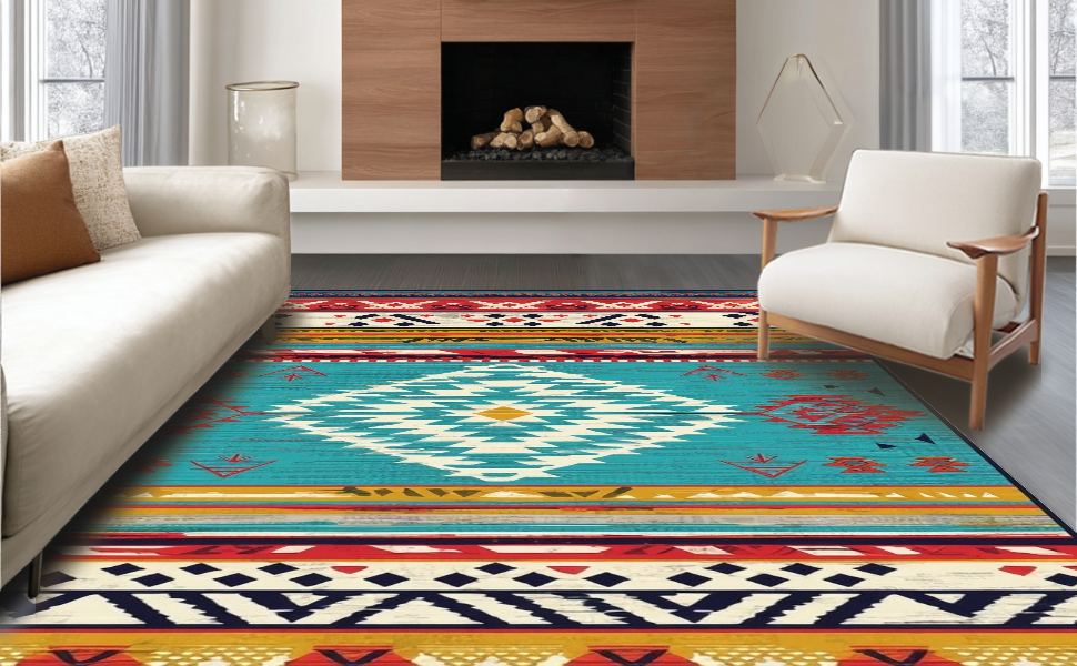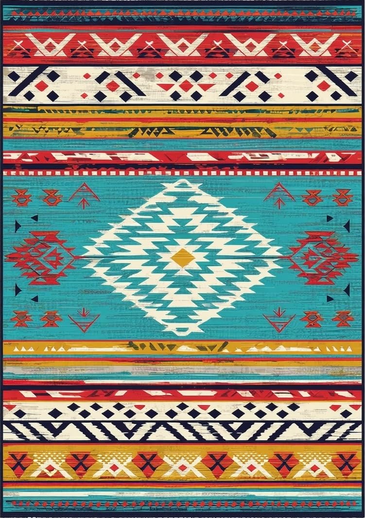 Ultra Soft Area Rug, Non Slip, Stain Resistant, Washable Area Rugs for Living Room, Bedroom, Charming Rustic Diamond Layout(Red) Overview:
