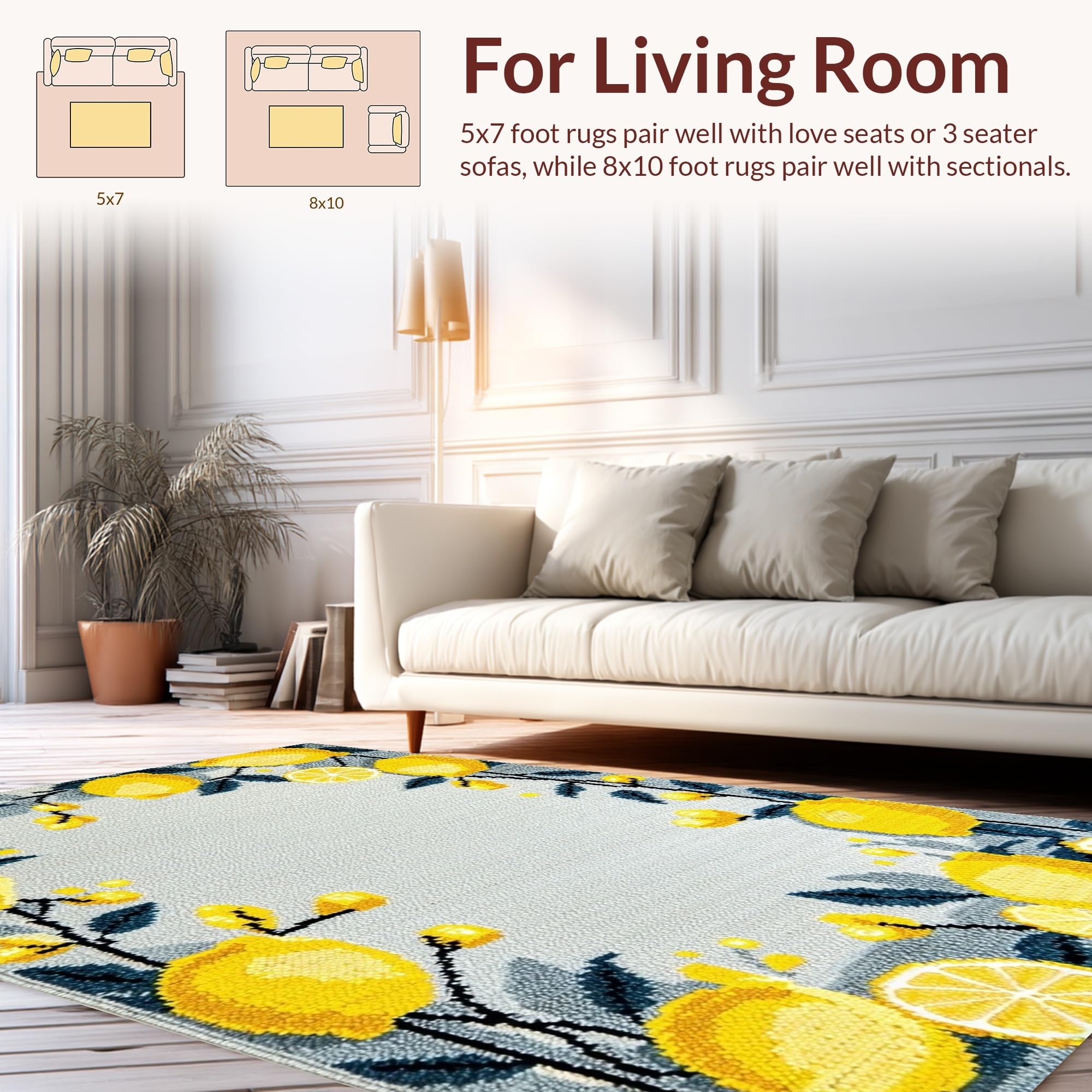 Ultra Soft Area Rug, Non Slip, Stain Resistant, Washable Area Rugs for Living Room, Bedroom, Charming Rustic Floral Arrangement(Yellow) Overview: