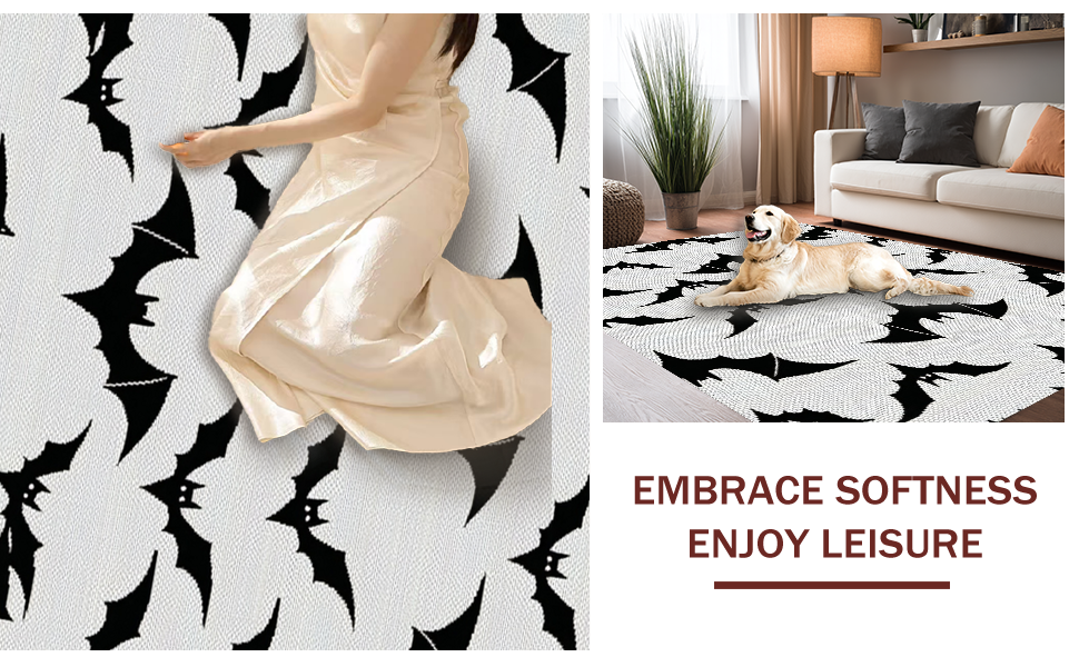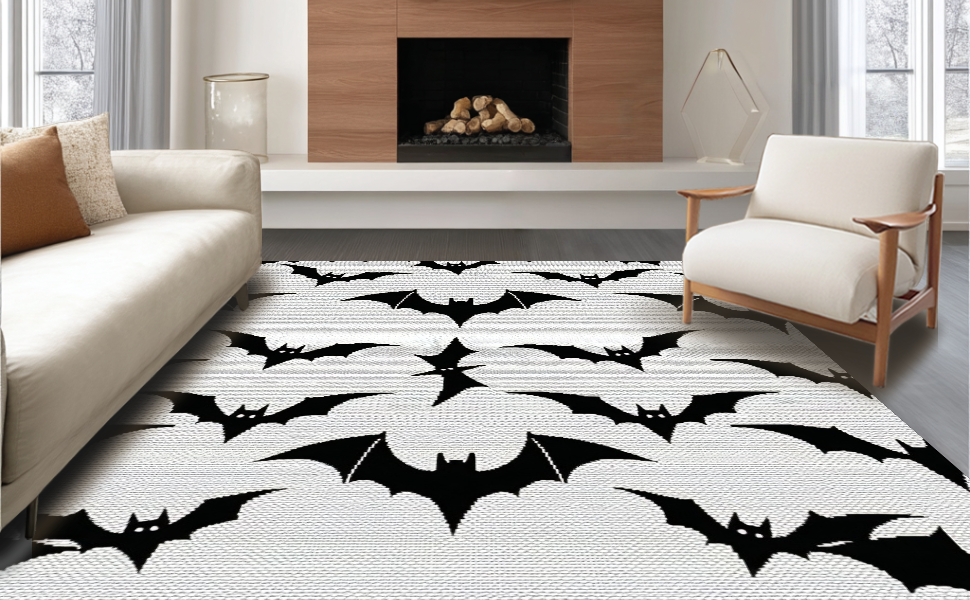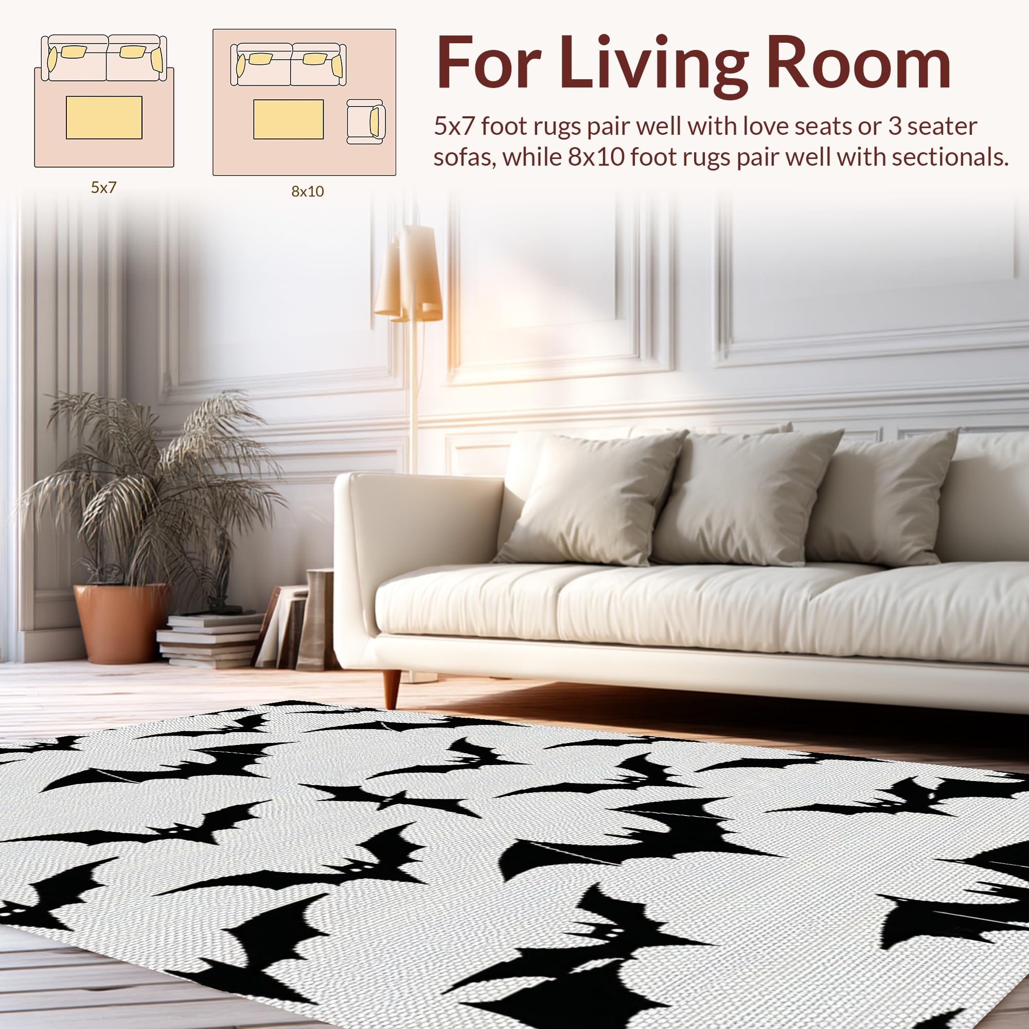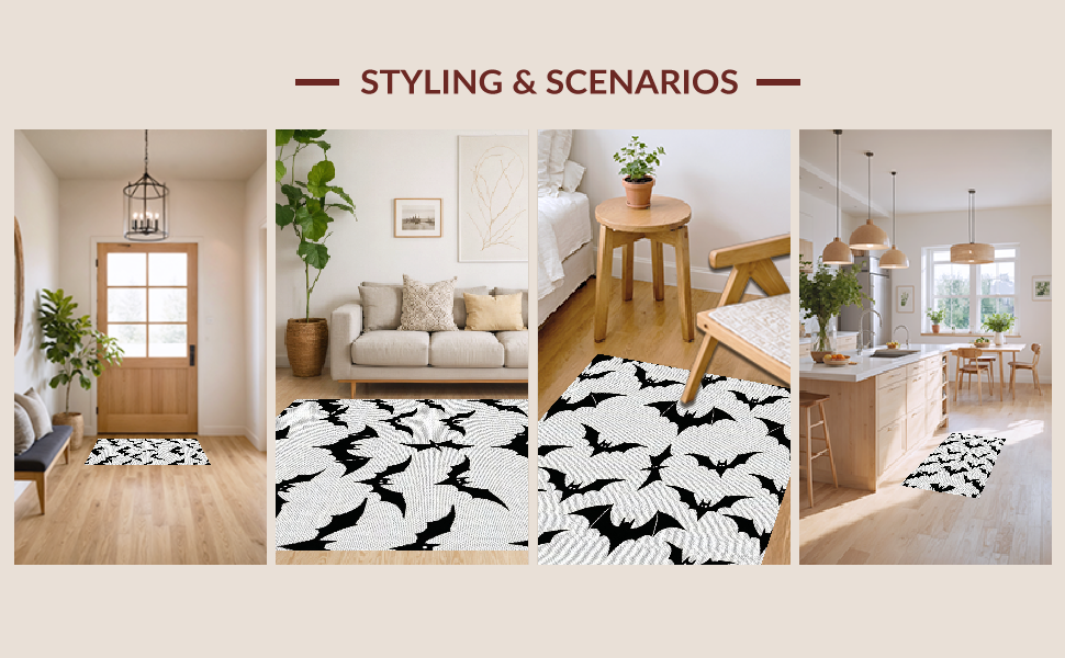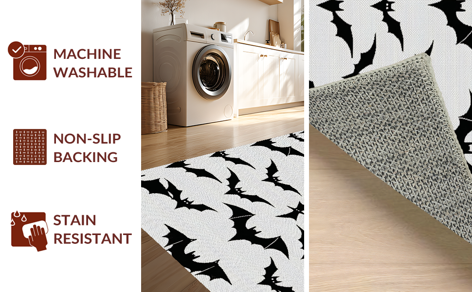 Ultra Soft Area Rug, Non Slip, Stain Resistant, Washable Area Rugs for Living Room, Bedroom, Charming Rustic Halloween Aesthetic(Black) Overview: