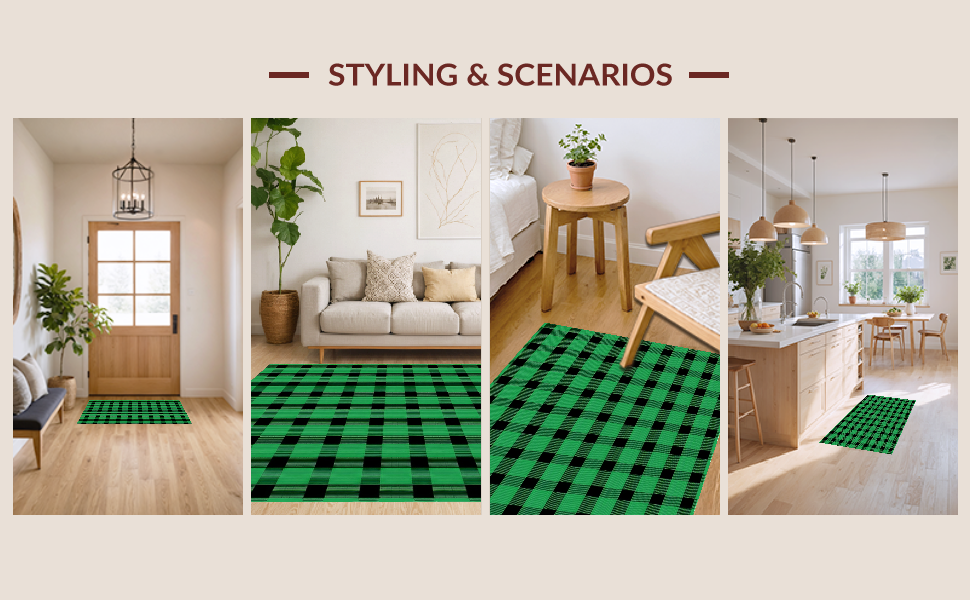 Ultra Soft Area Rug, Non Slip, Stain Resistant, Washable Area Rugs for Living Room, Bedroom, Charming Rustic Outdoor Mat Appeal(Green) Overview: