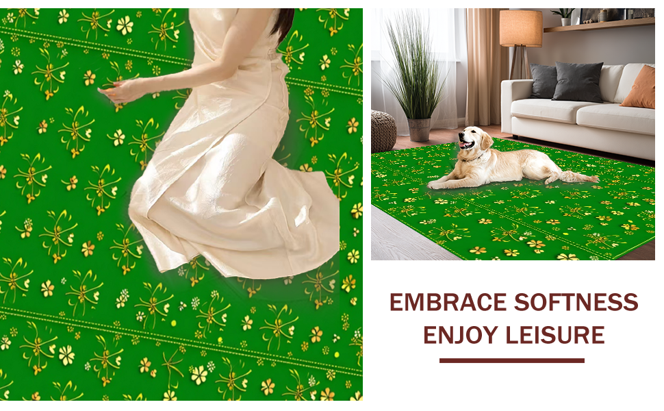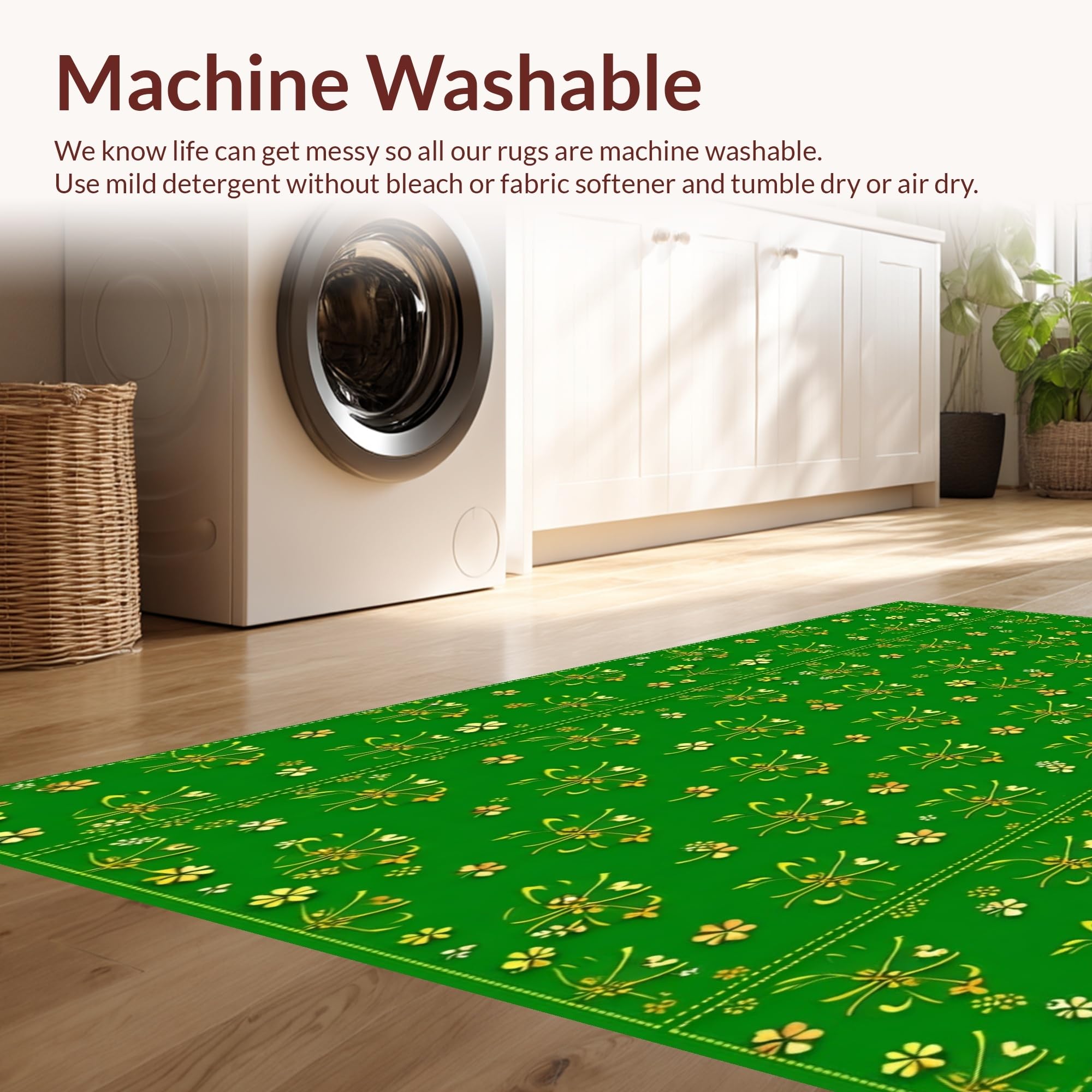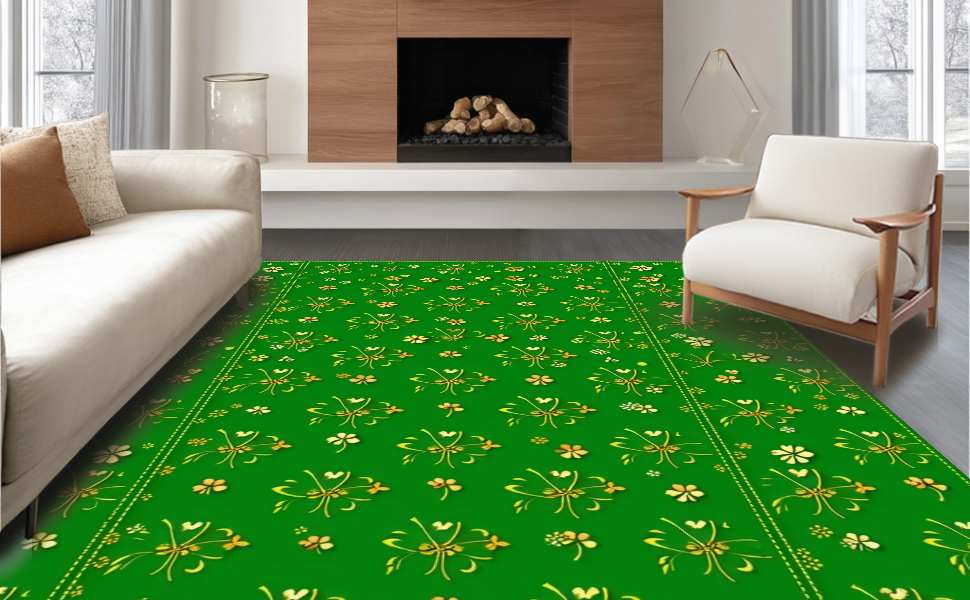 Ultra Soft Area Rug, Non Slip, Stain Resistant, Washable Area Rugs for Living Room, Bedroom, Charming Rustic Shamrock Aesthetic(Green) Overview: