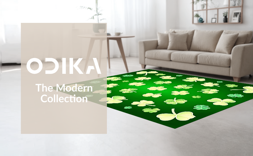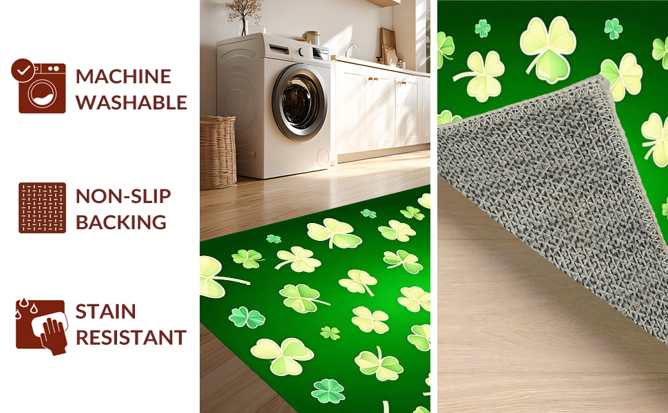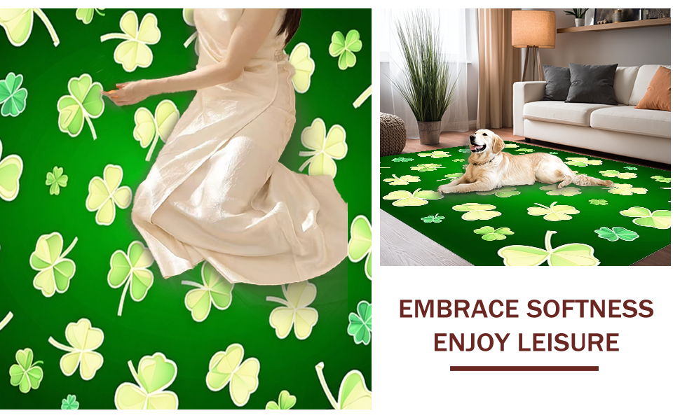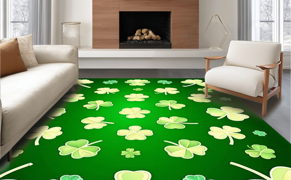 Ultra Soft Area Rug, Non Slip, Stain Resistant, Washable Area Rugs for Living Room, Bedroom, Charming Rustic Shamrock Motif Rug(Green) Overview: