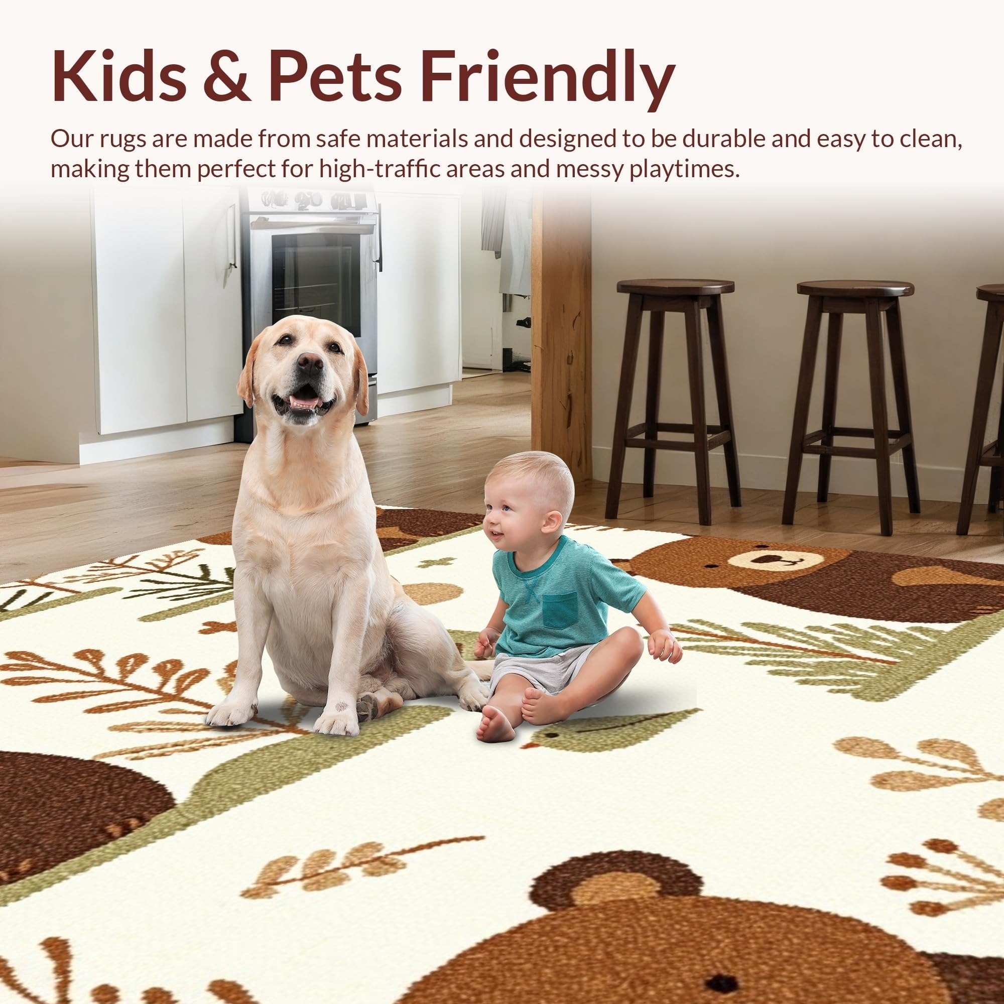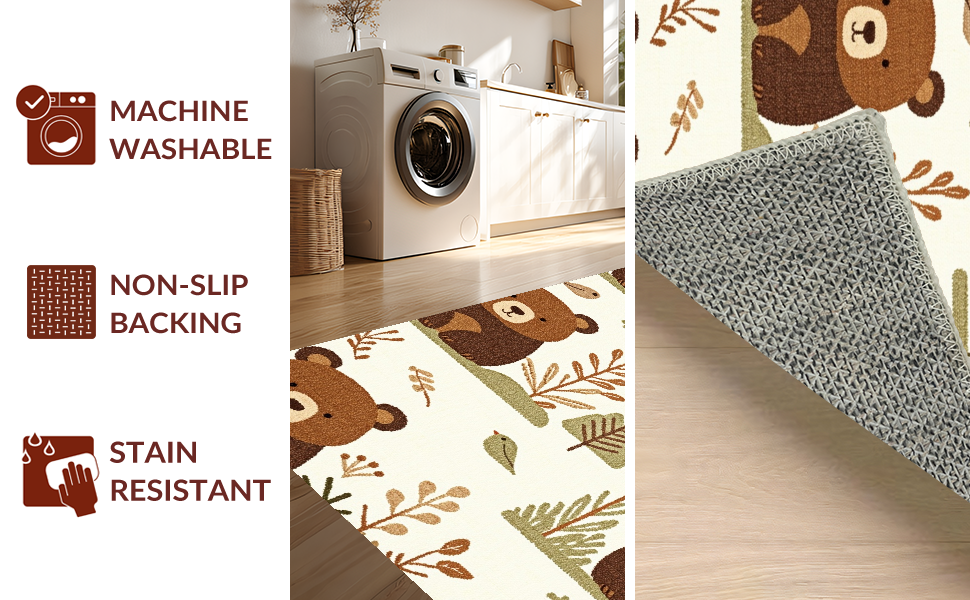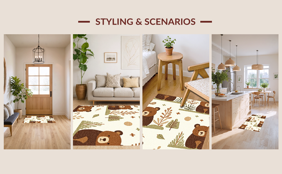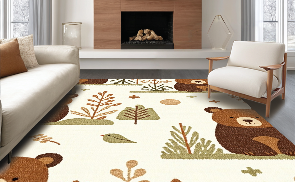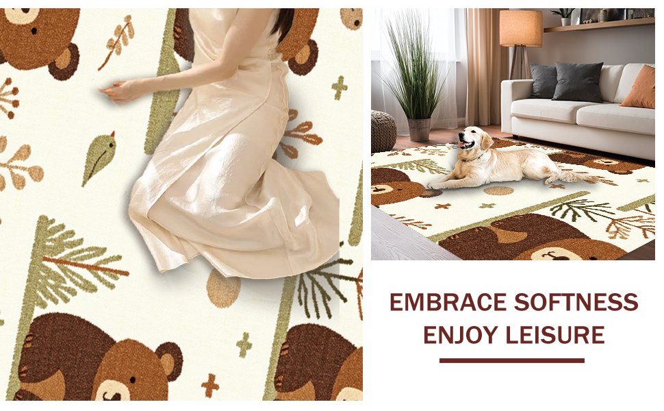 Ultra Soft Area Rug, Non Slip, Stain Resistant, Washable Area Rugs for Living Room, Bedroom, Charming Rustic Woodland Aesthetic(Beige) Overview: