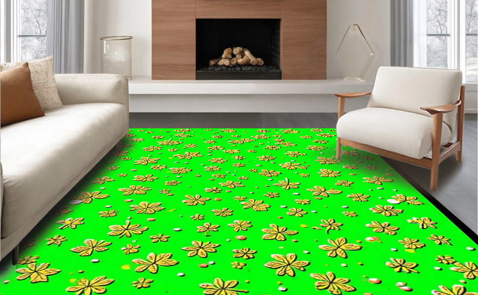 Ultra Soft Area Rug, Non Slip, Stain Resistant, Washable Area Rugs for Living Room, Bedroom, Charming Seasonal Shamrock Motif(Green) Overview:
