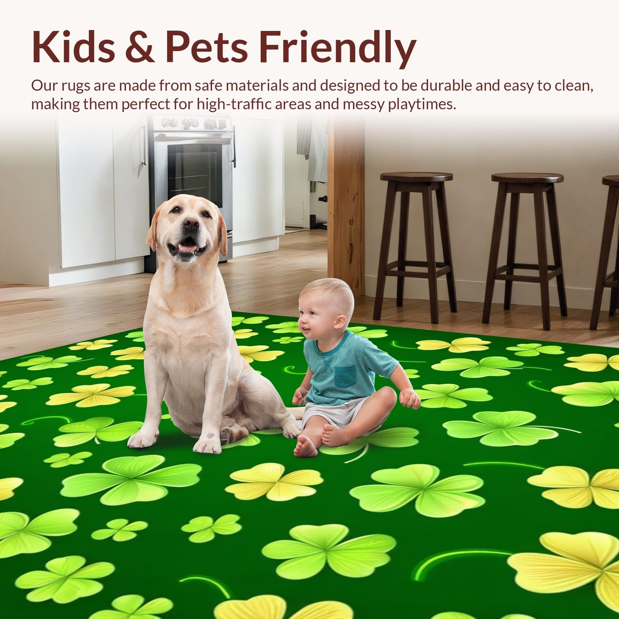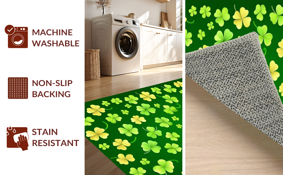 Ultra Soft Area Rug, Non Slip, Stain Resistant, Washable Area Rugs for Living Room, Bedroom, Charming Seasonal Welcome Design(Green) Overview: