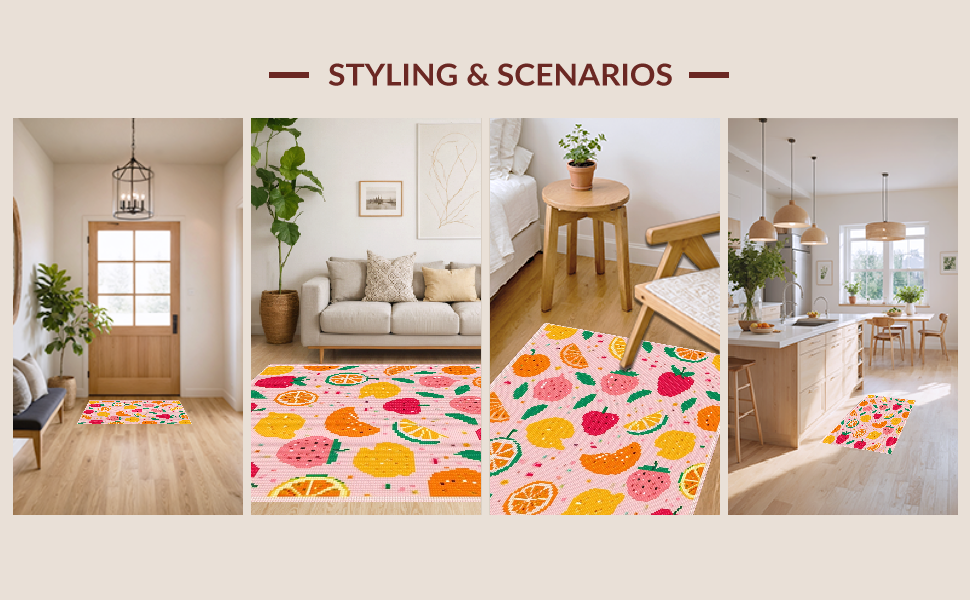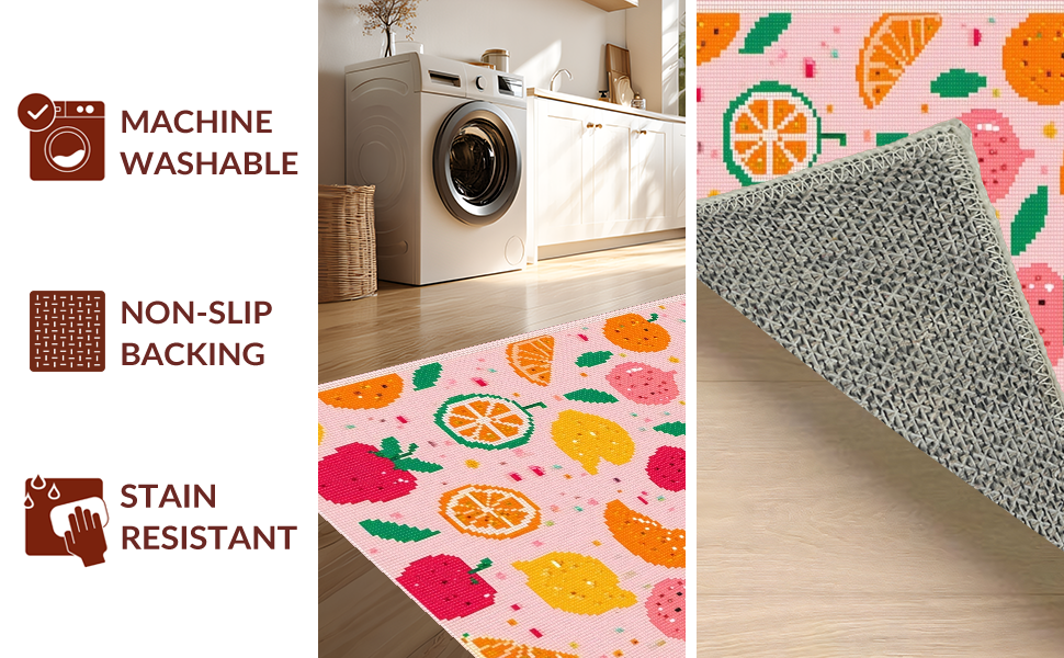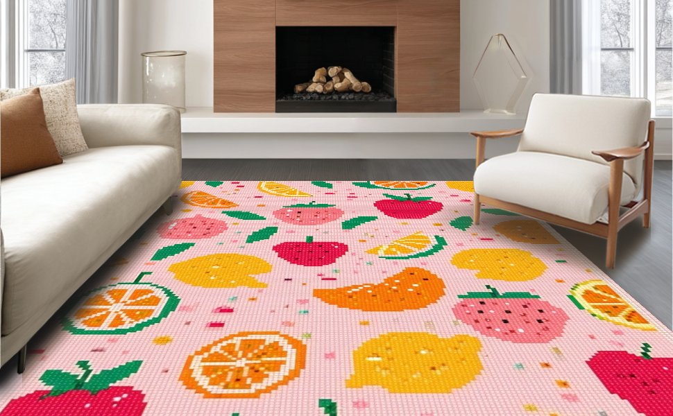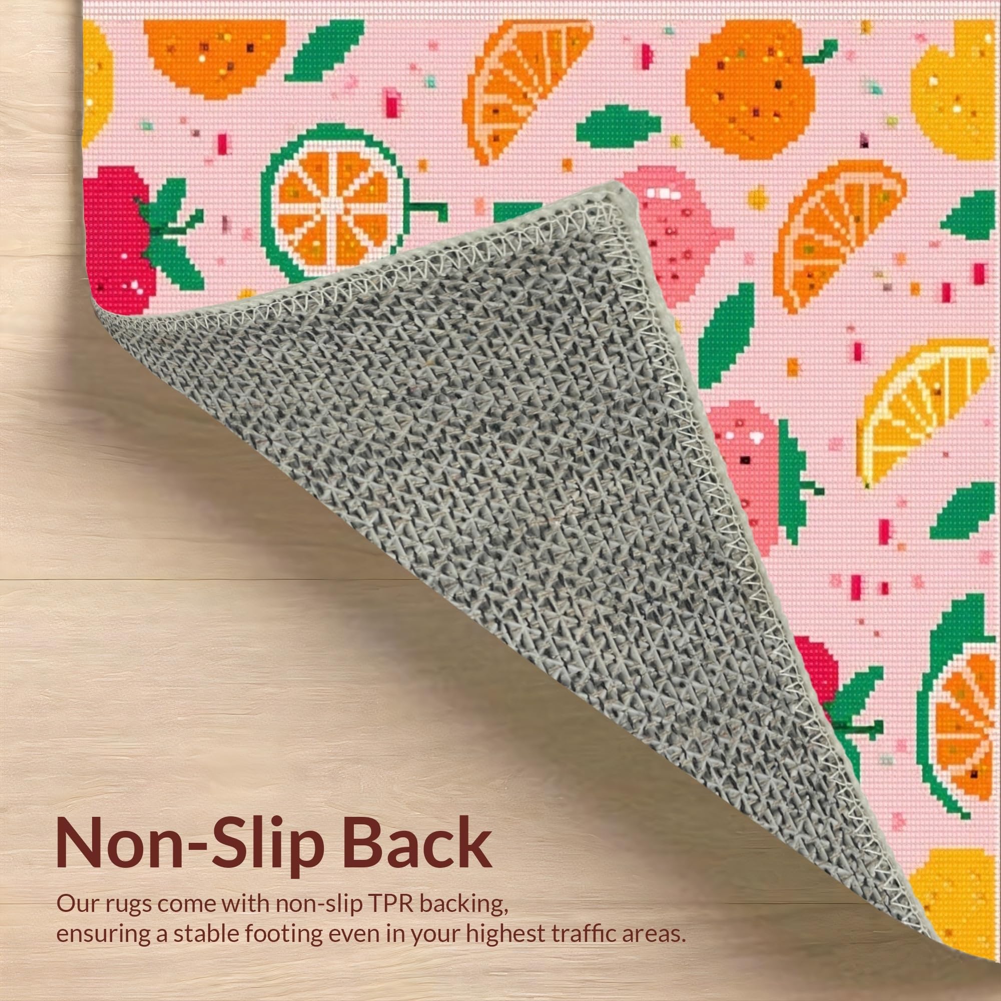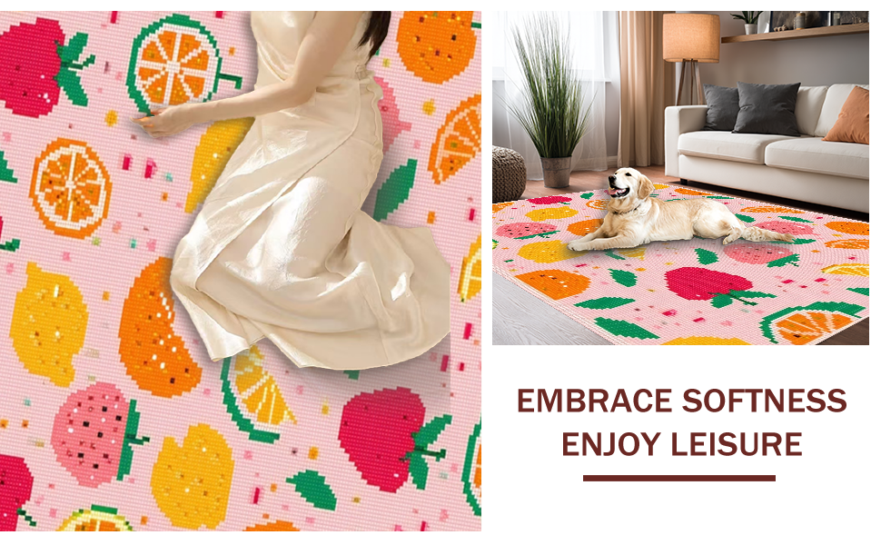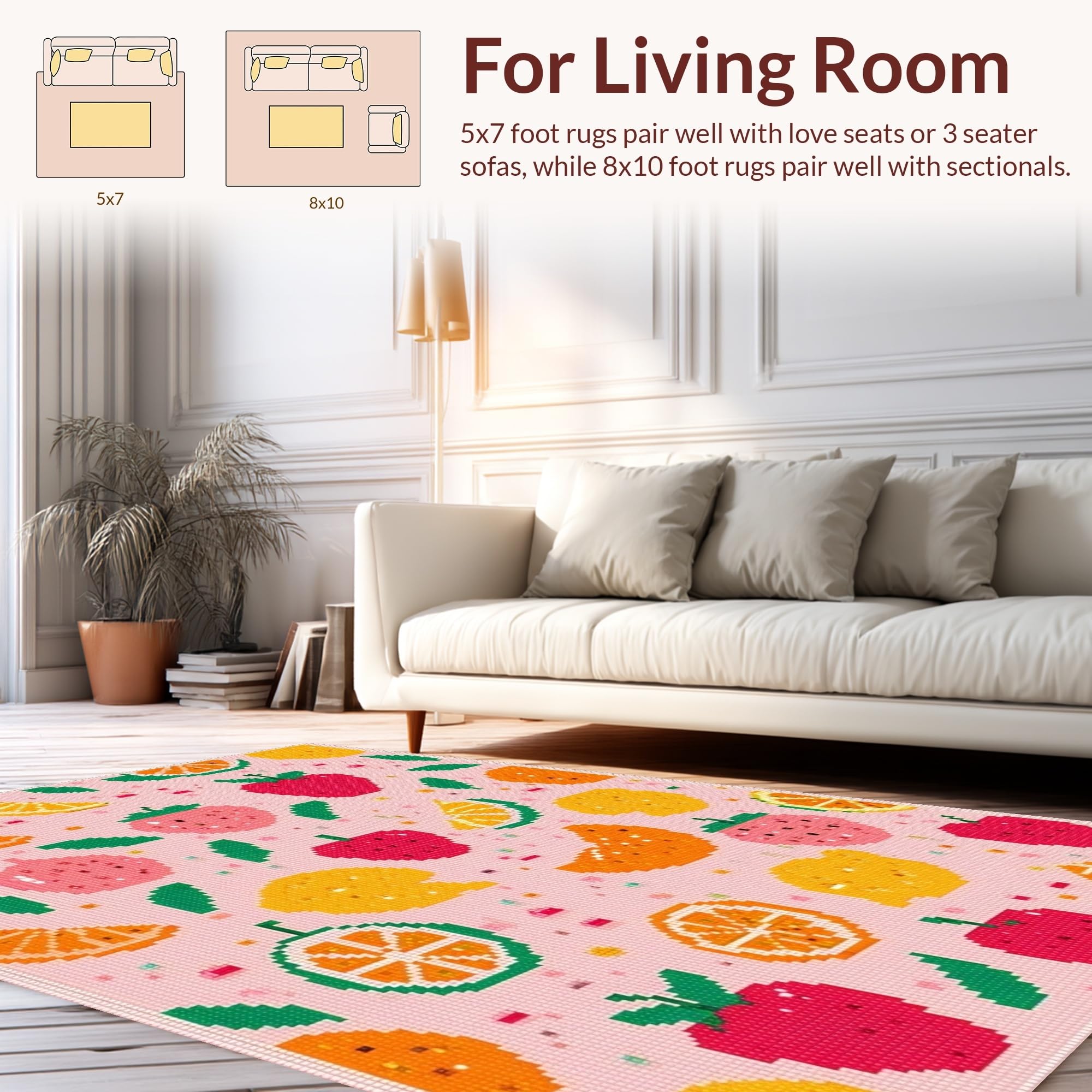 Ultra Soft Area Rug, Non Slip, Stain Resistant, Washable Area Rugs for Living Room, Bedroom, Charming Soft-Fruit Decorative Accent(Pink) Overview: