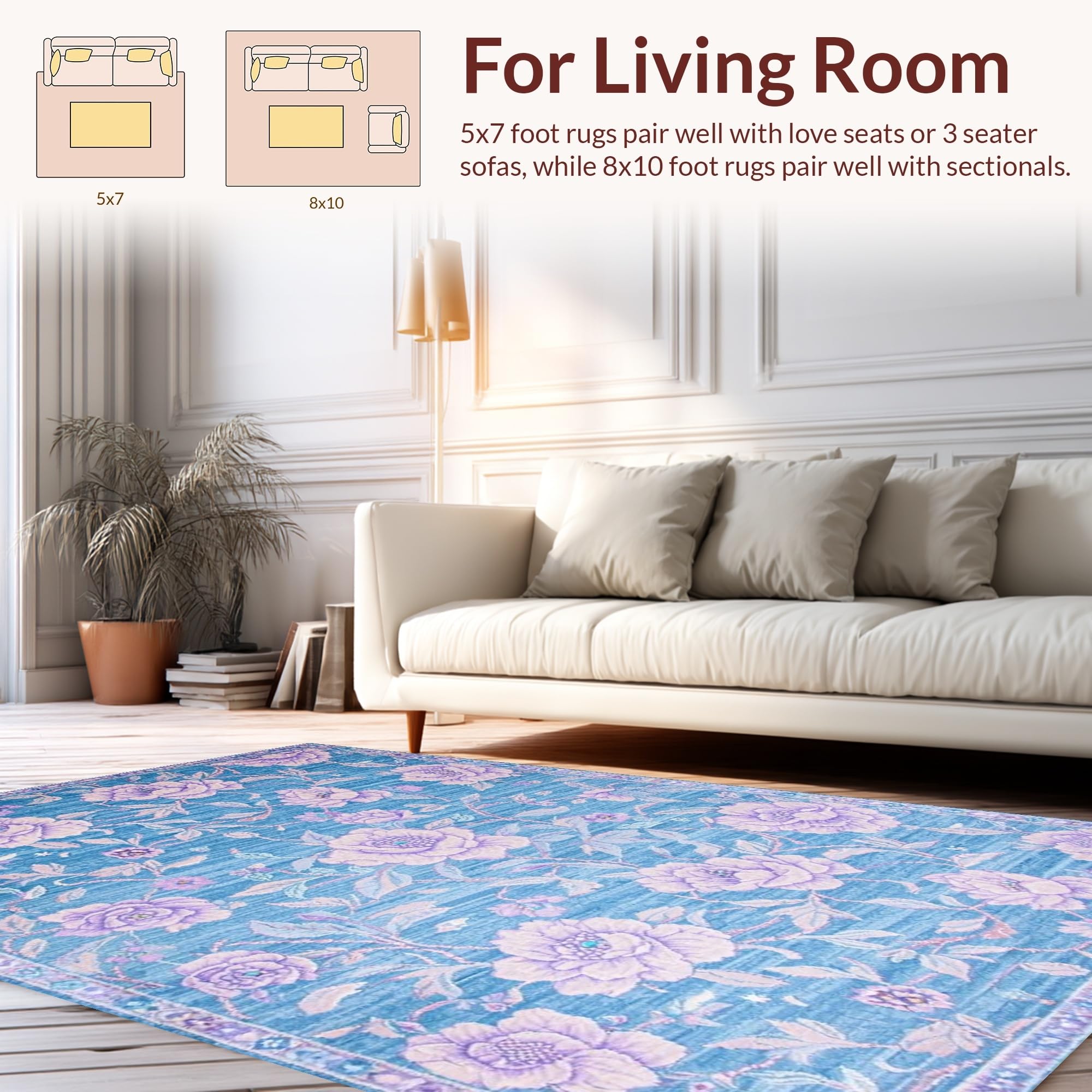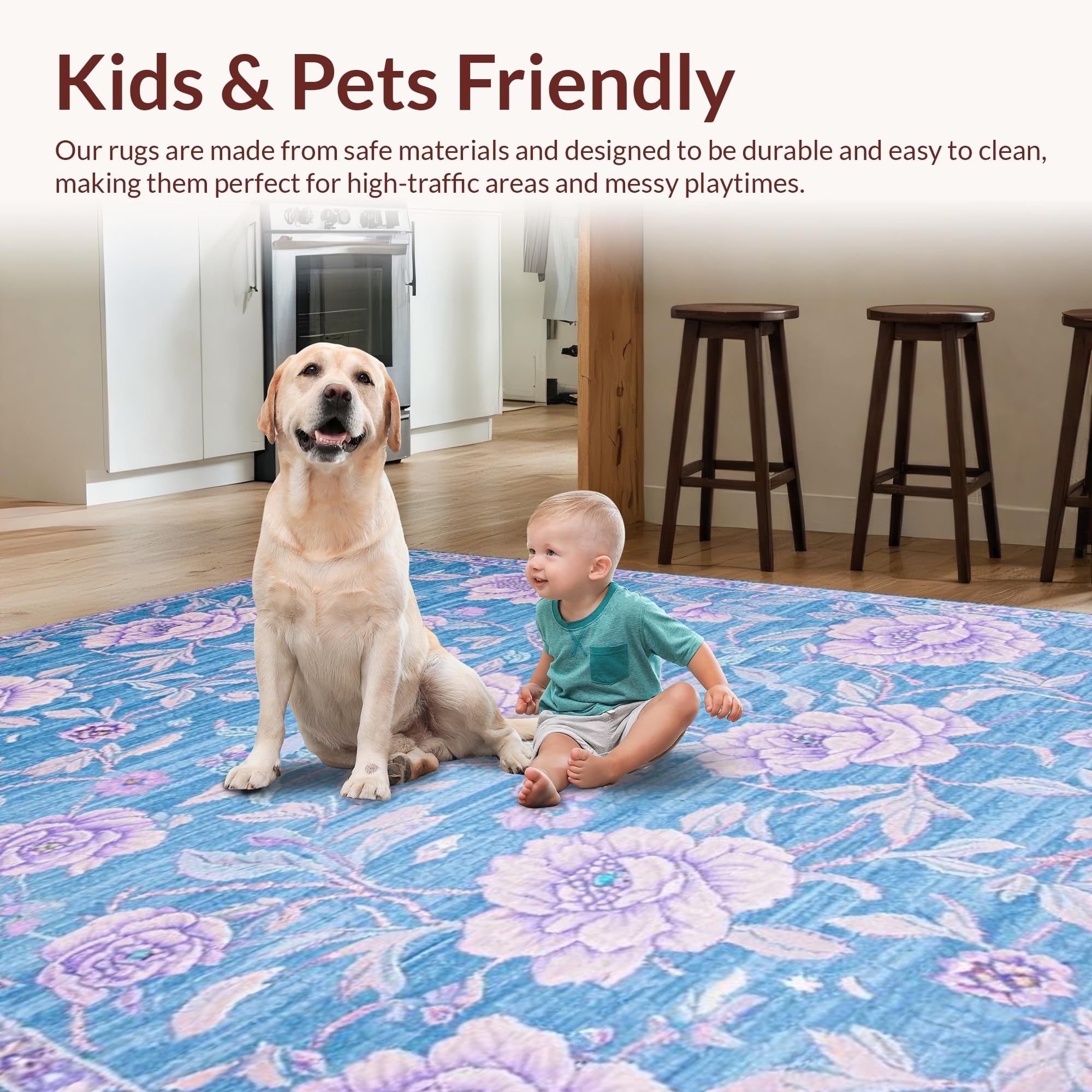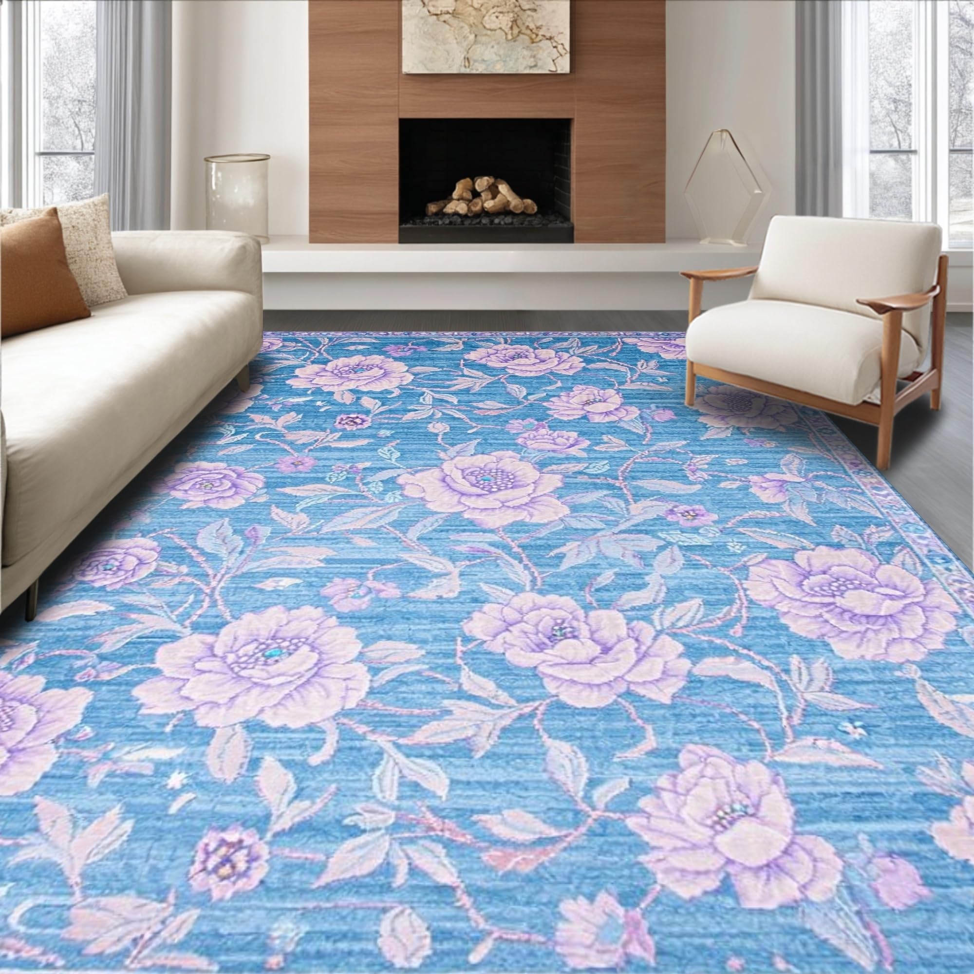 Ultra Soft Area Rug, Non Slip, Stain Resistant, Washable Area Rugs for Living Room, Bedroom, Charming Soft Geometric Elements(Blue) Overview: