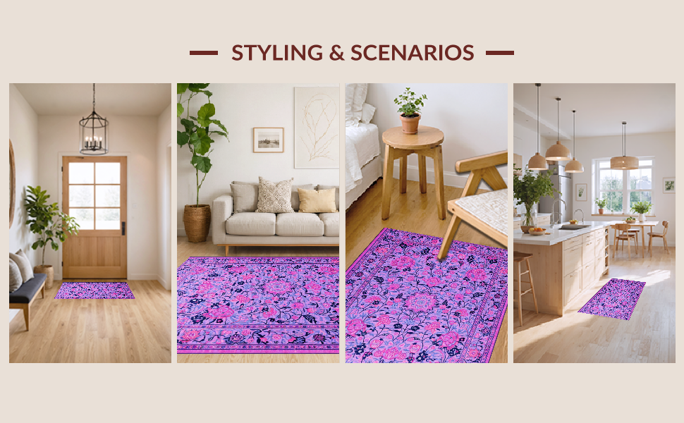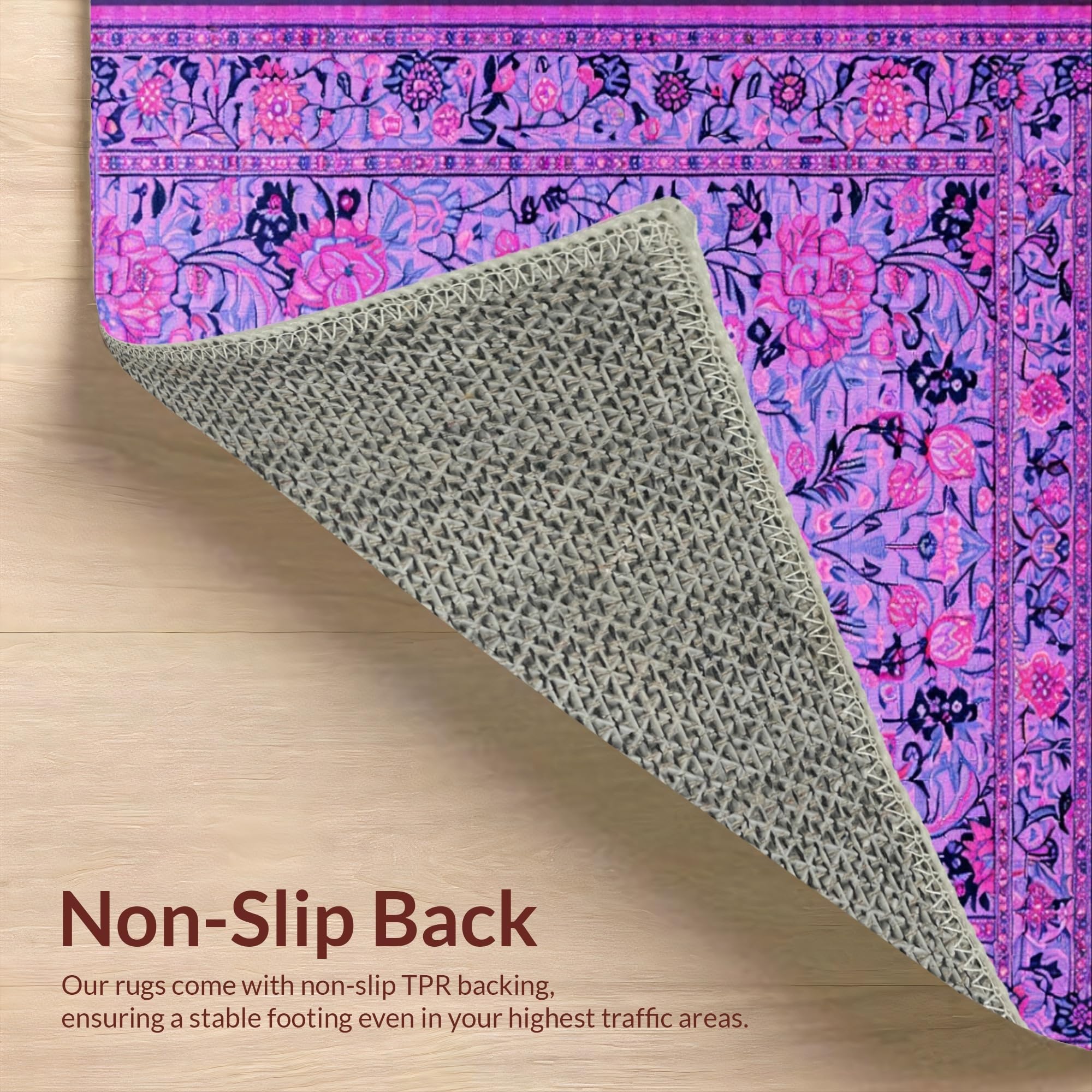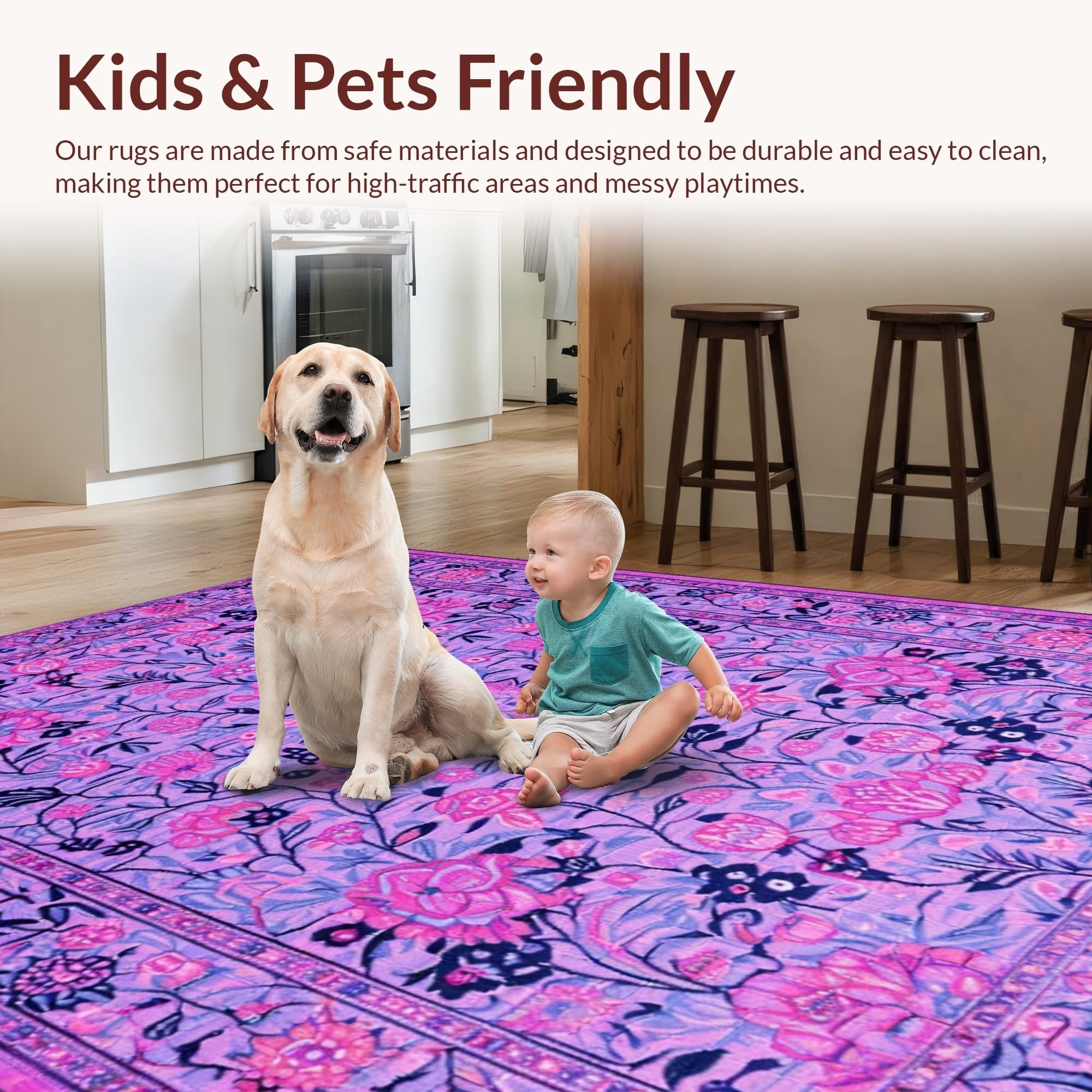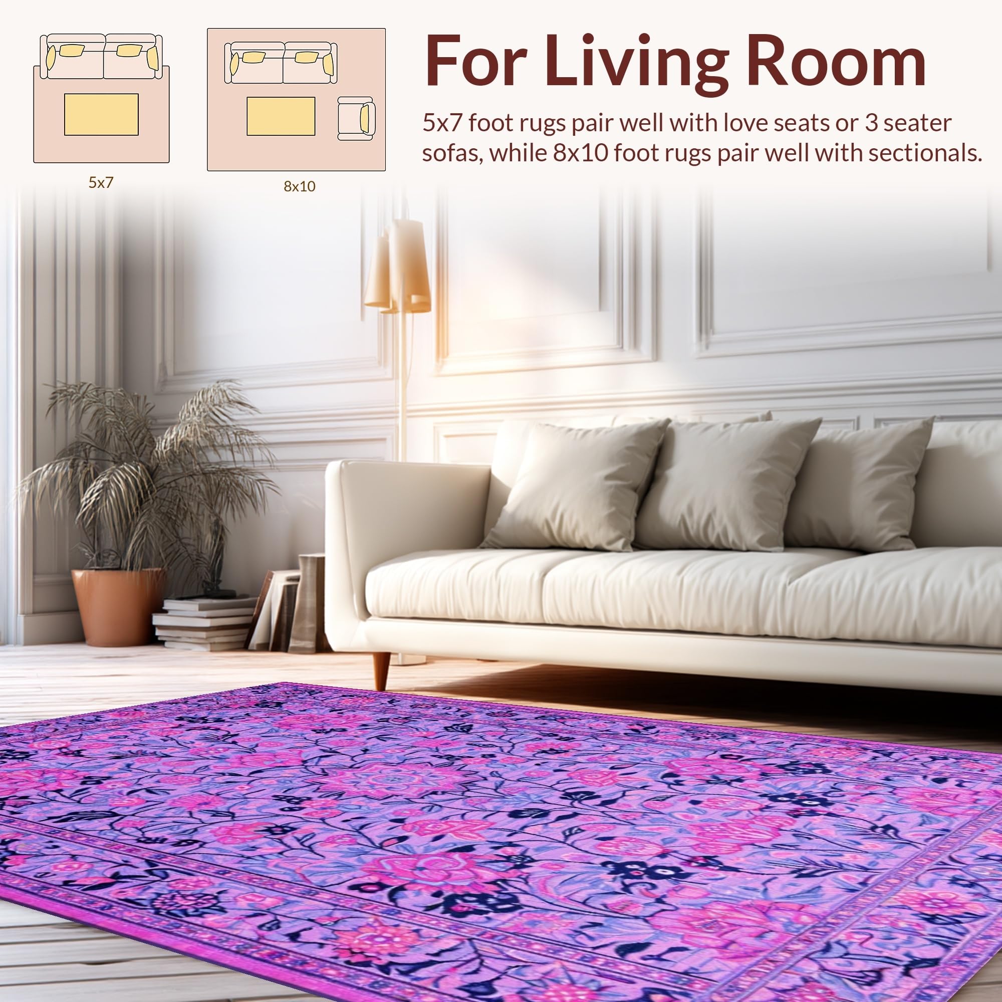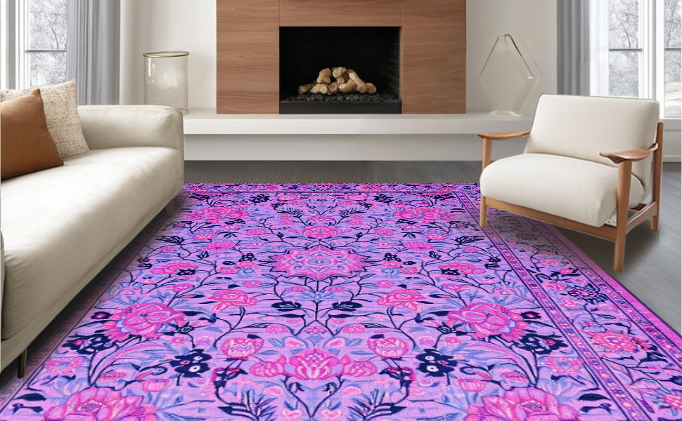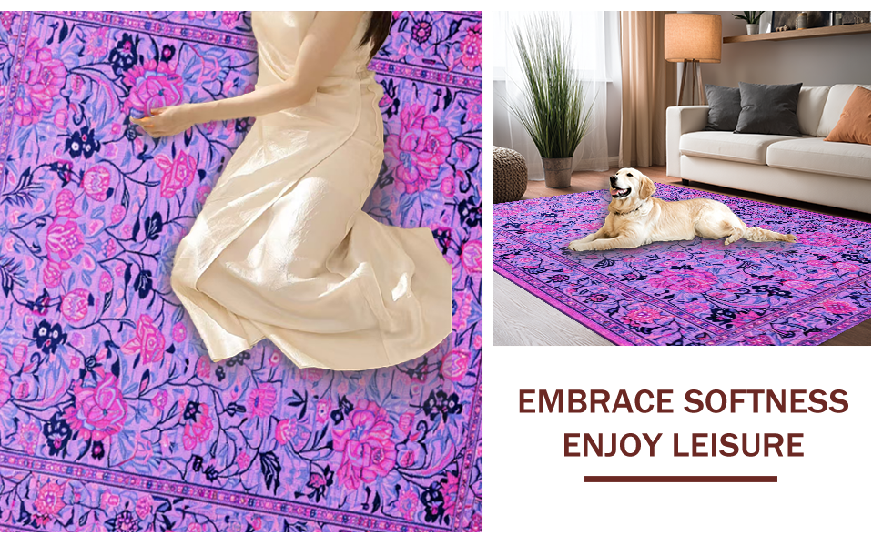 Ultra Soft Area Rug, Non Slip, Stain Resistant, Washable Area Rugs for Living Room, Bedroom, Charming Soft Pastel Blossom Design(Purple) Overview: