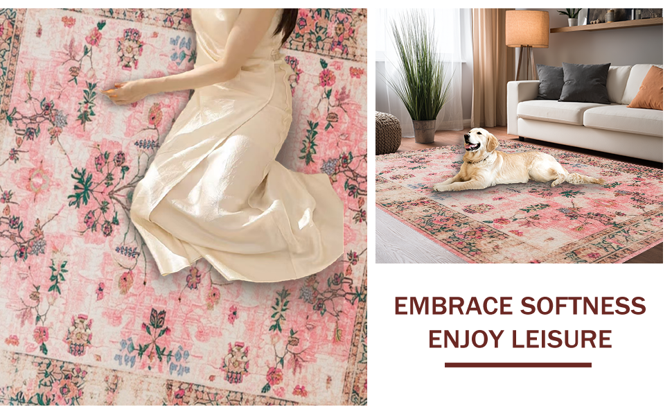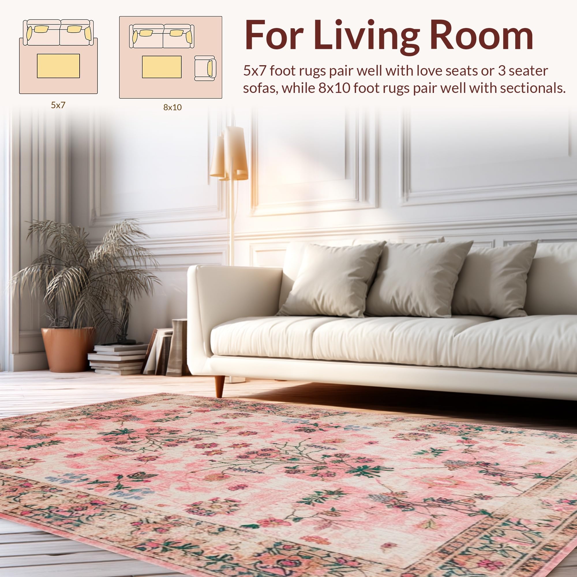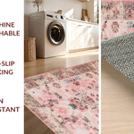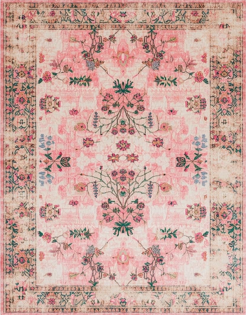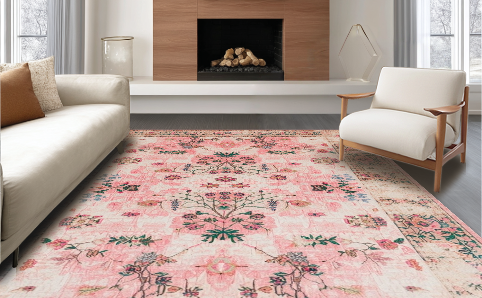 Ultra Soft Area Rug, Non Slip, Stain Resistant, Washable Area Rugs for Living Room, Bedroom, Charming Soft Pastel Botanical Motif(Pink) Overview: