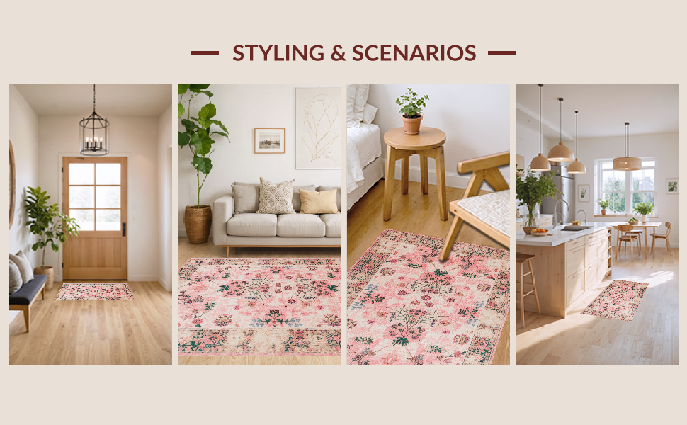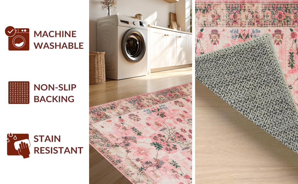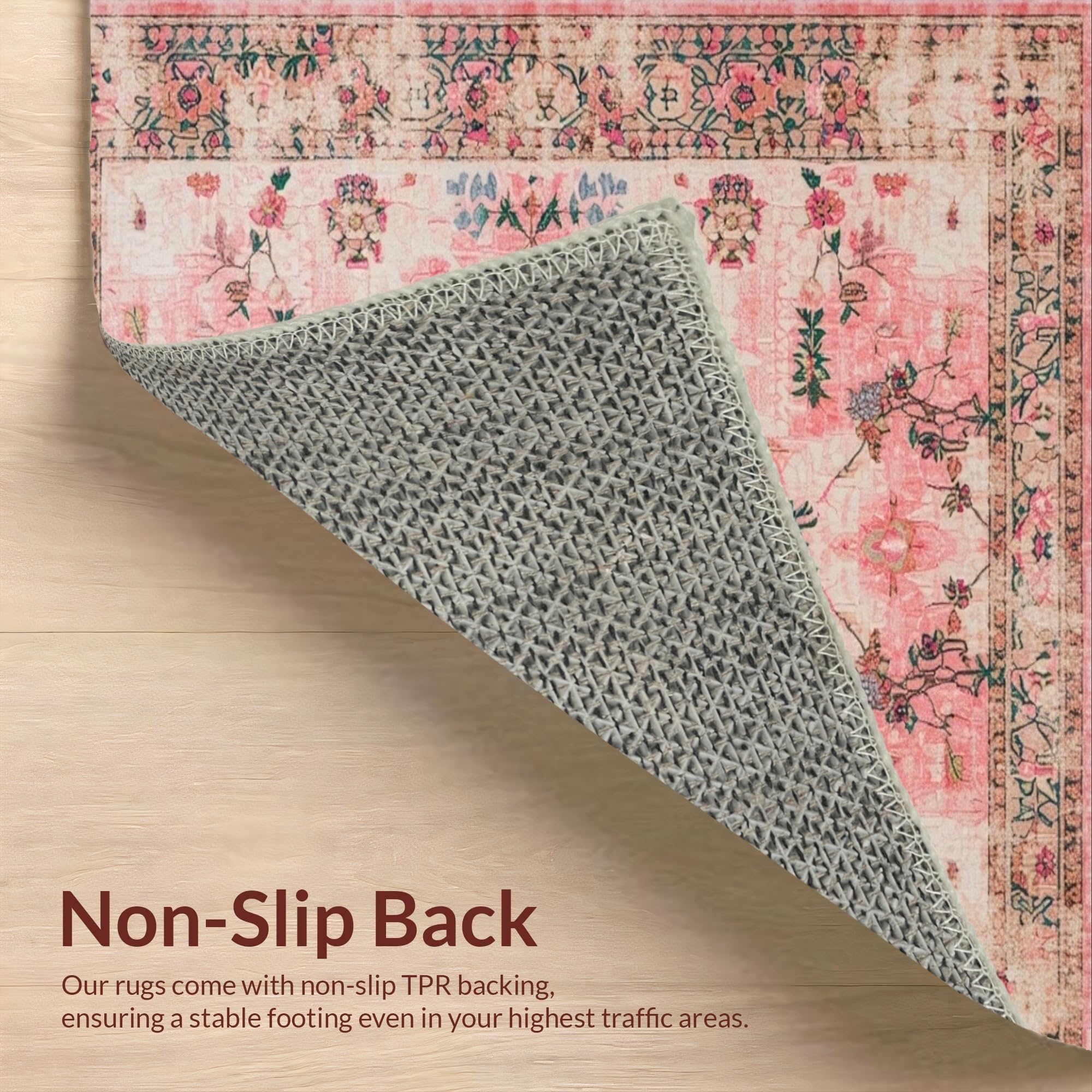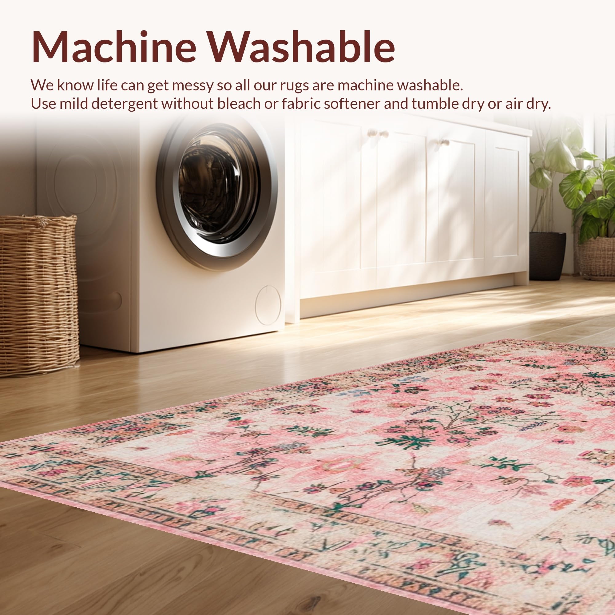 Ultra Soft Area Rug, Non Slip, Stain Resistant, Washable Area Rugs for Living Room, Bedroom, Charming Soft Pastel Botanical Motif(Pink) Overview: