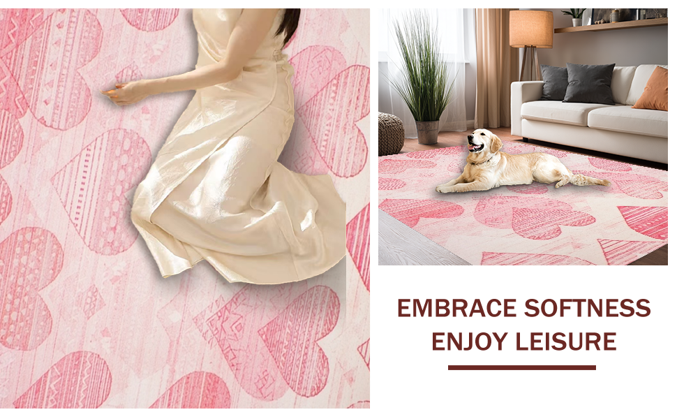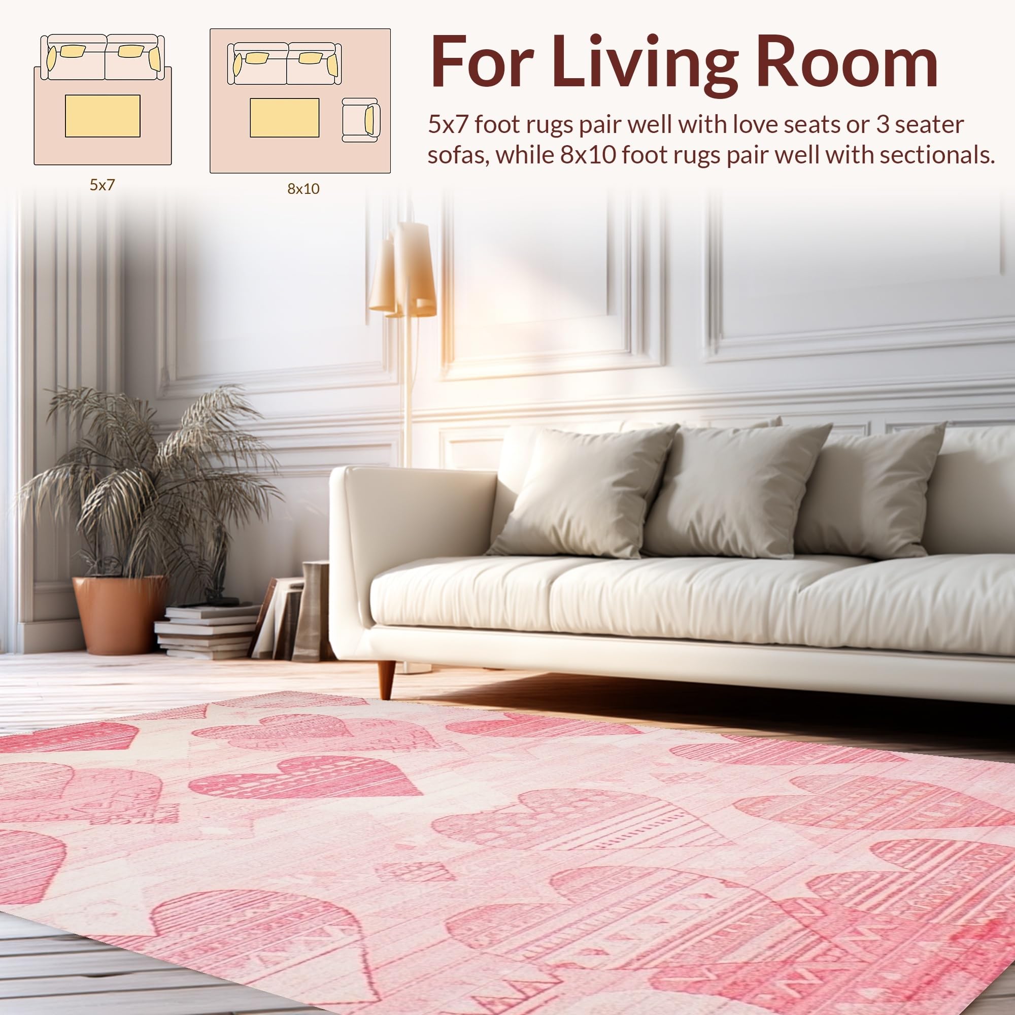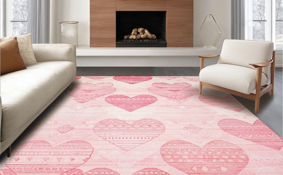 Ultra Soft Area Rug, Non Slip, Stain Resistant, Washable Area Rugs for Living Room, Bedroom, Charming Soft Pink Heart Motif(Pink) Overview: