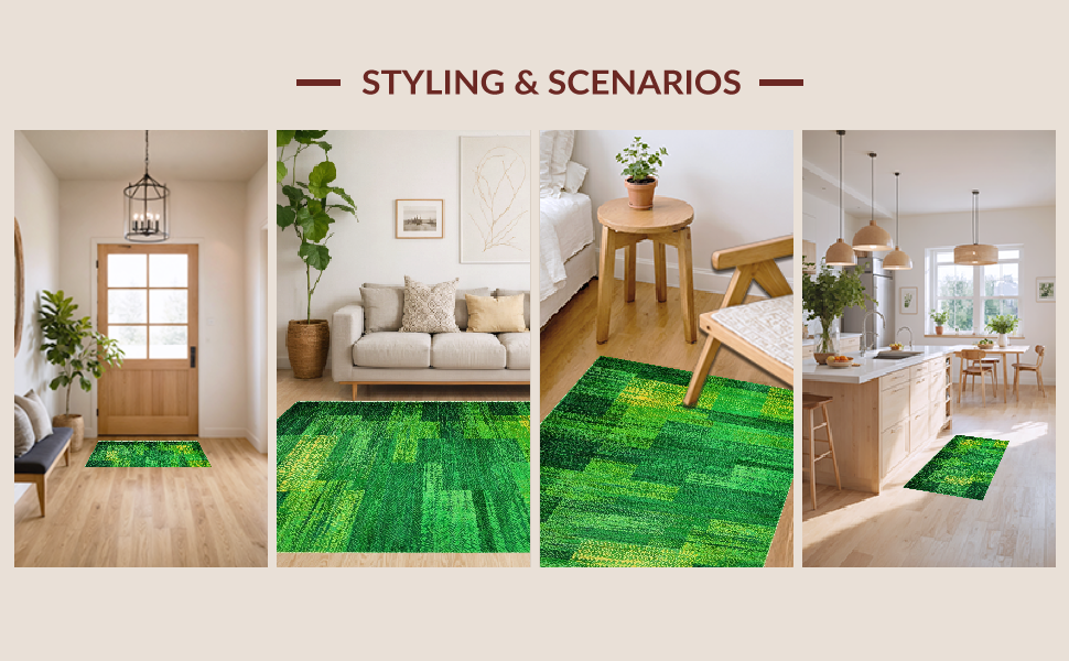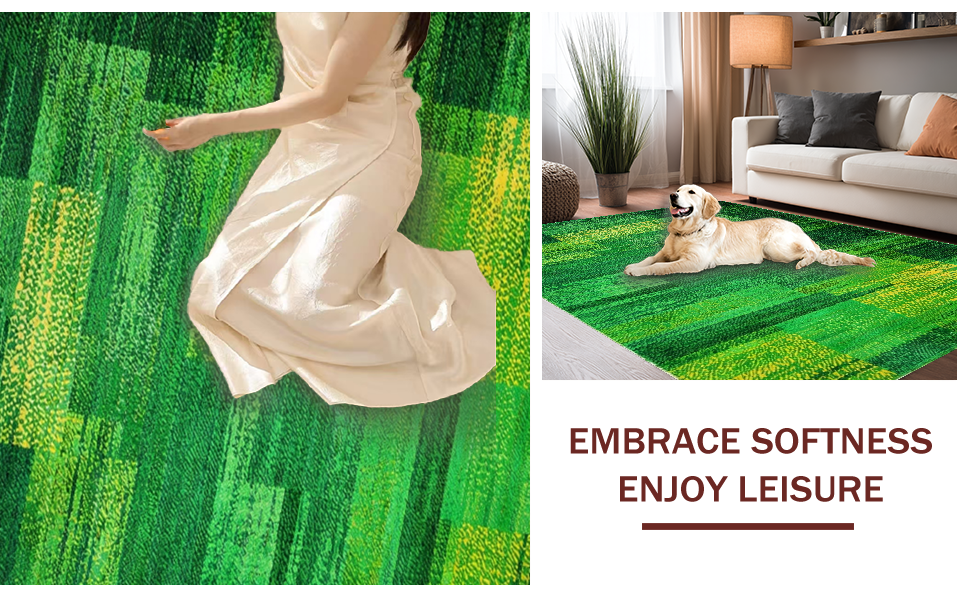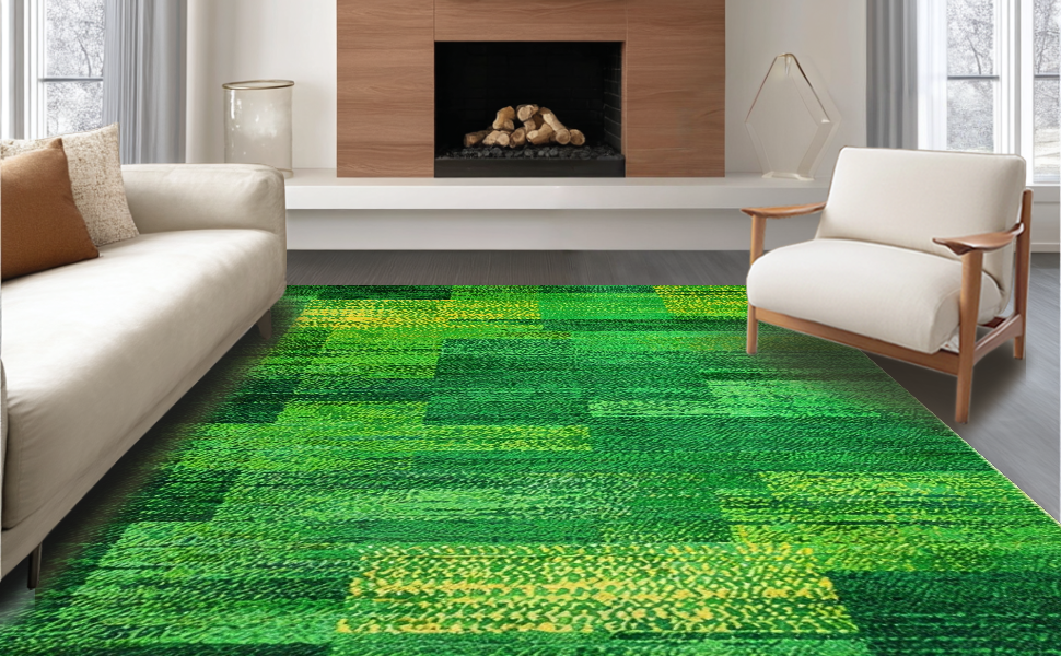 Ultra Soft Area Rug, Non Slip, Stain Resistant, Washable Area Rugs for Living Room, Bedroom, Charming Soft-Toned Textured Layers(Green) Overview: