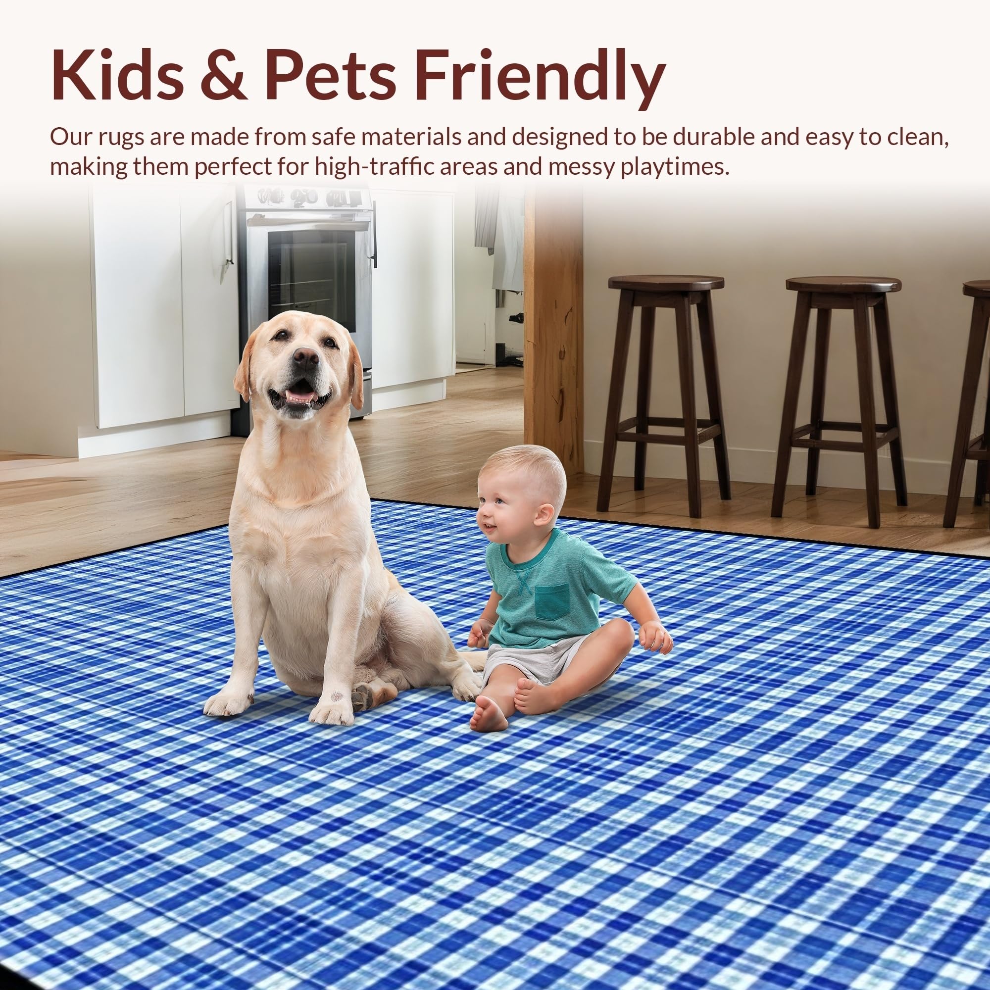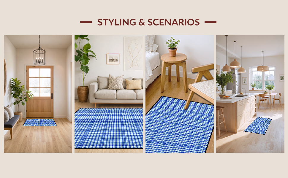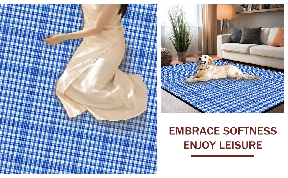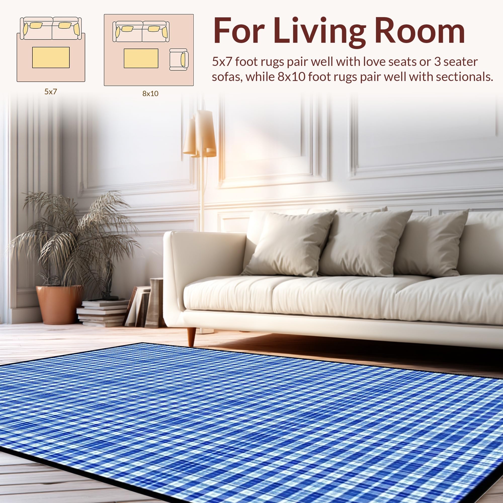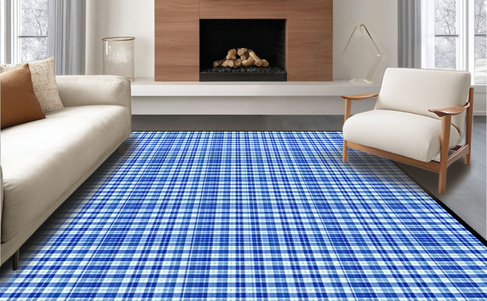 Ultra Soft Area Rug, Non Slip, Stain Resistant, Washable Area Rugs for Living Room, Bedroom, Charming Spring Checkered Aesthetic(Blue) Overview: