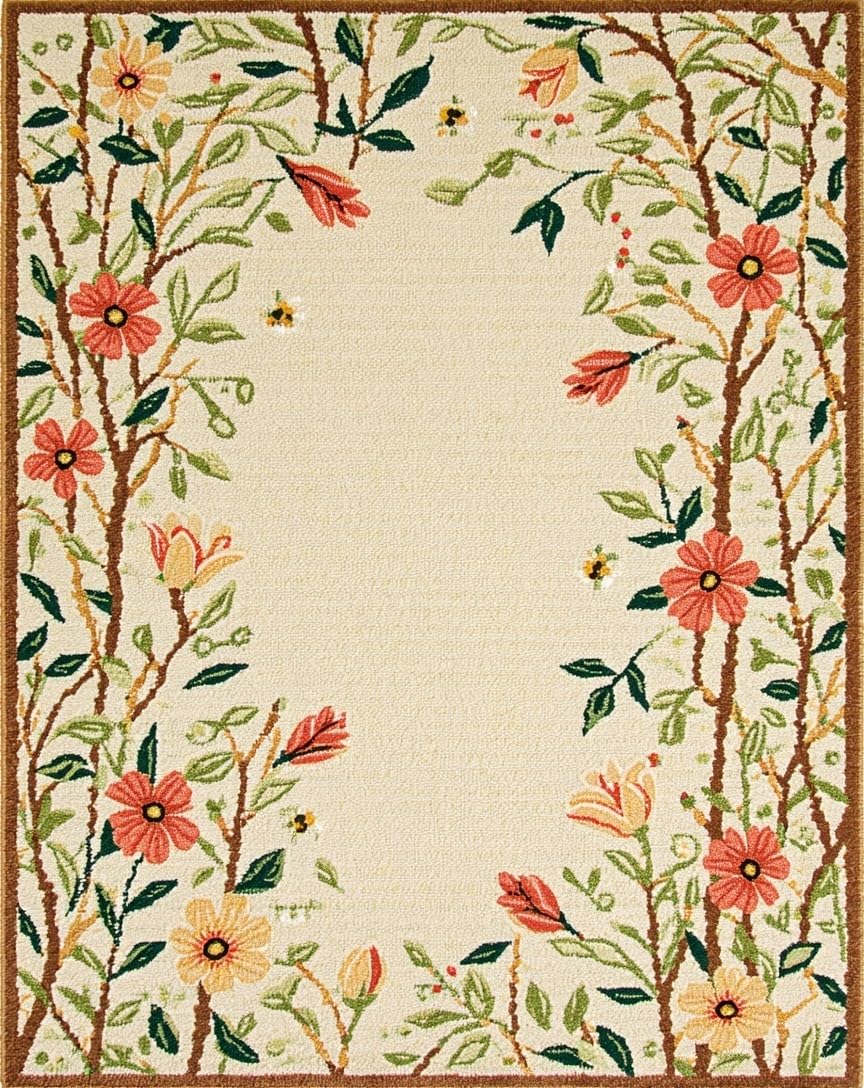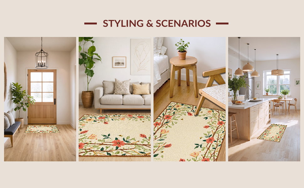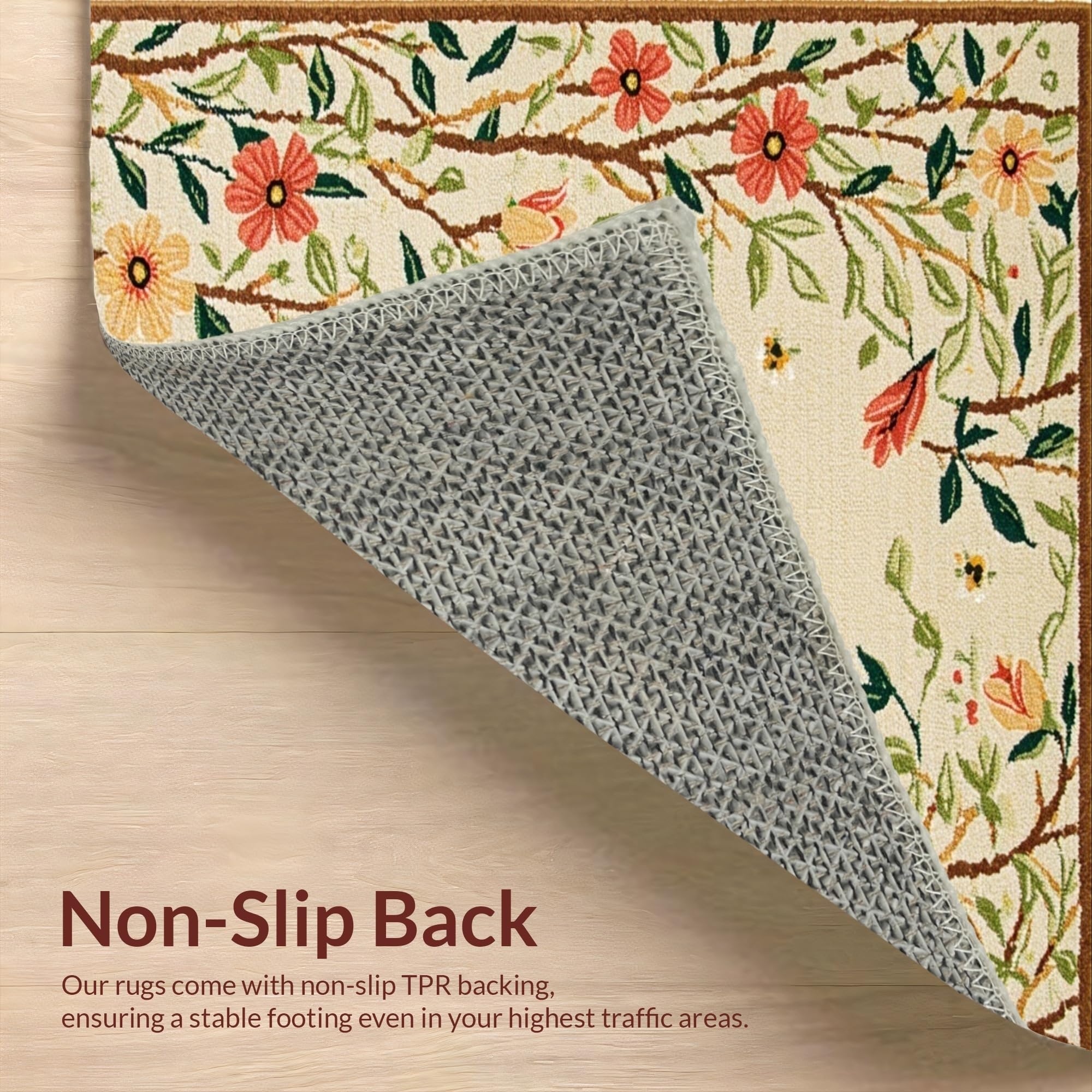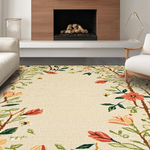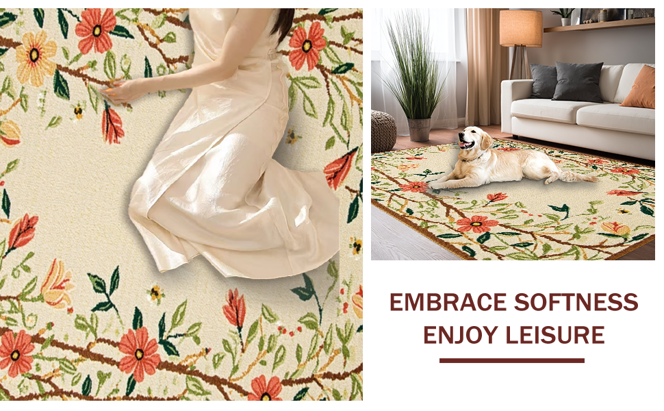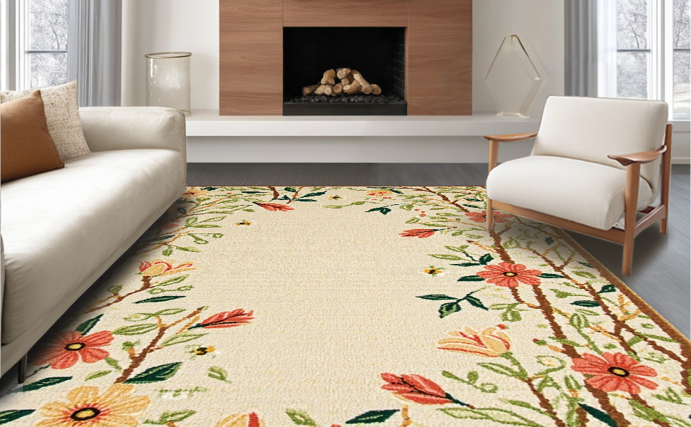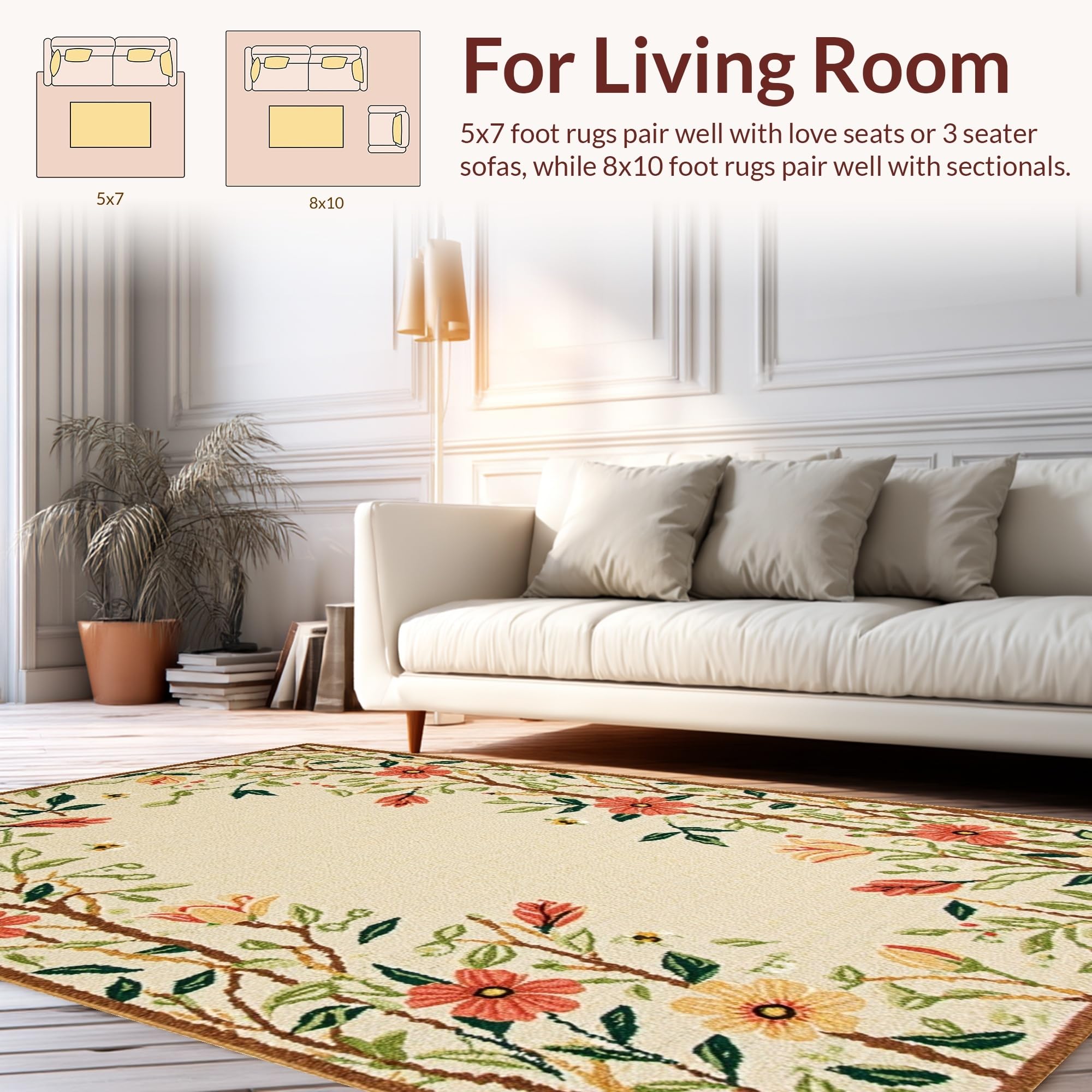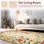 Ultra Soft Area Rug, Non Slip, Stain Resistant, Washable Area Rugs for Living Room, Bedroom, Charming Springtime Bunny Illustration(Beige) Overview:
