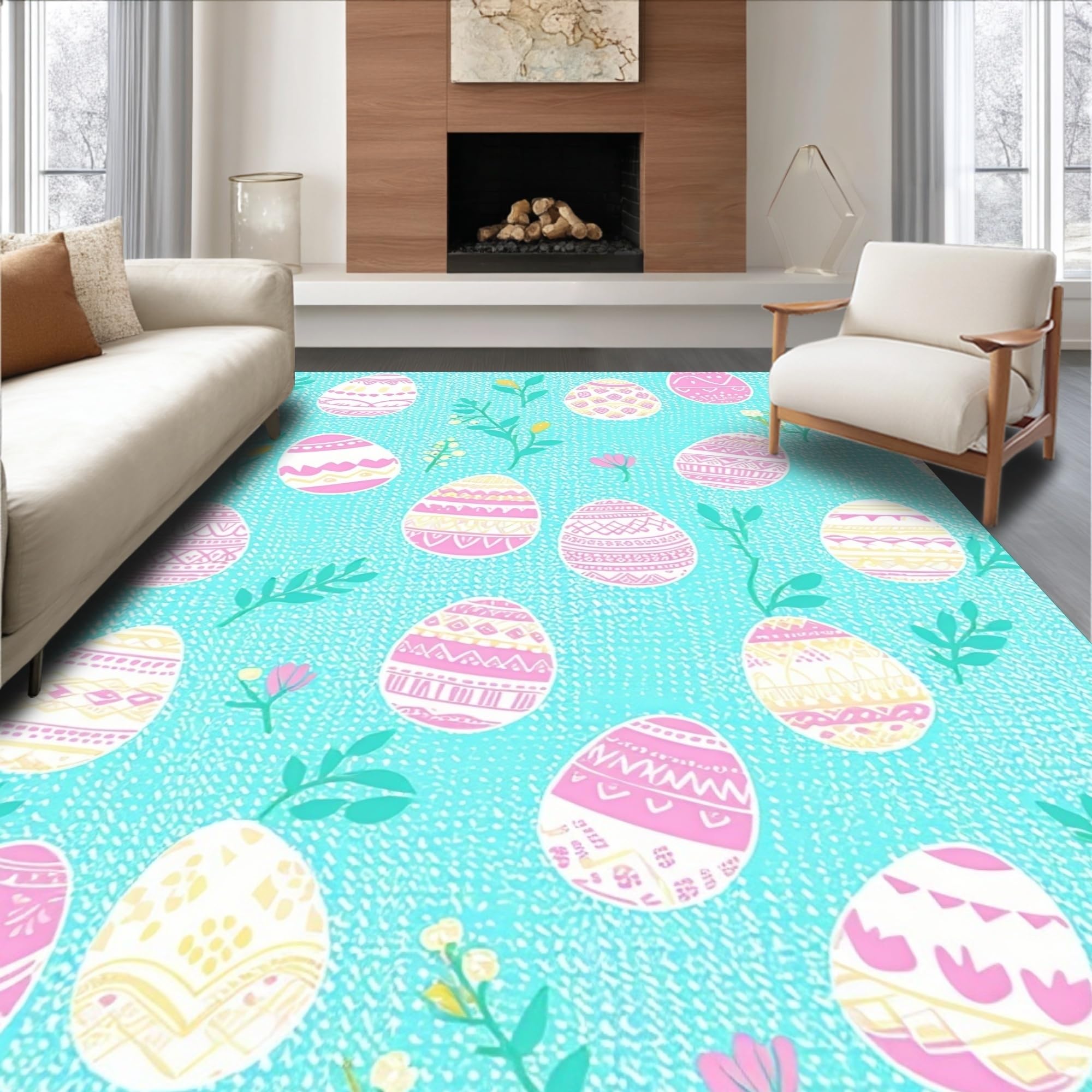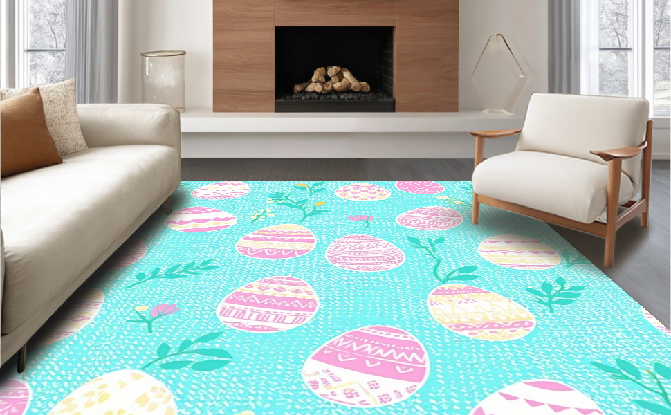 Ultra Soft Area Rug, Non Slip, Stain Resistant, Washable Area Rugs for Living Room, Bedroom, Charming Springtime Floral Pattern(Blue) Overview: