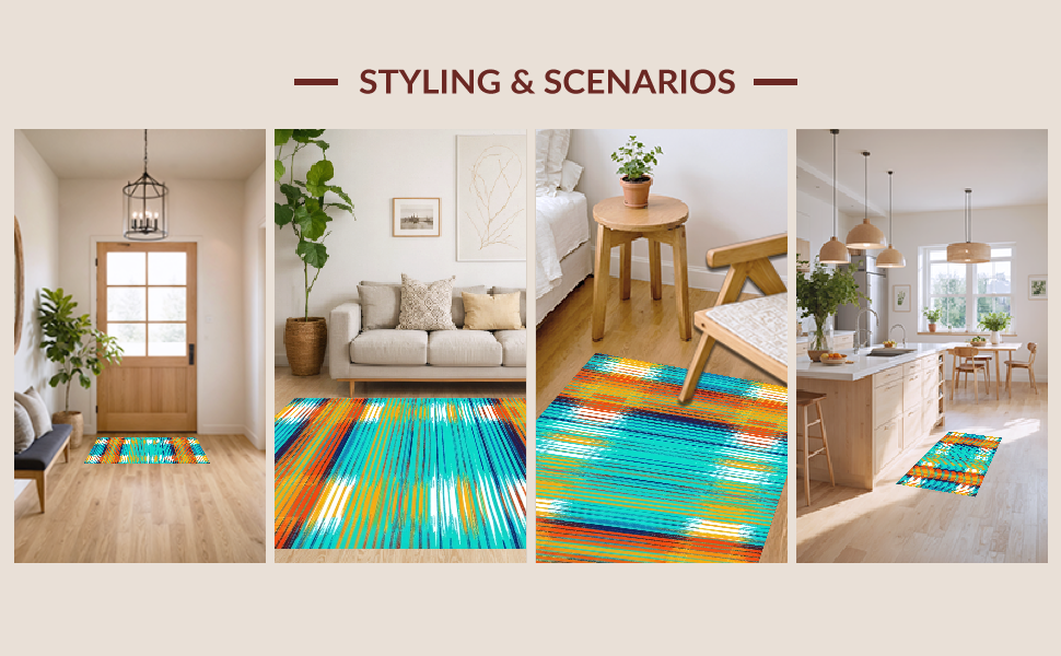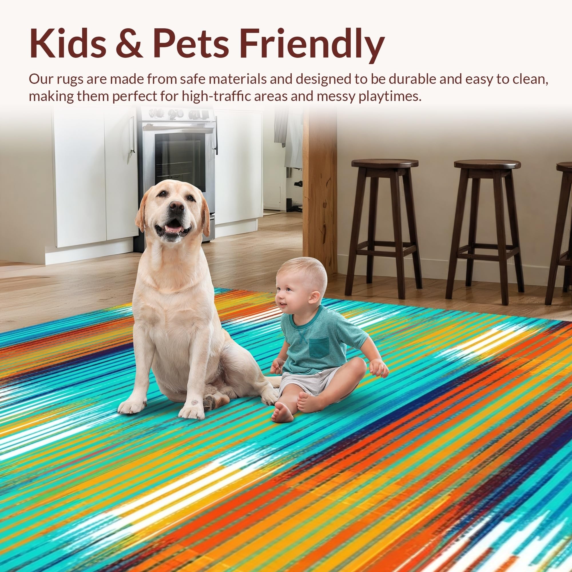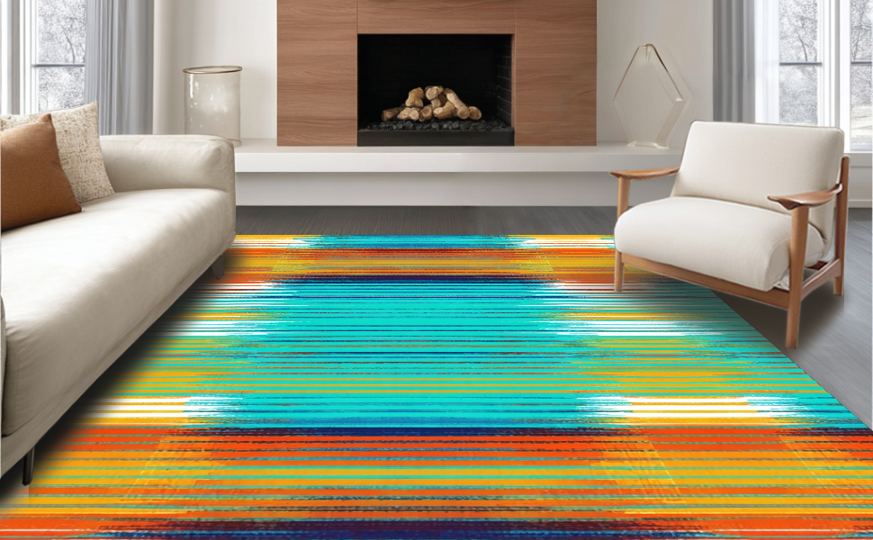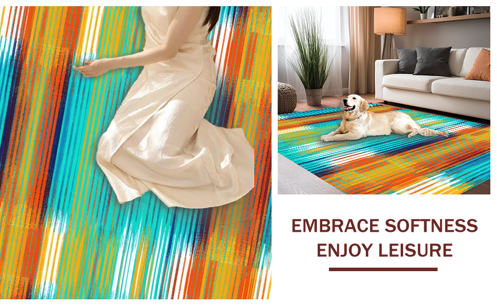 Ultra Soft Area Rug, Non Slip, Stain Resistant, Washable Area Rugs for Living Room, Bedroom, Charming Teal and Orange Fusion(Blue) Overview: