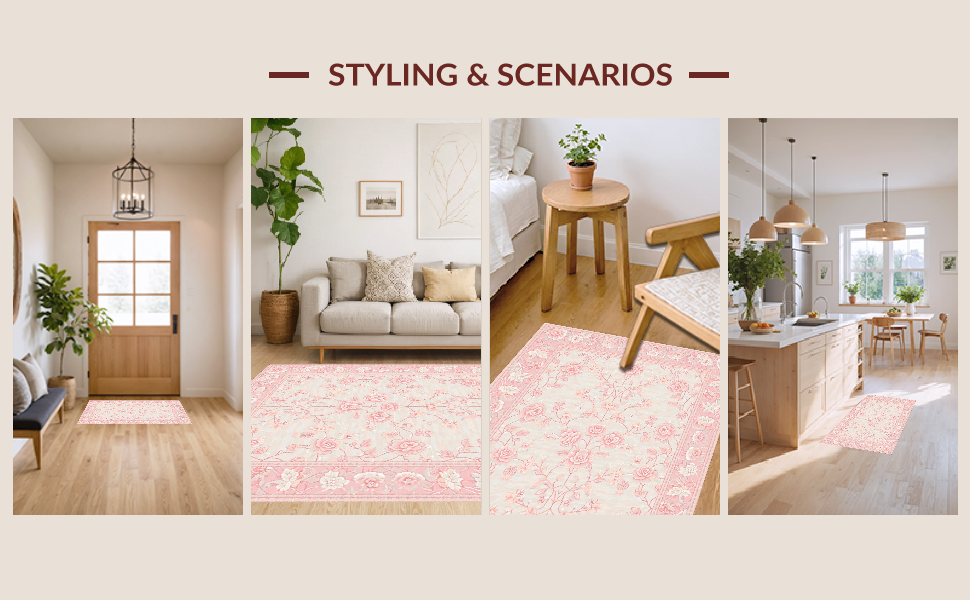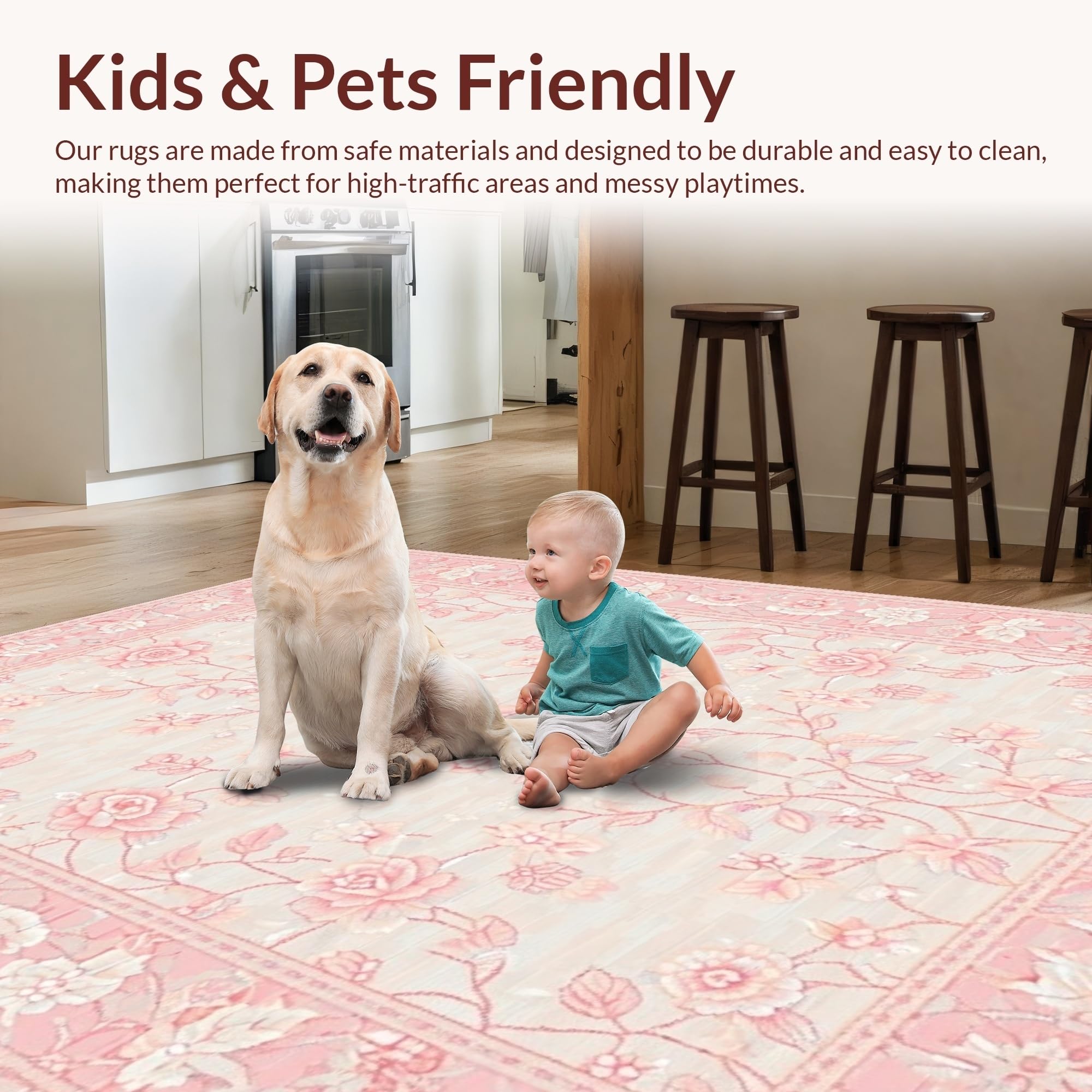 Ultra Soft Area Rug, Non Slip, Stain Resistant, Washable Area Rugs for Living Room, Bedroom, Charming Textured Pastel Vibe(Pink) Overview: