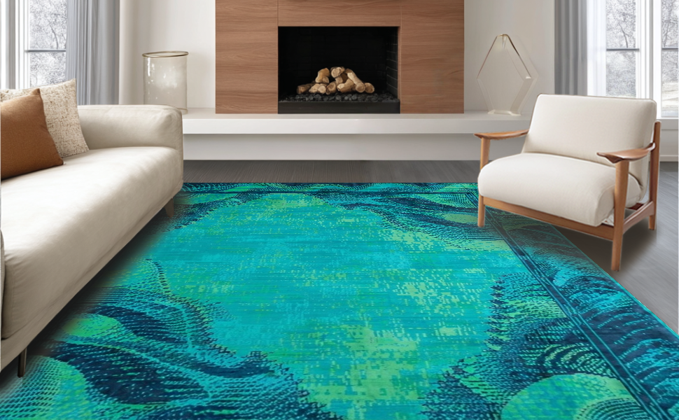 Ultra Soft Area Rug, Non Slip, Stain Resistant, Washable Area Rugs for Living Room, Bedroom, Charming Textured Spiral Arrangement(Blue) Overview: