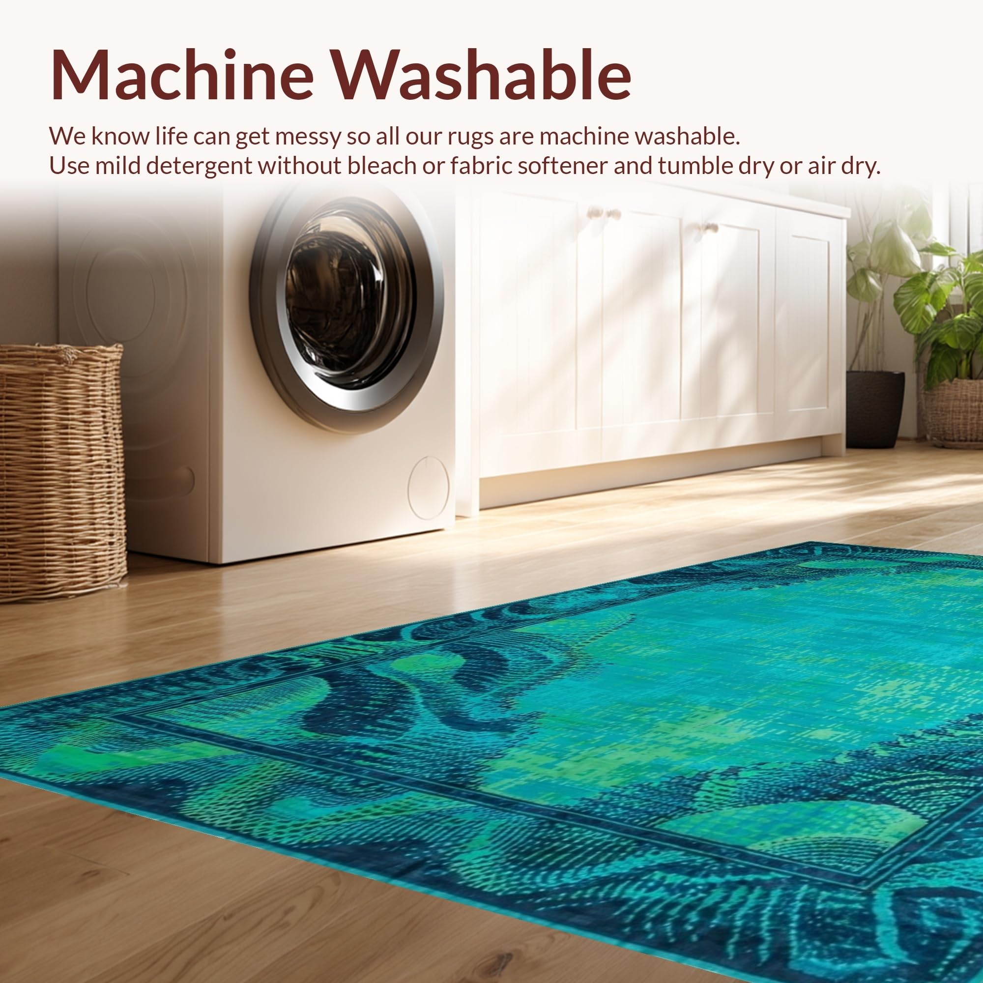 - Machine Washable: Our rugs can be easily thrown in the wash machine.
