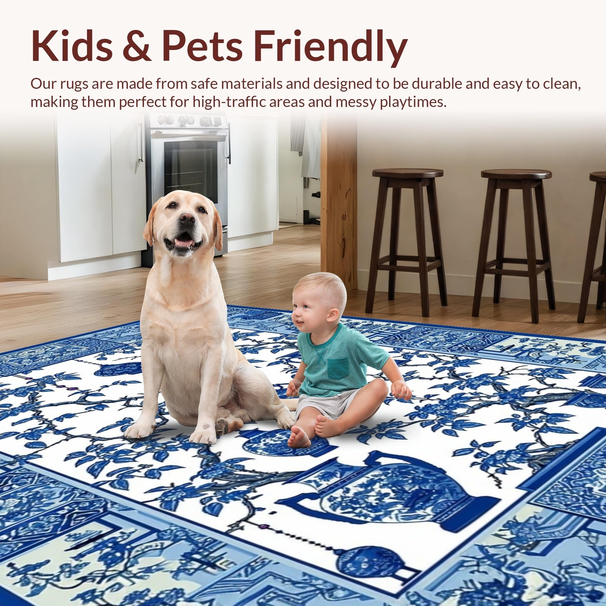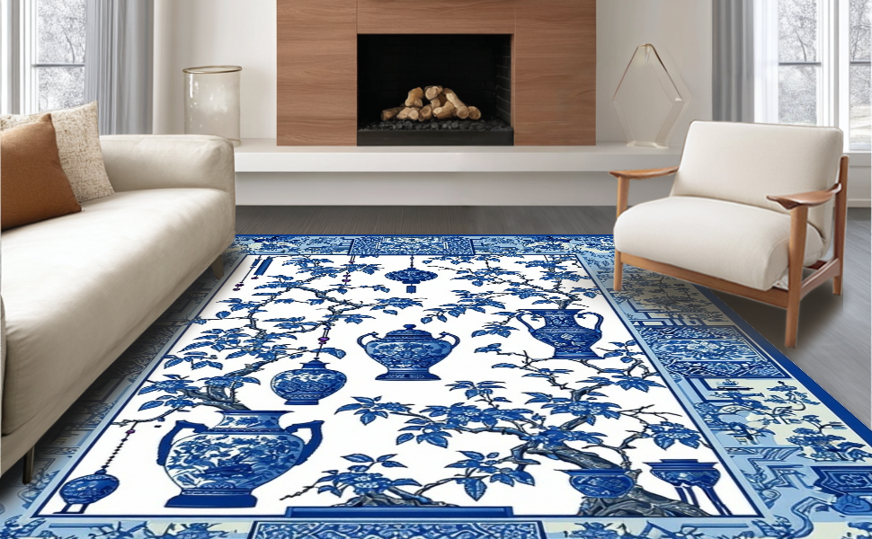 Ultra Soft Area Rug, Non Slip, Stain Resistant, Washable Area Rugs for Living Room, Bedroom, Charming Traditional Floral Trellis Style(Blue) Overview: