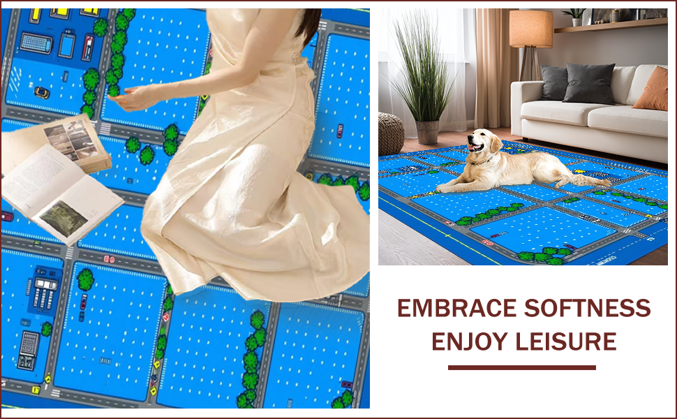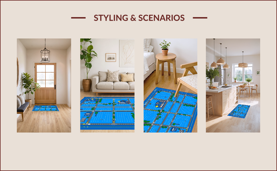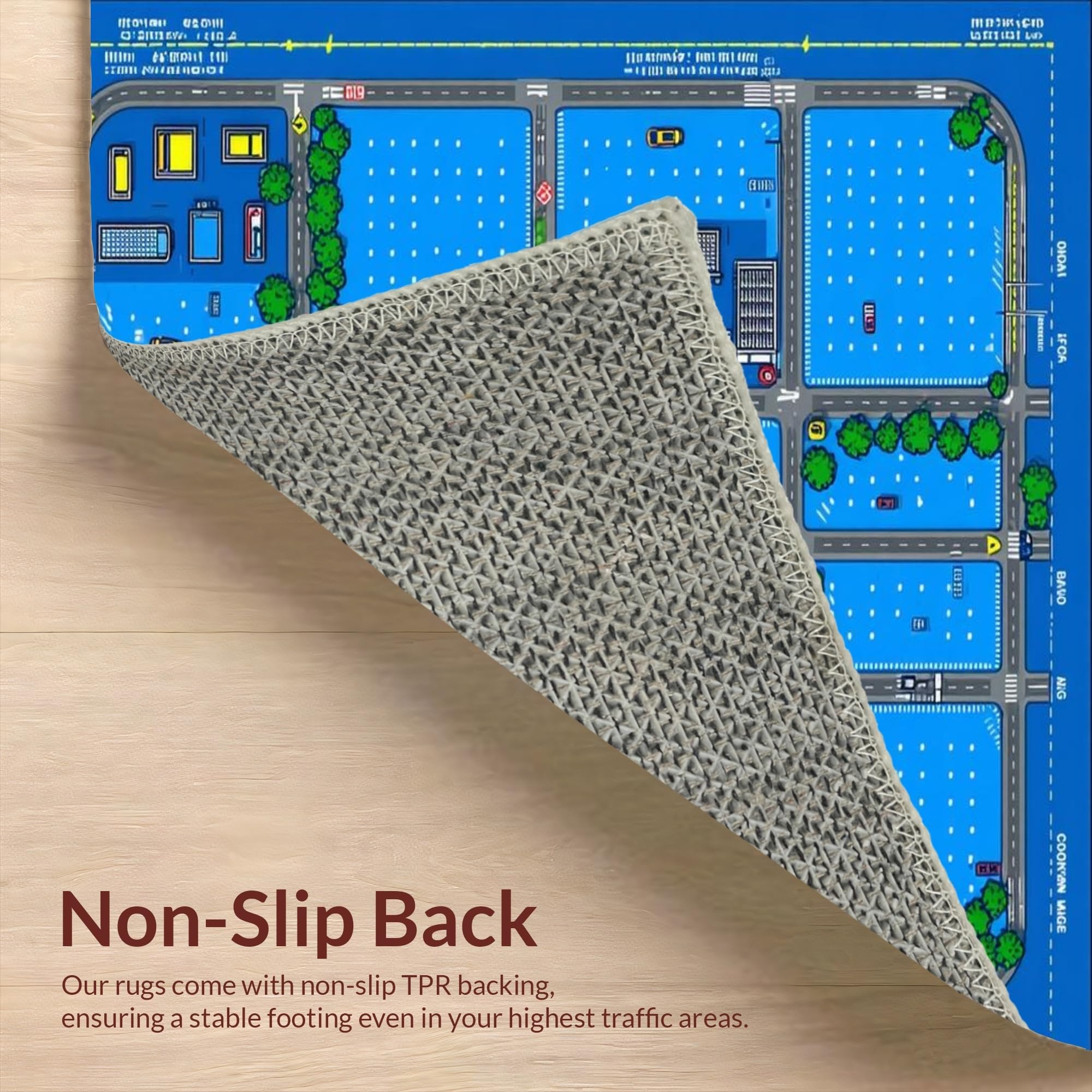 Ultra Soft Area Rug, Non Slip, Stain Resistant, Washable Area Rugs for Living Room, Bedroom, Charming Traffic Theme Decor(Blue) Overview: