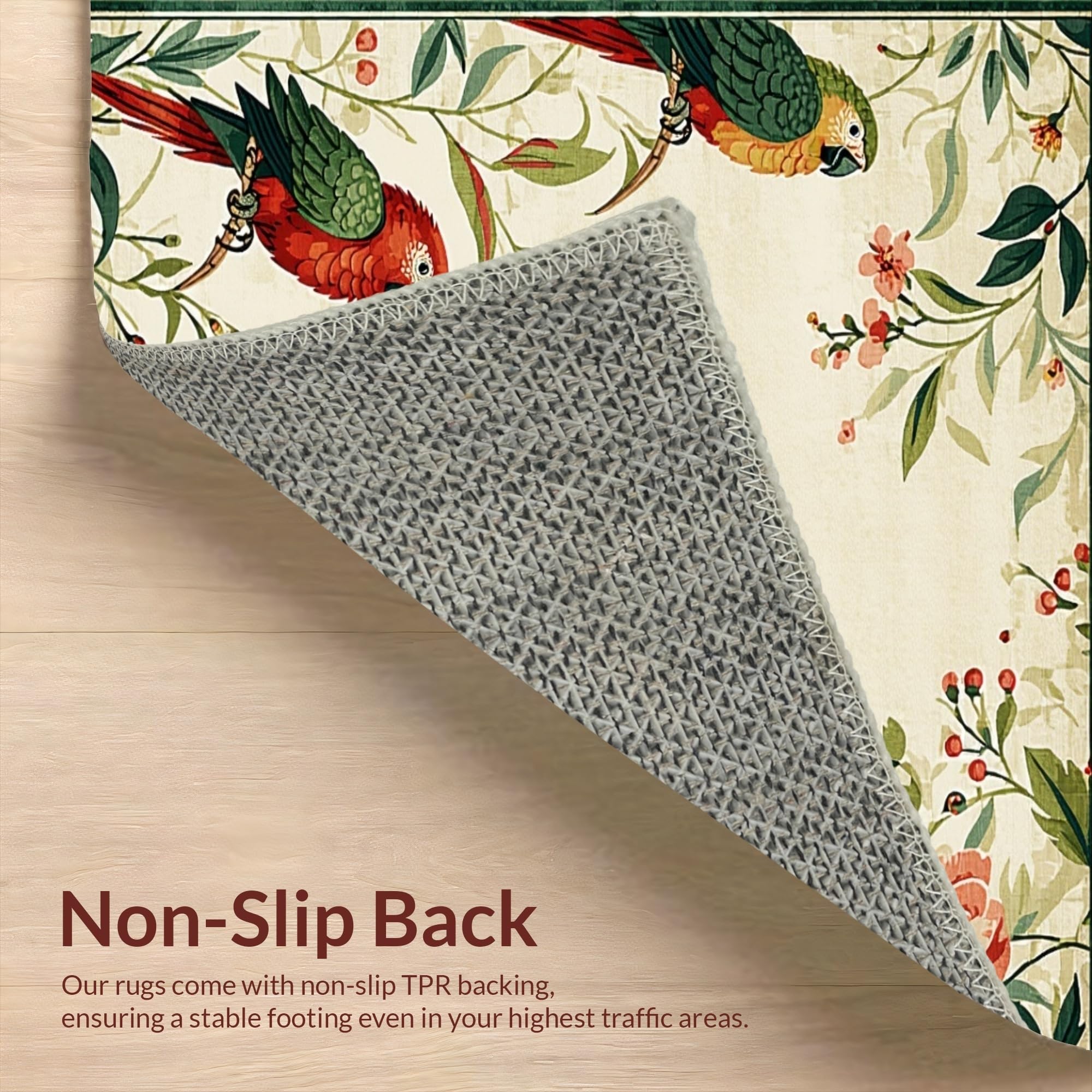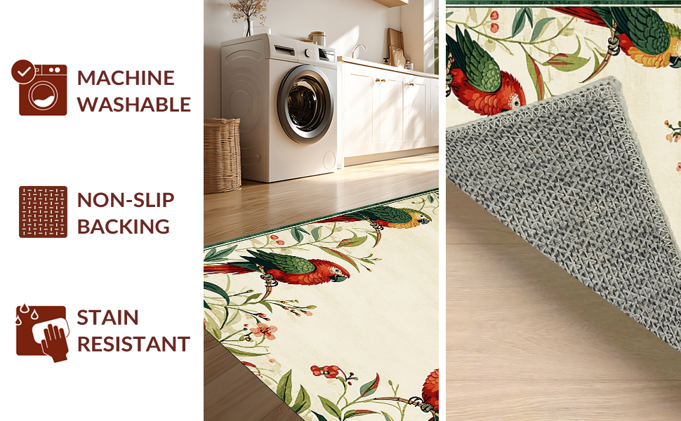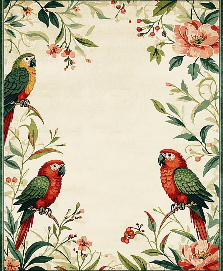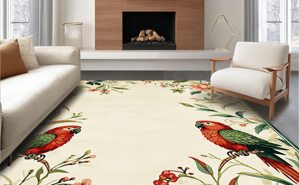 Ultra Soft Area Rug, Non Slip, Stain Resistant, Washable Area Rugs for Living Room, Bedroom, Charming Tropical Bird Motif(Beige) Overview:
