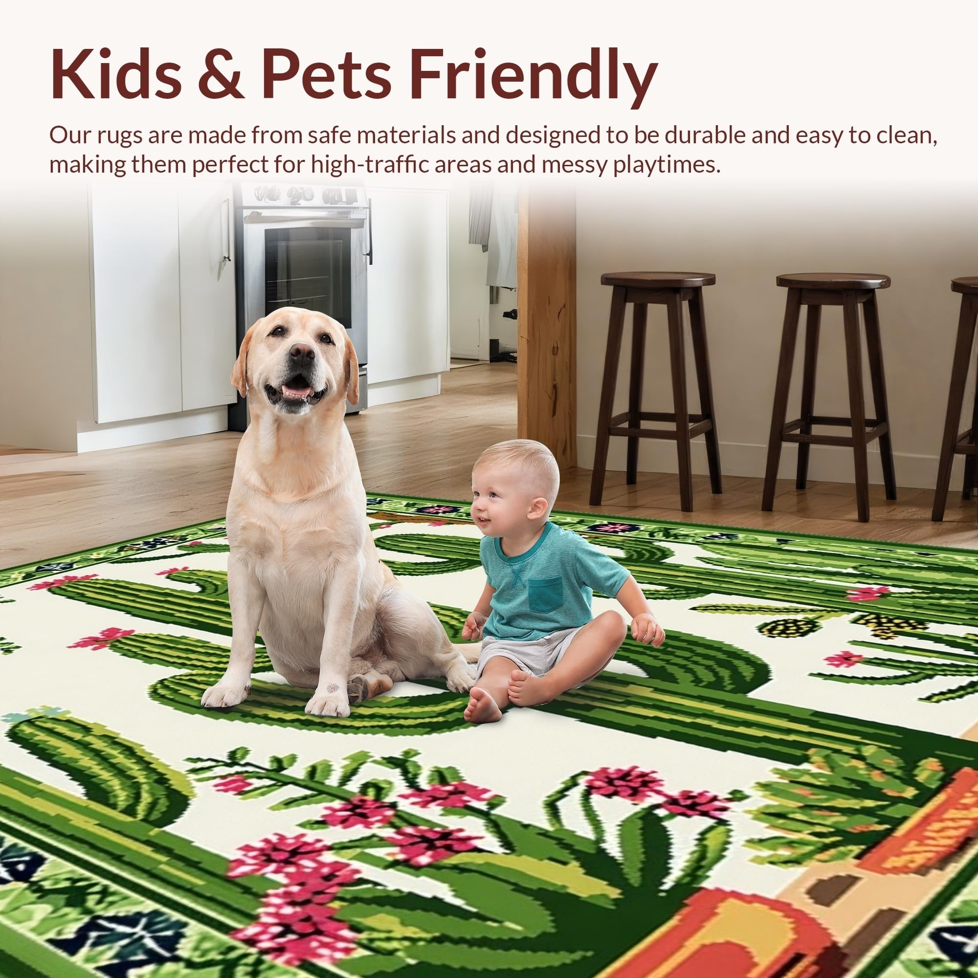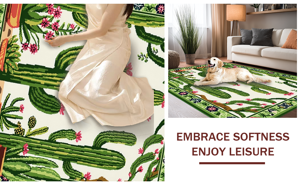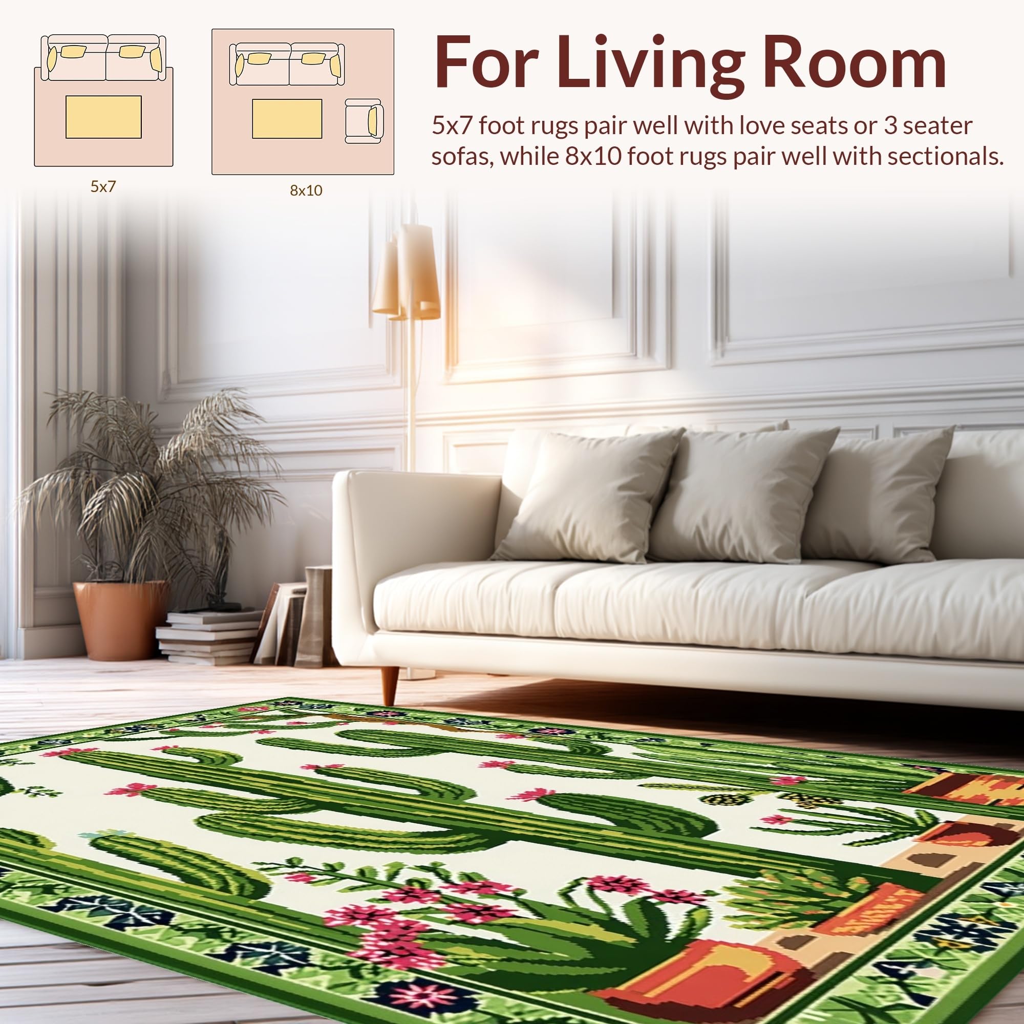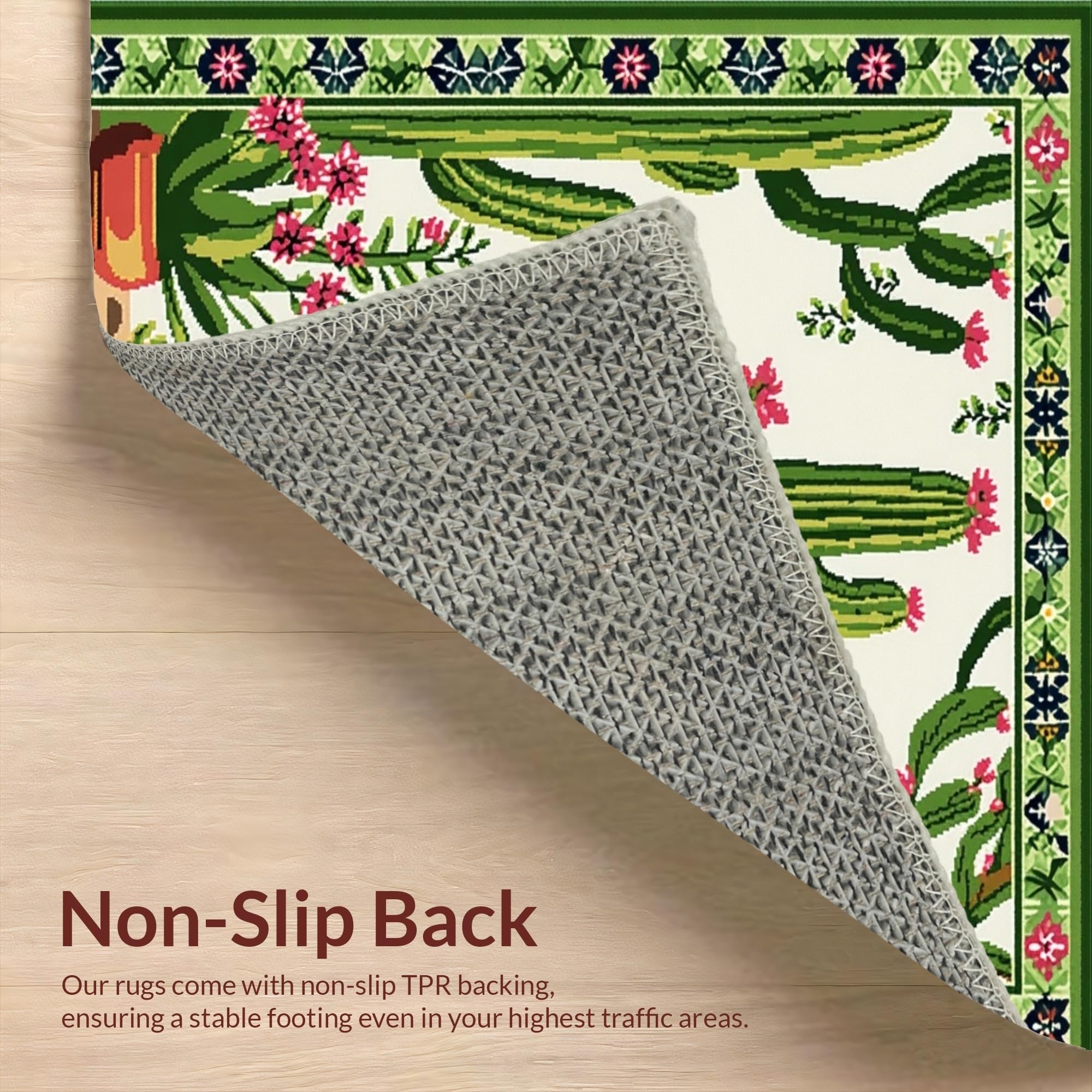 Ultra Soft Area Rug, Non Slip, Stain Resistant, Washable Area Rugs for Living Room, Bedroom, Charming Tropical Garden Design(Green) Overview: