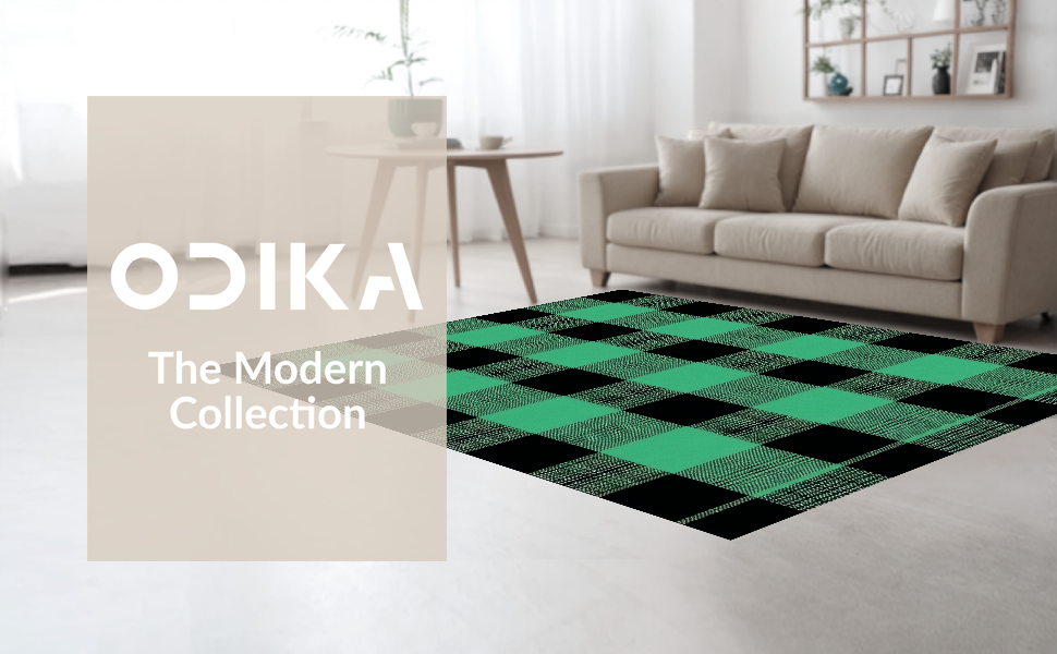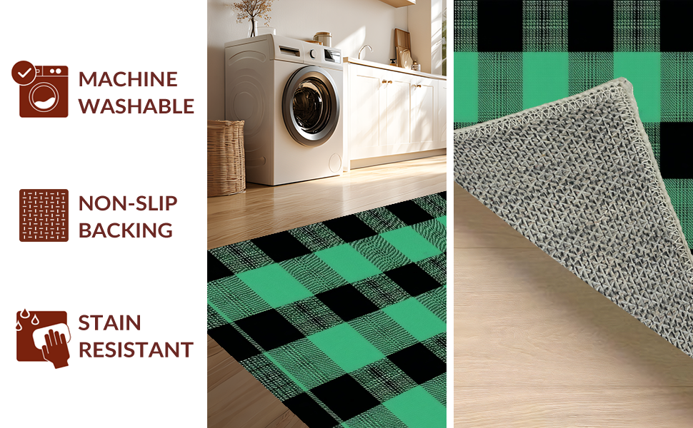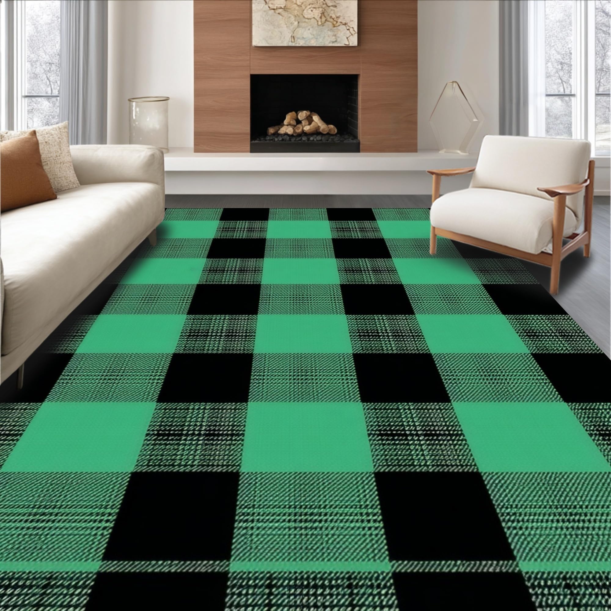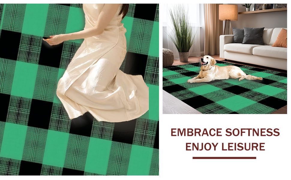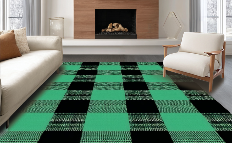 Ultra Soft Area Rug, Non Slip, Stain Resistant, Washable Area Rugs for Living Room, Bedroom, Charming Two-Tone Checkered Elegance(Green) Overview: