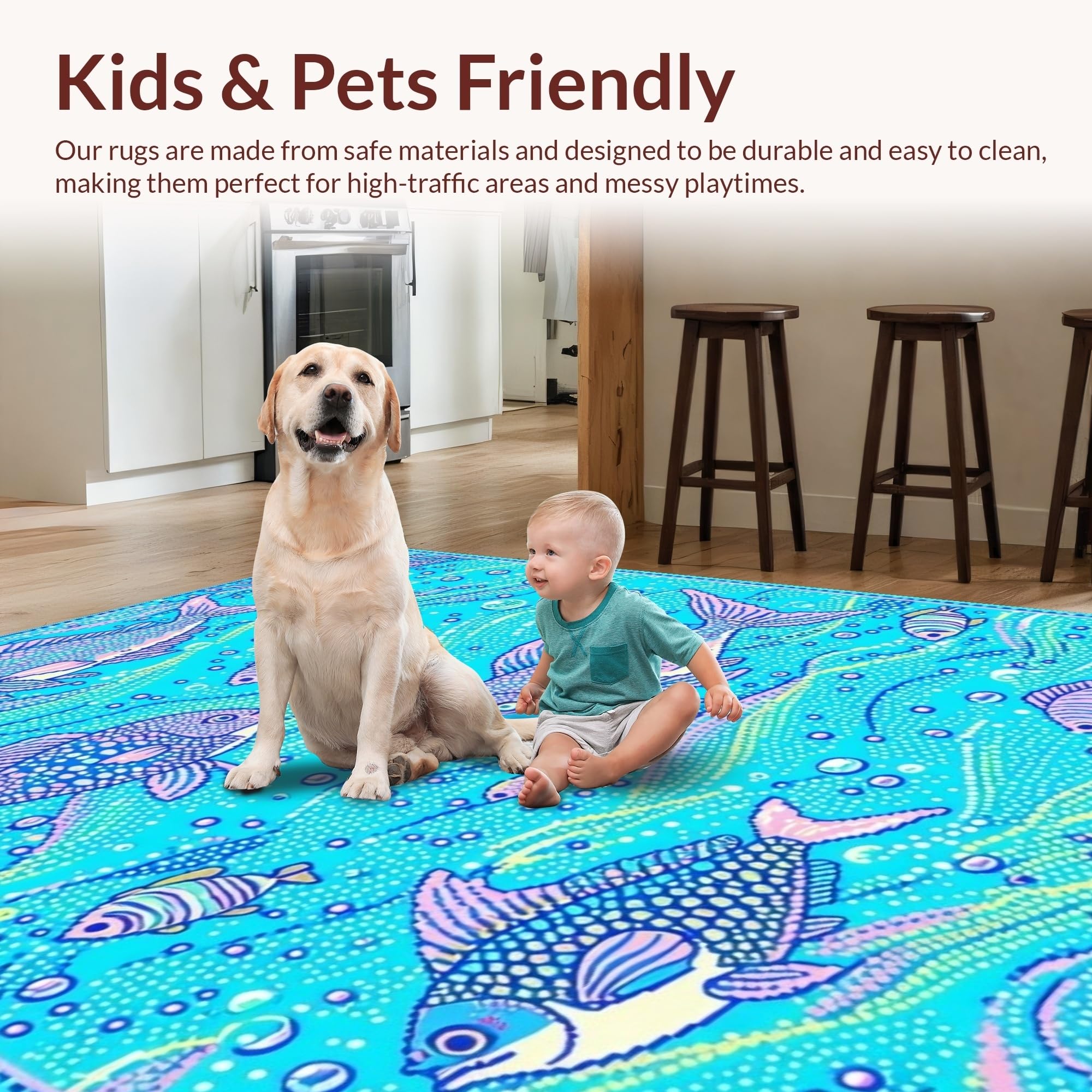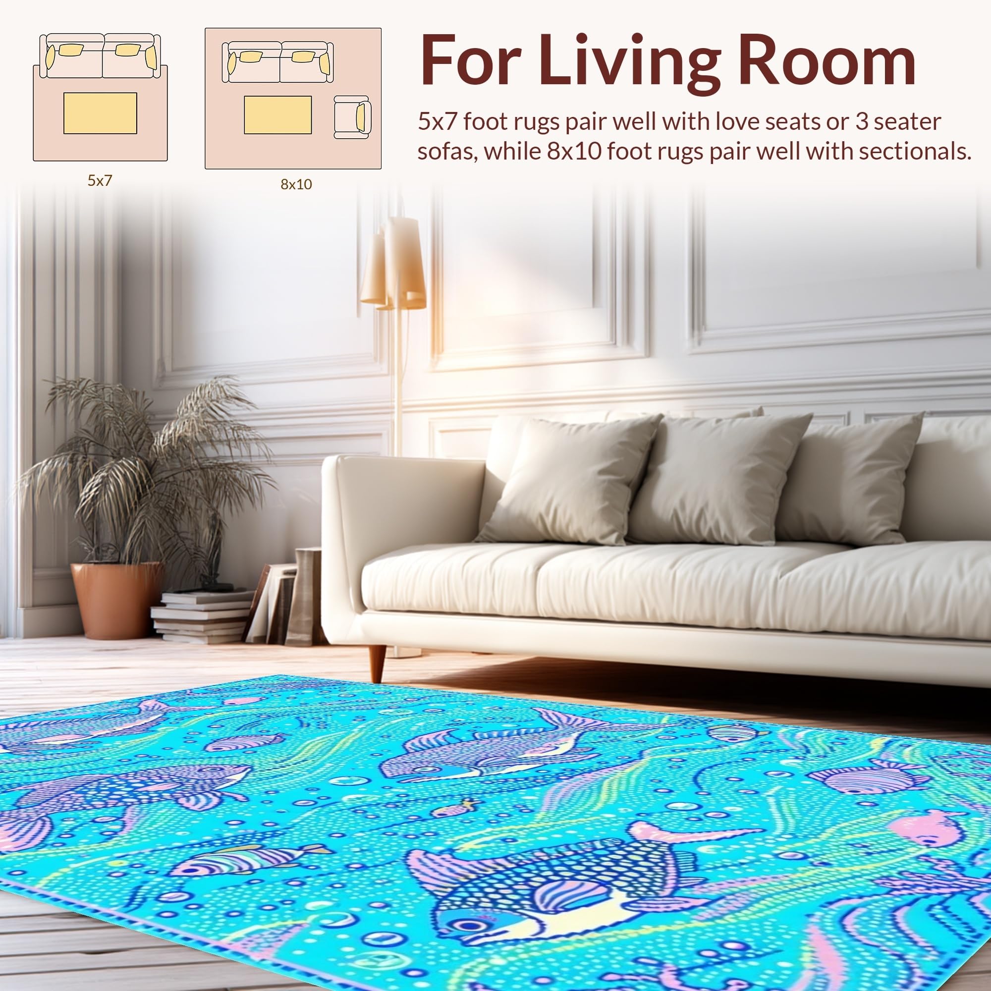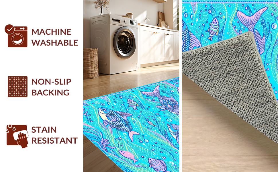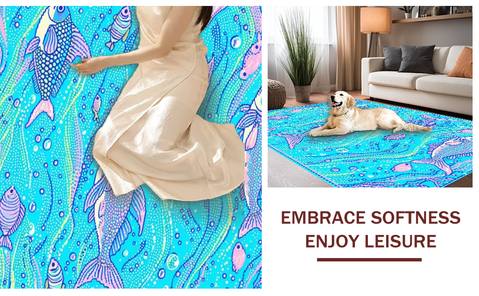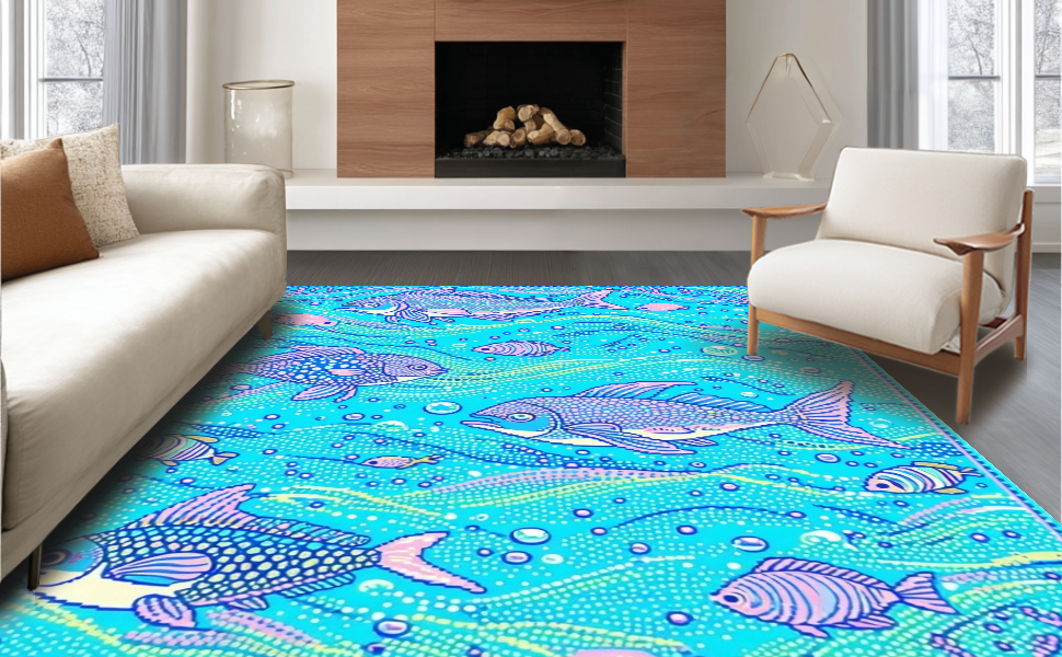Ultra Soft Area Rug, Non Slip, Stain Resistant, Washable Area Rugs for Living Room, Bedroom, Charming Underwater Dreamscape Rug(Blue) Overview: