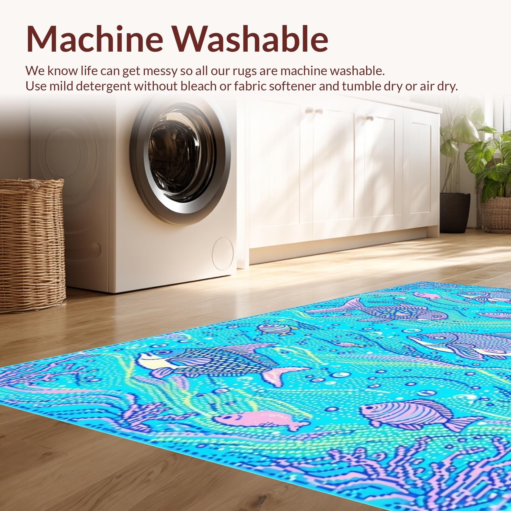 - Machine Washable: Our rugs can be easily thrown in the wash machine.