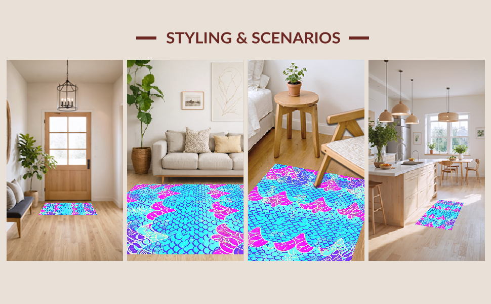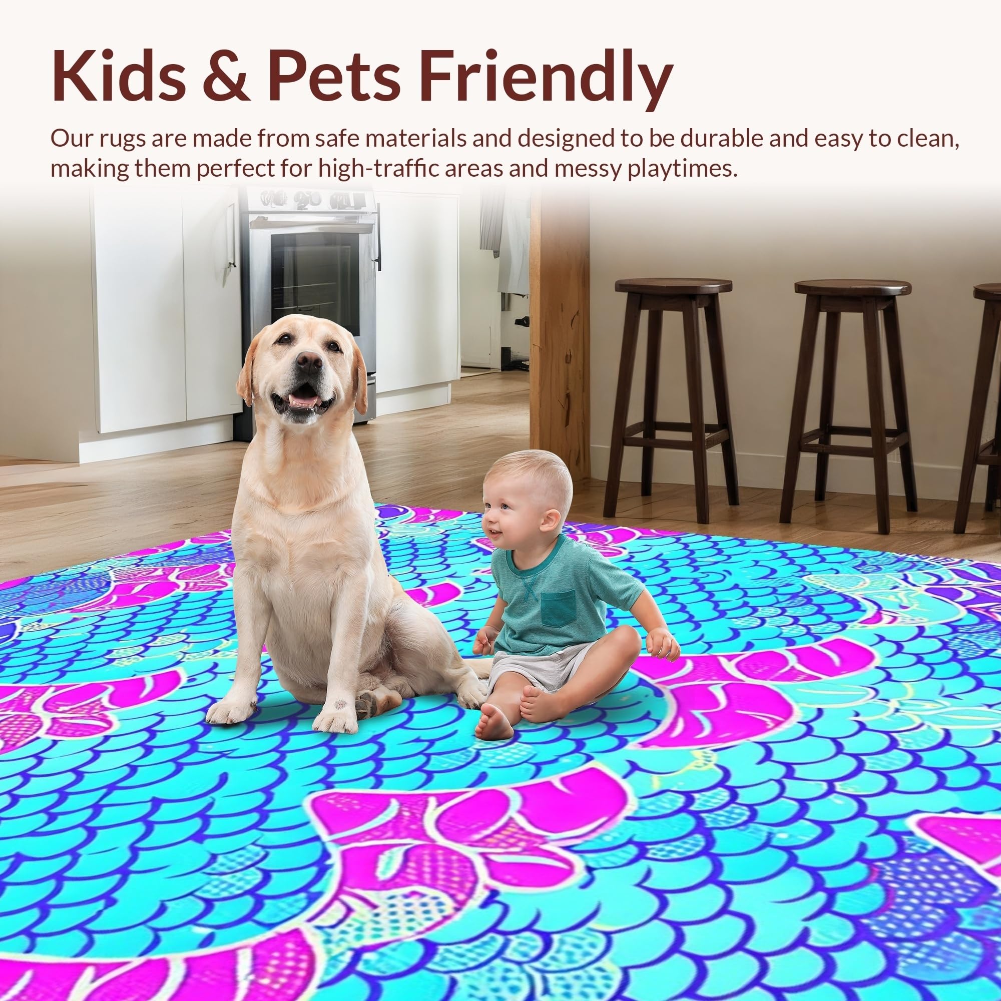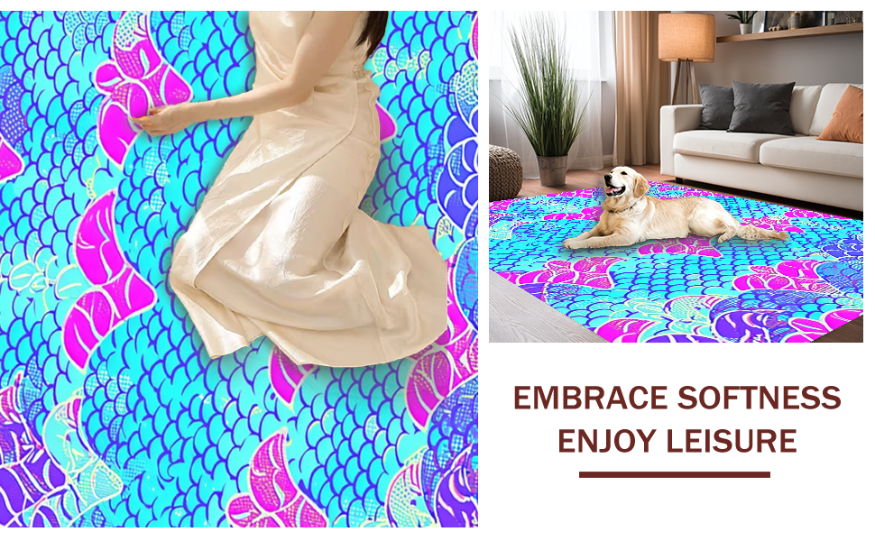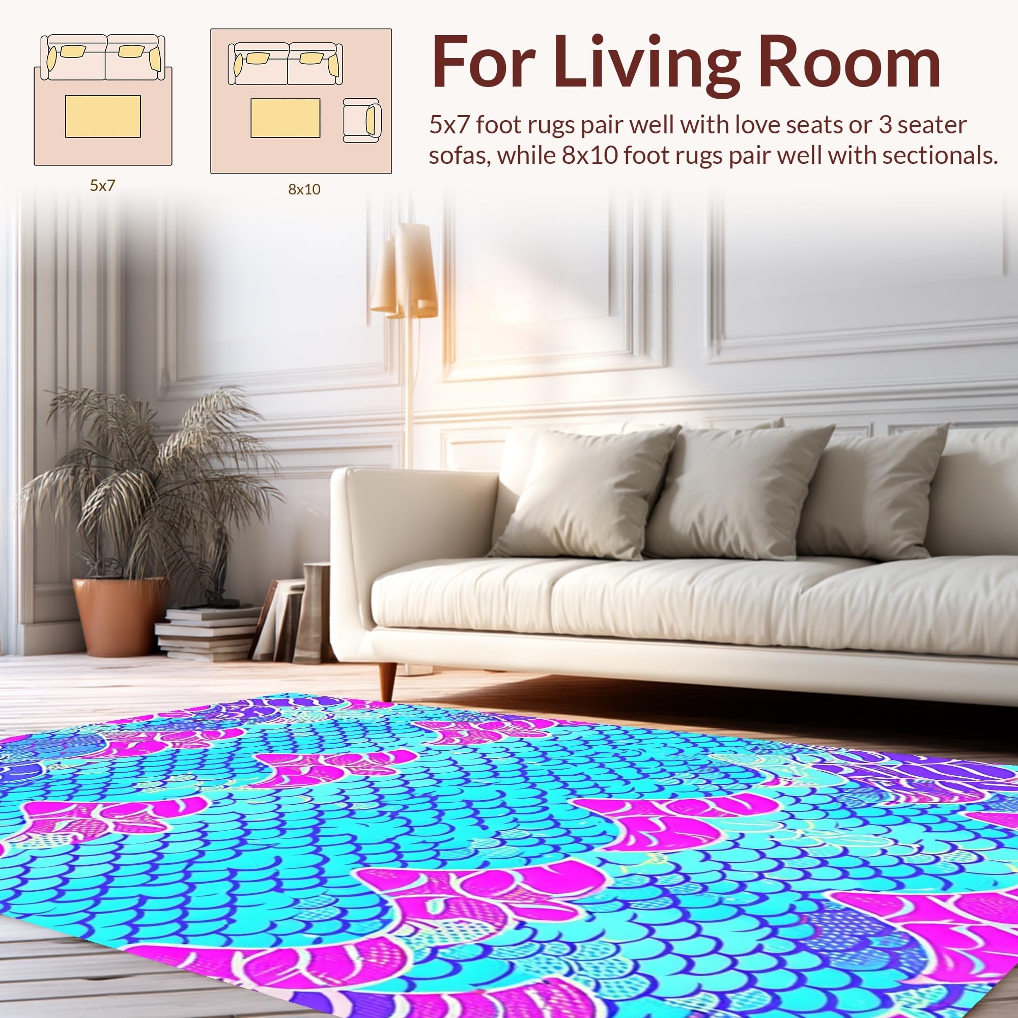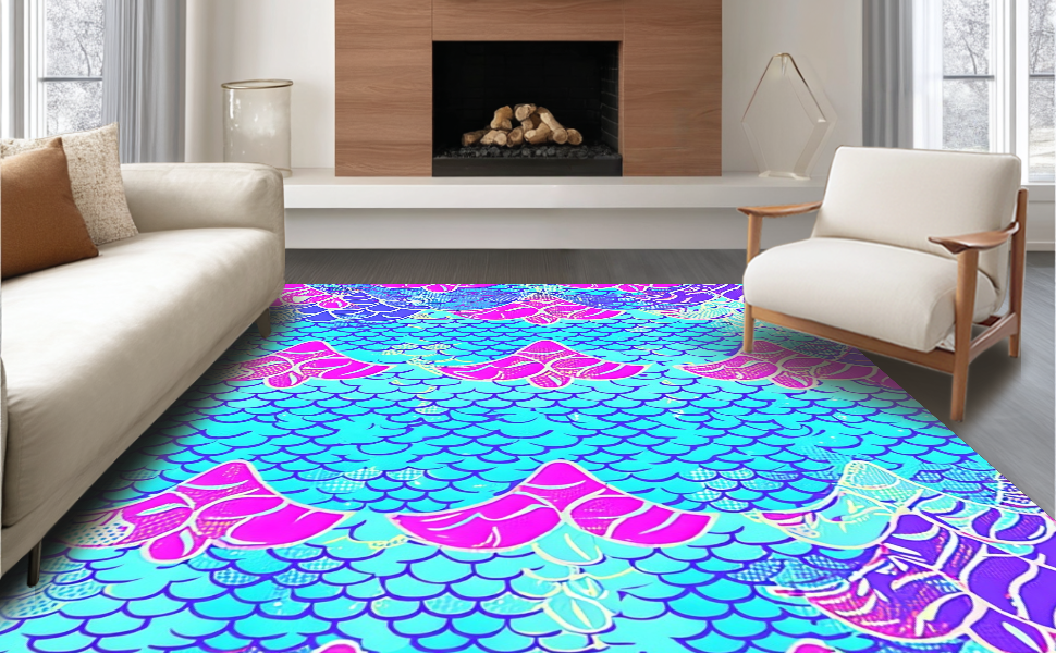 Ultra Soft Area Rug, Non Slip, Stain Resistant, Washable Area Rugs for Living Room, Bedroom, Charming Underwater Fantasy Motif(Blue) Overview: