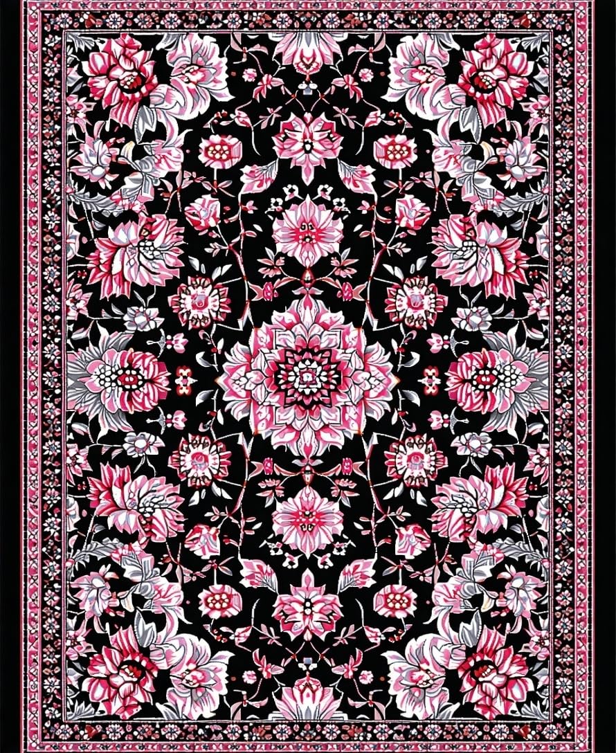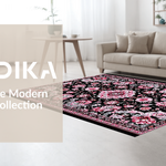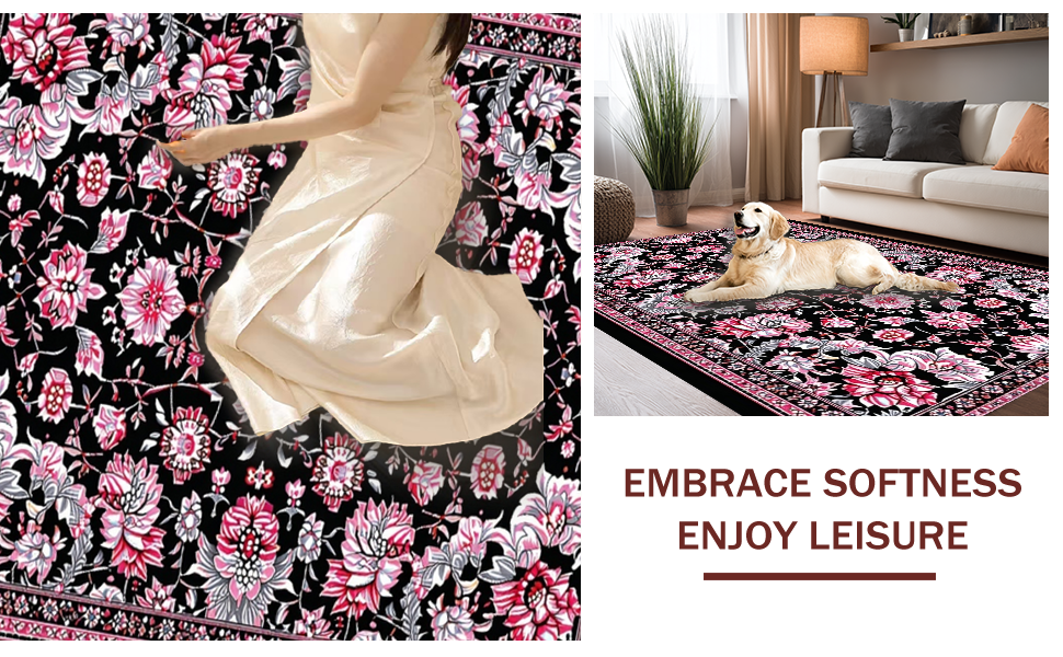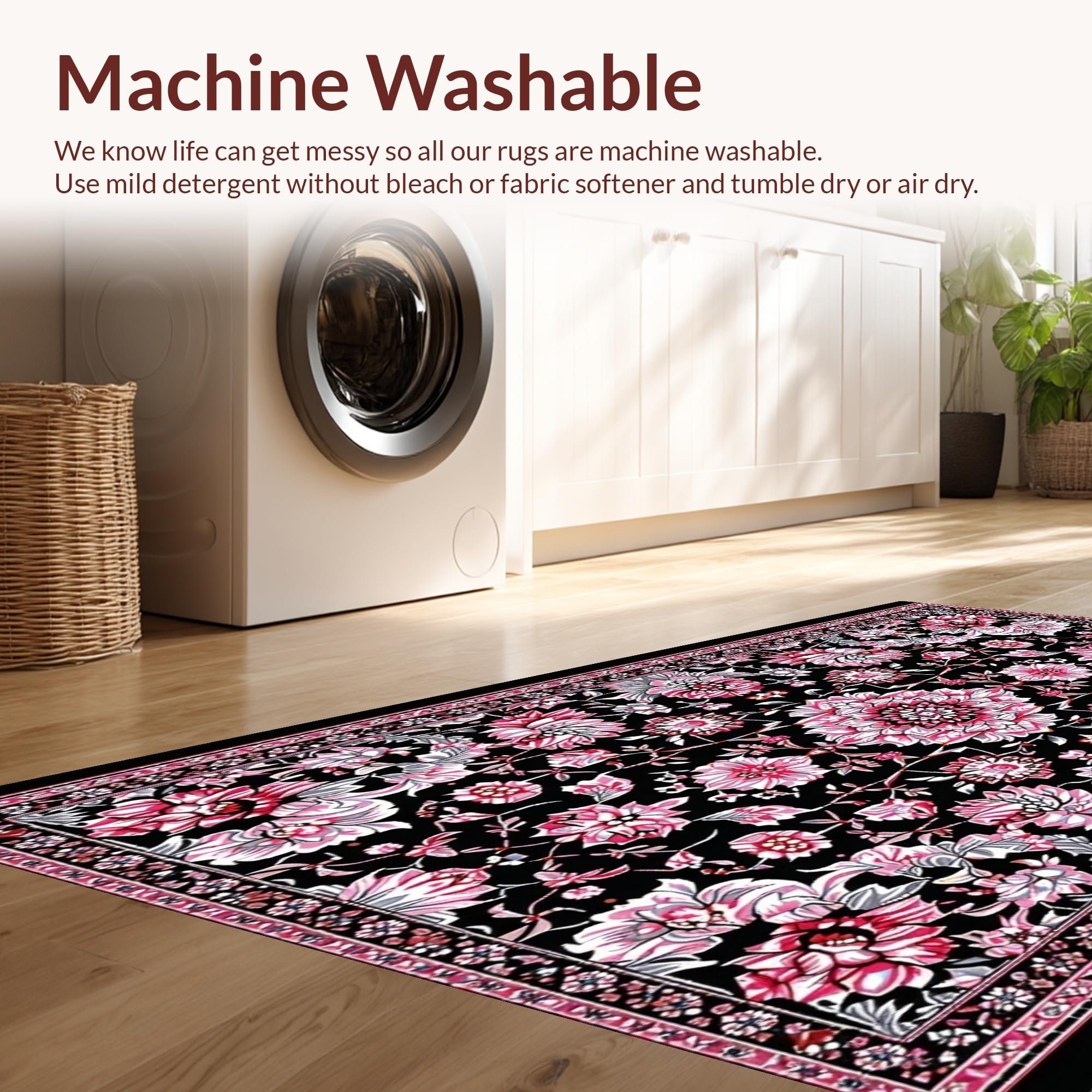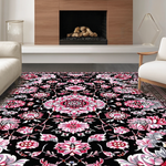 Ultra Soft Area Rug, Non Slip, Stain Resistant, Washable Area Rugs for Living Room, Bedroom, Charming Vintage Blossom Look(Black) Overview: