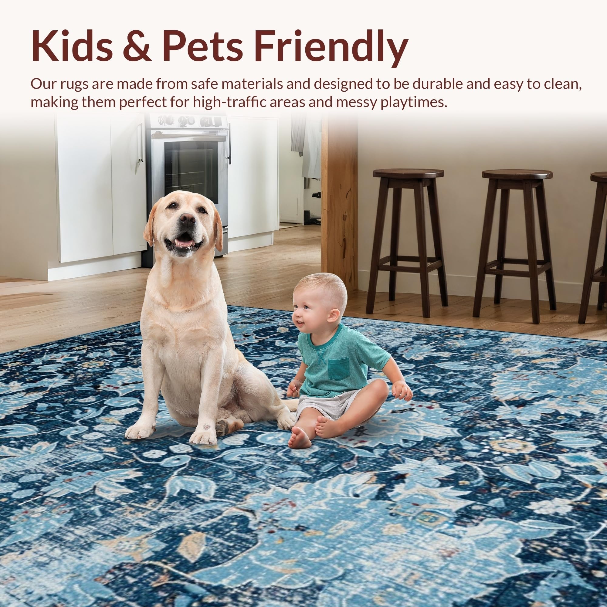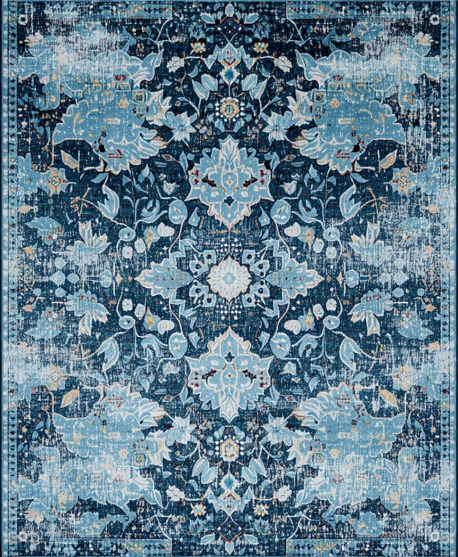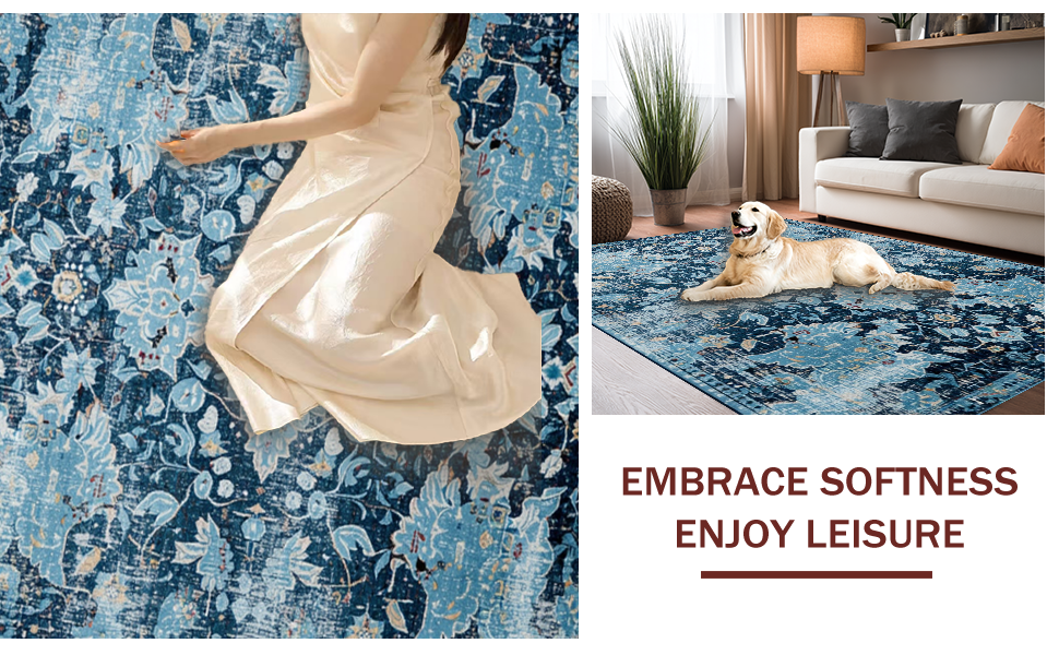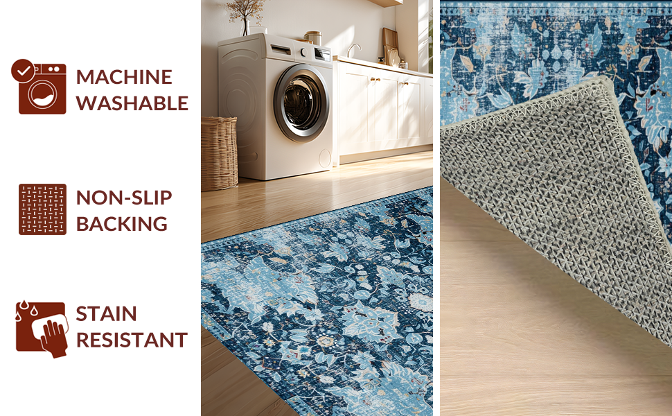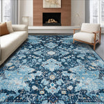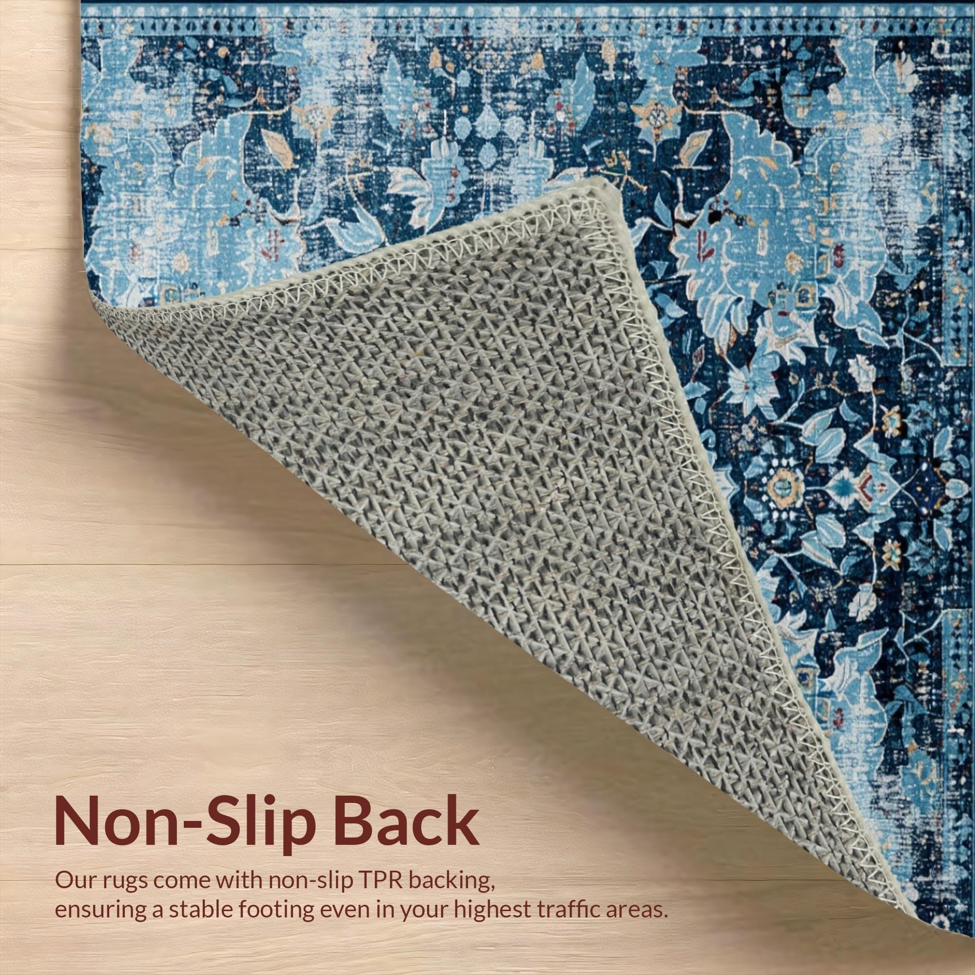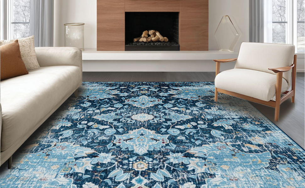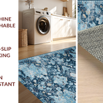 Ultra Soft Area Rug, Non Slip, Stain Resistant, Washable Area Rugs for Living Room, Bedroom, Charming Vintage Botanical Design(Blue) Overview: