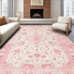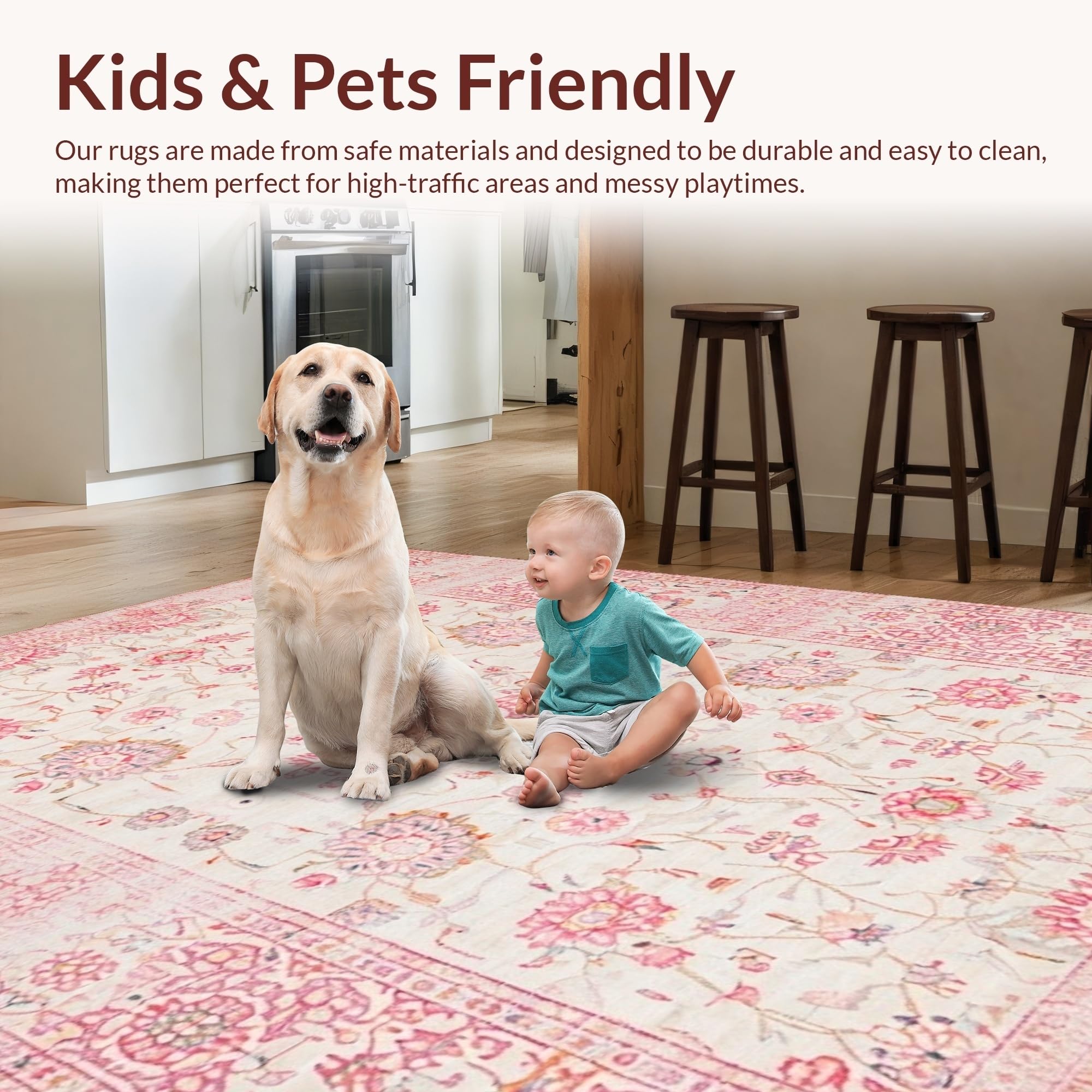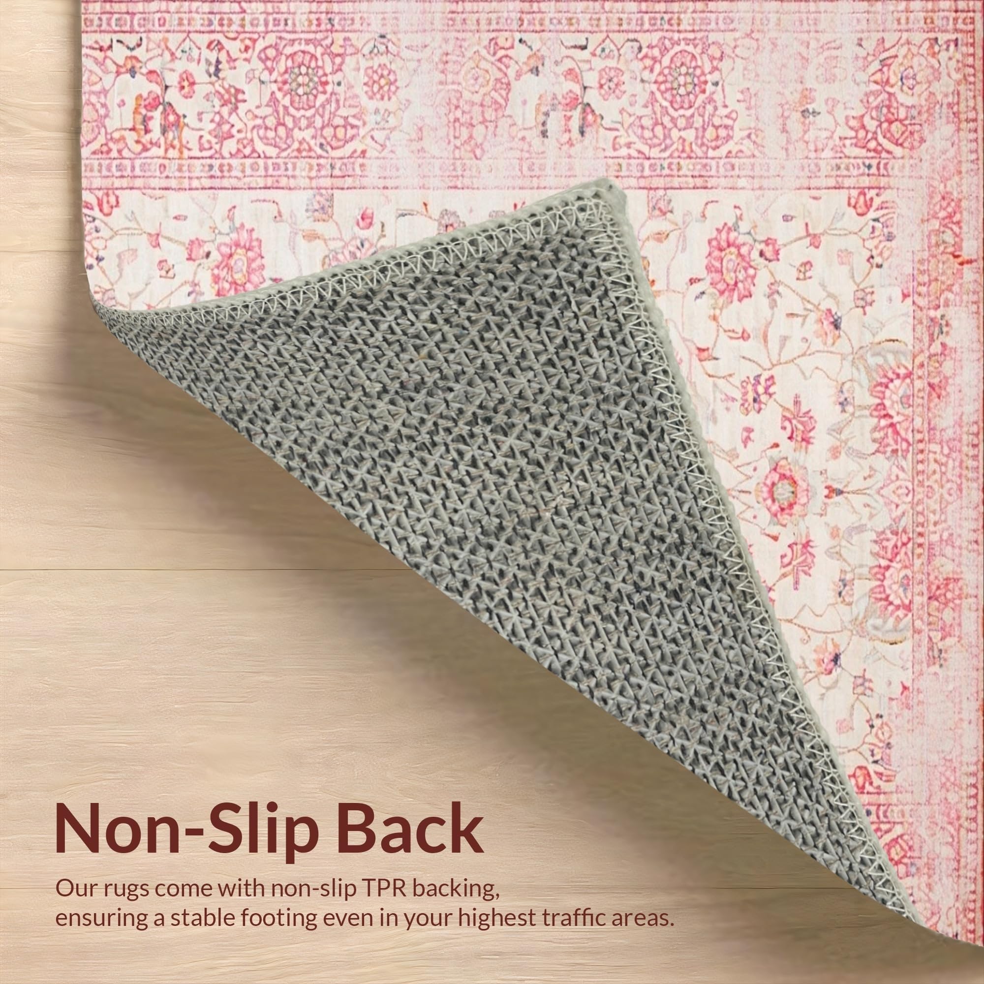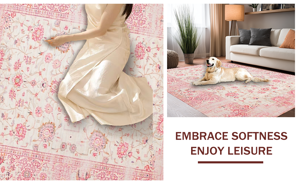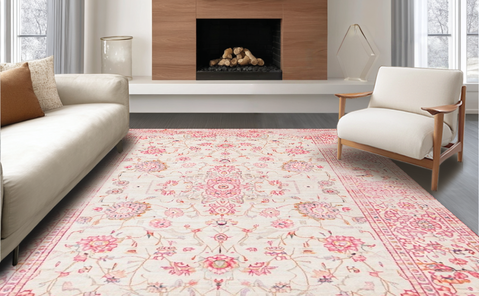 Ultra Soft Area Rug, Non Slip, Stain Resistant, Washable Area Rugs for Living Room, Bedroom, Charming Vintage Botanical Theme(Pink) Overview: