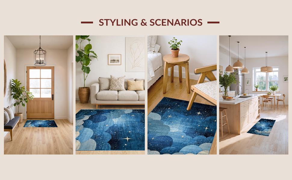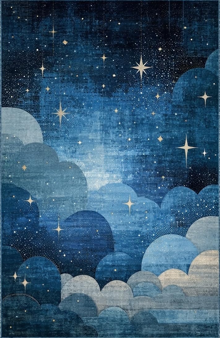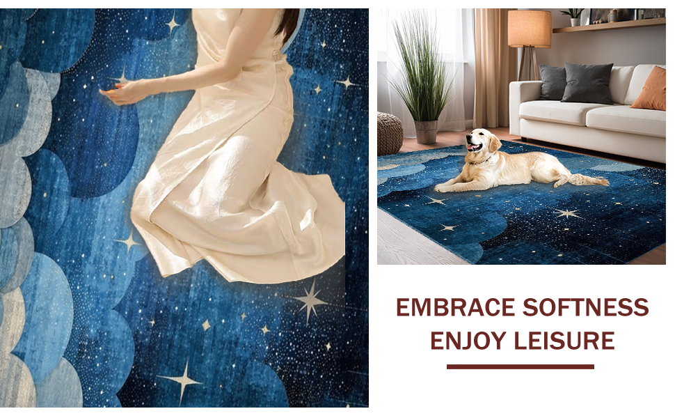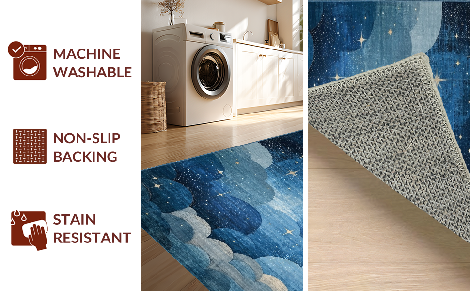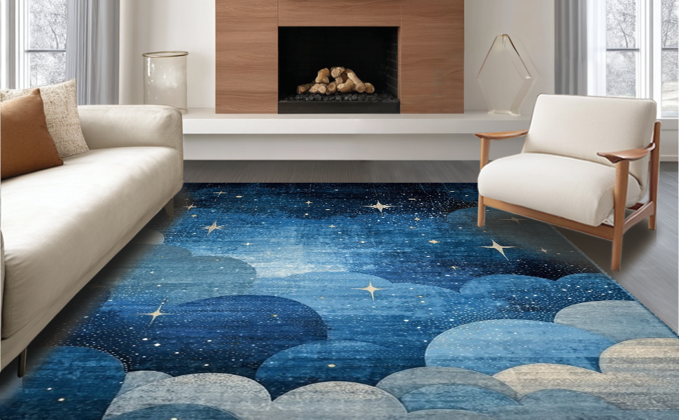 Ultra Soft Area Rug, Non Slip, Stain Resistant, Washable Area Rugs for Living Room, Bedroom, Charming Whimsical Cosmic Design(Blue) Overview: