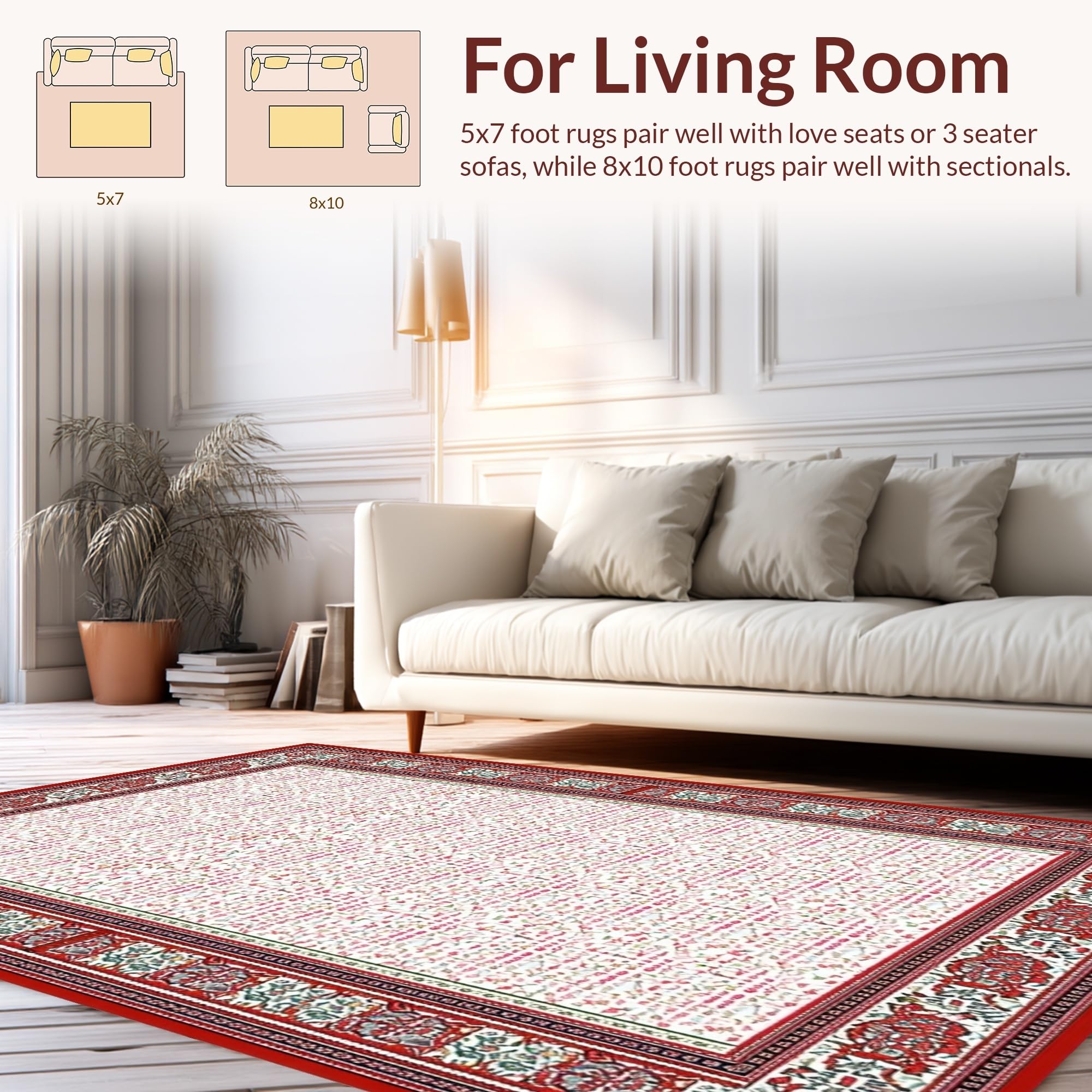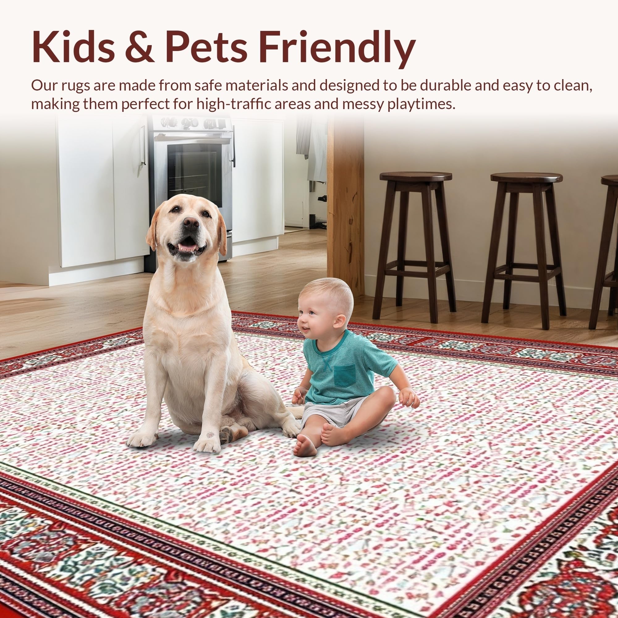 Ultra Soft Area Rug, Non Slip, Stain Resistant, Washable Area Rugs for Living Room, Bedroom, Charming Whimsical Textured Rug(Red) Overview: