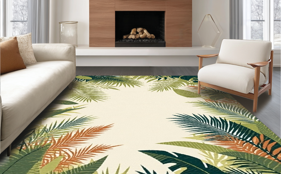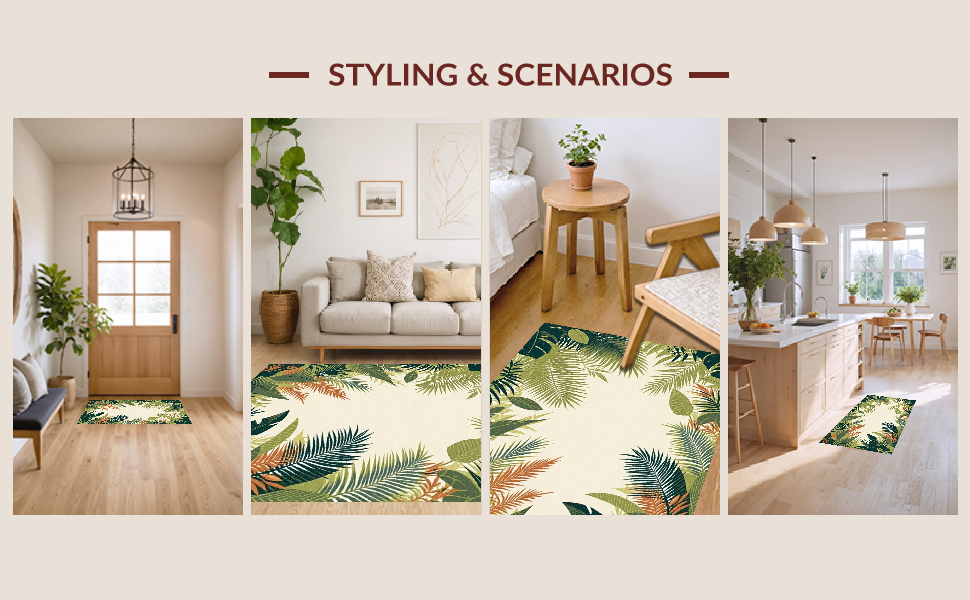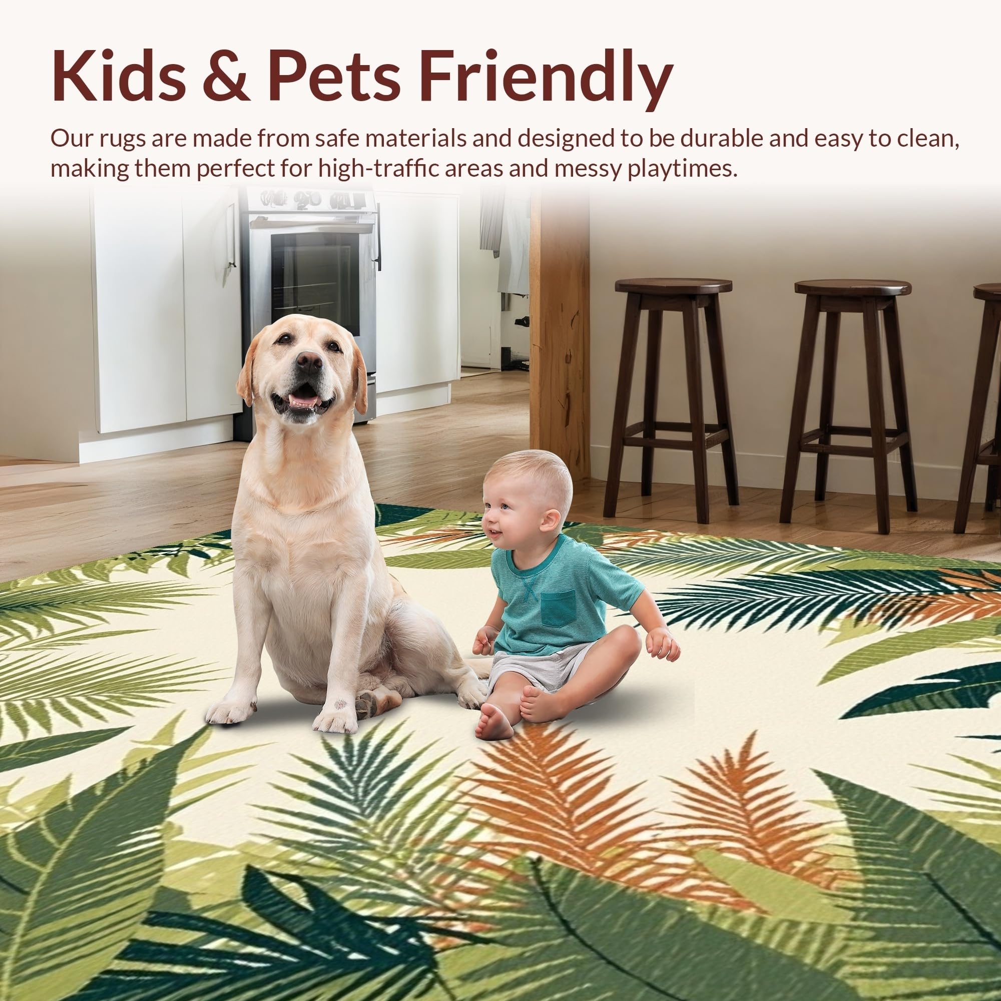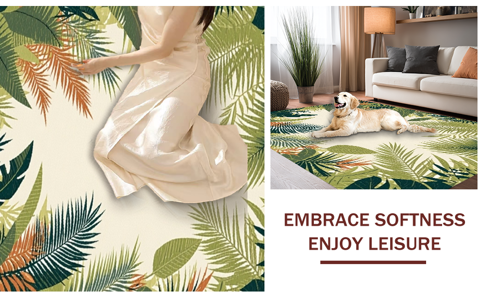 Ultra Soft Area Rug, Non Slip, Stain Resistant, Washable Area Rugs for Living Room, Bedroom, Charming Wildlife Illustration Style(Green) Overview: