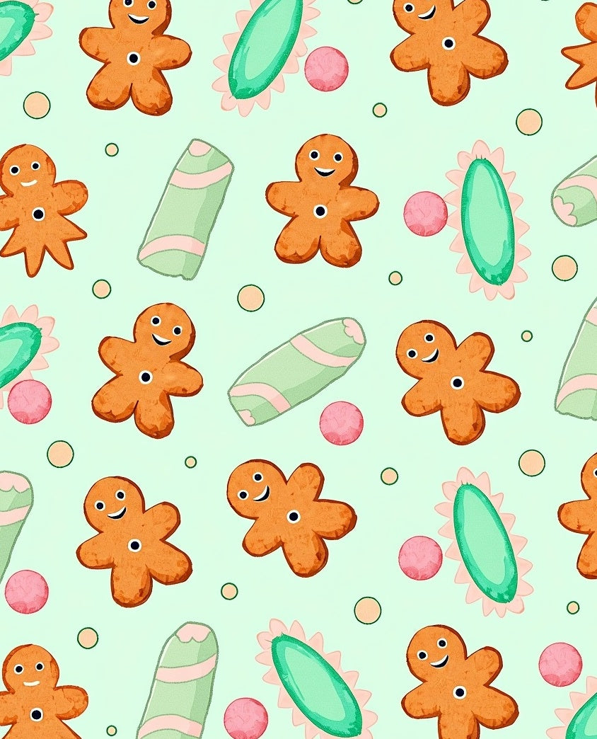 Charming Winter Sweets Motif Pair Delightful Seasonal Pastry Print(Green)