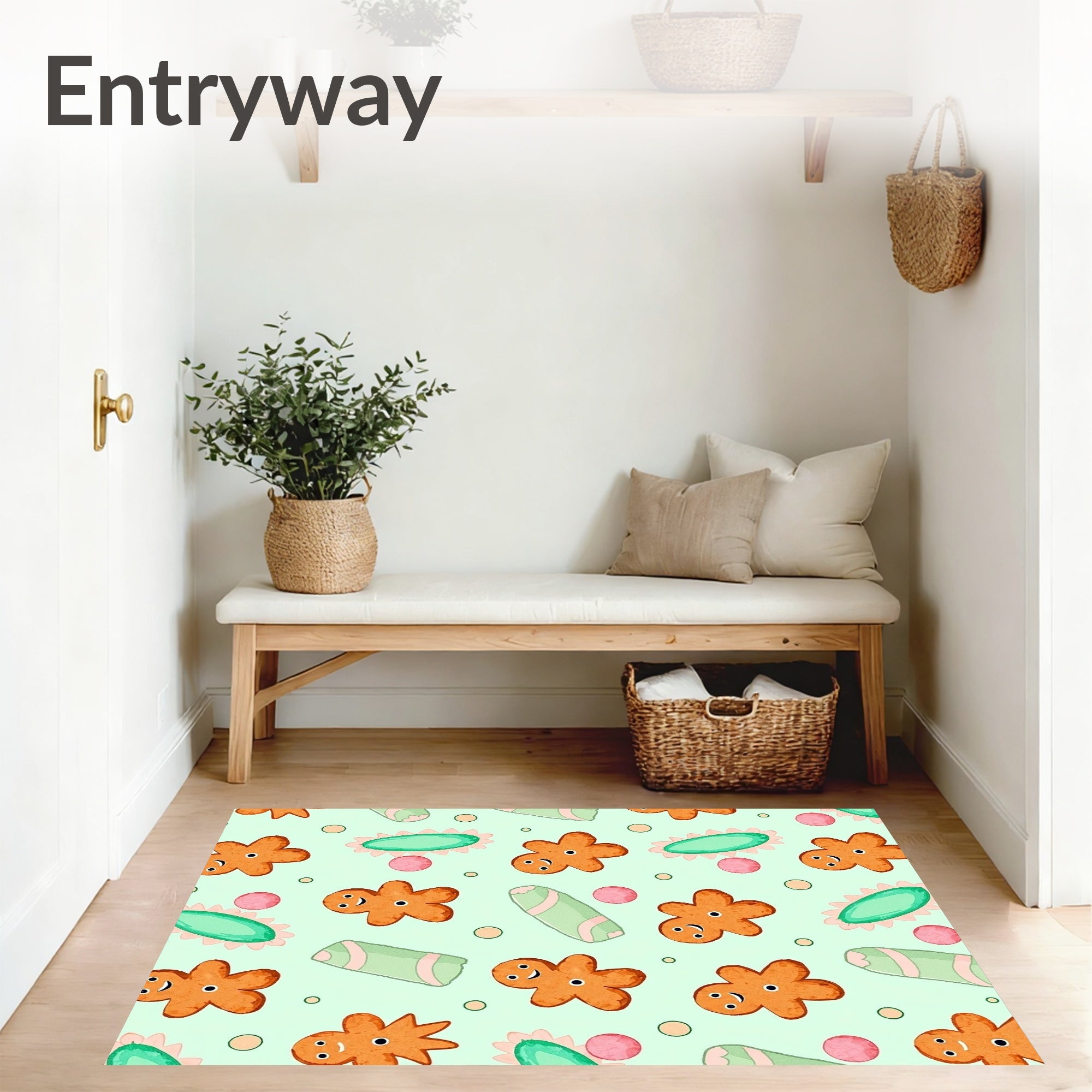 Ultra Soft Area Rug, Non Slip, Stain Resistant, Washable Area Rugs for Living Room, Bedroom, Charming Winter Sweets Motif Pair Delightful Seasonal Pastry Print(Green) Overview: