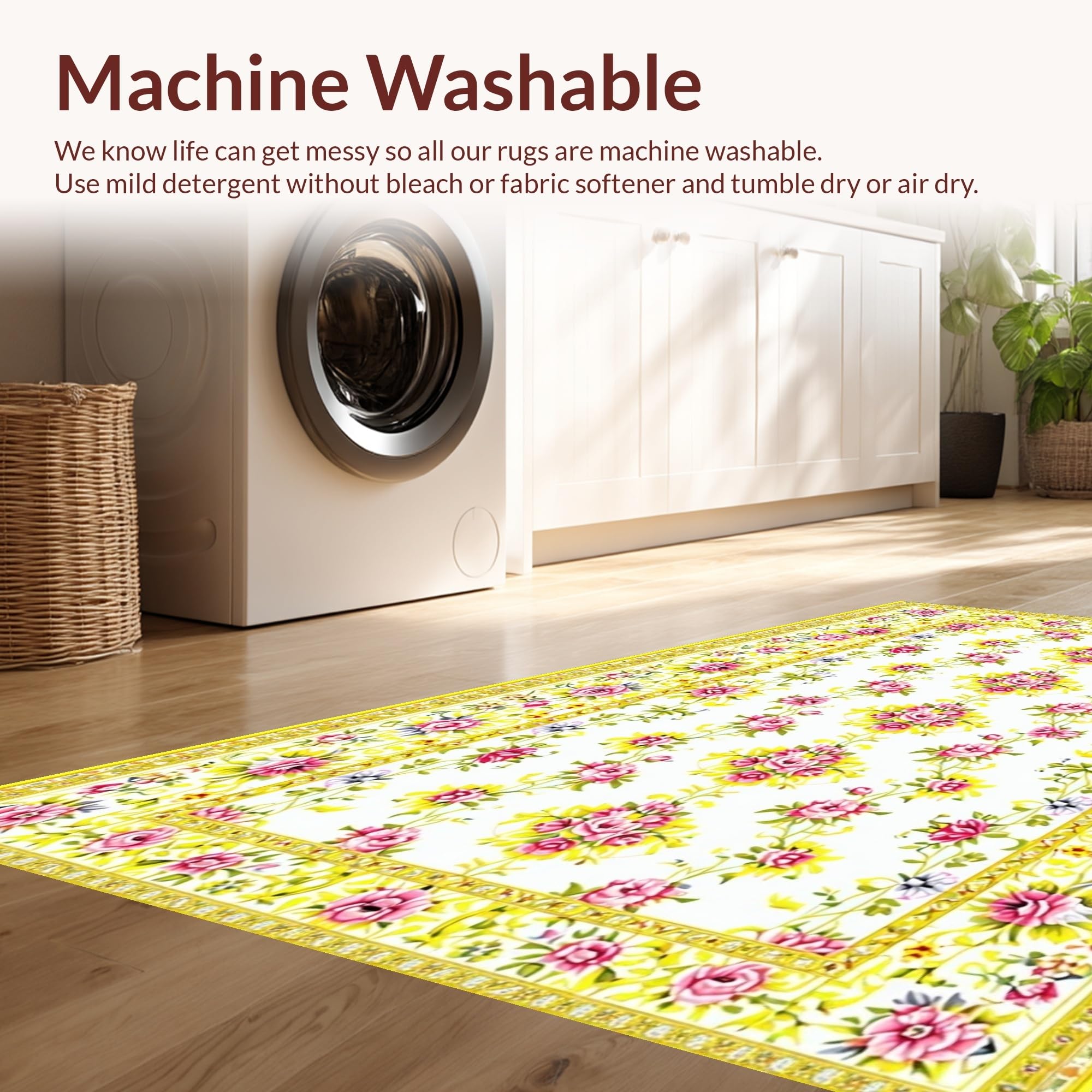 - Machine Washable: Our rugs can be easily thrown in the wash machine.