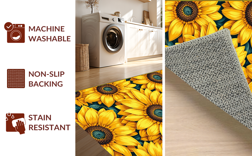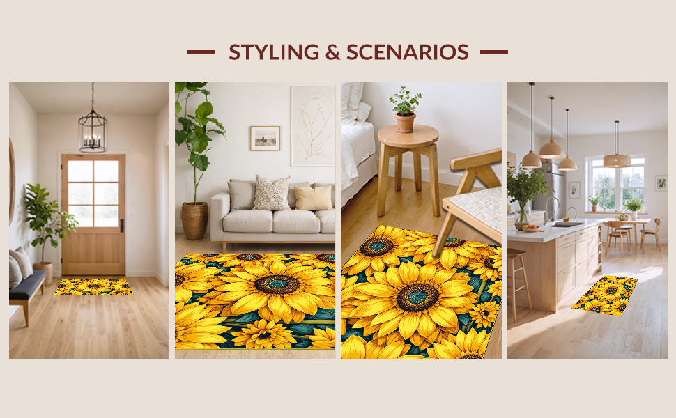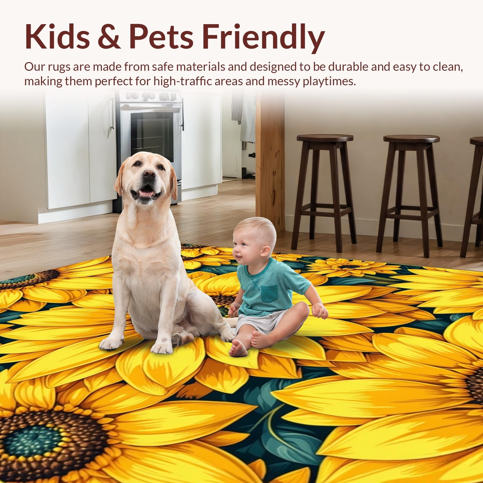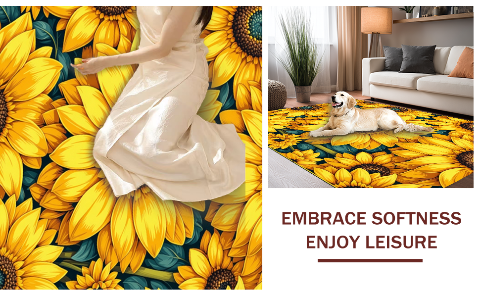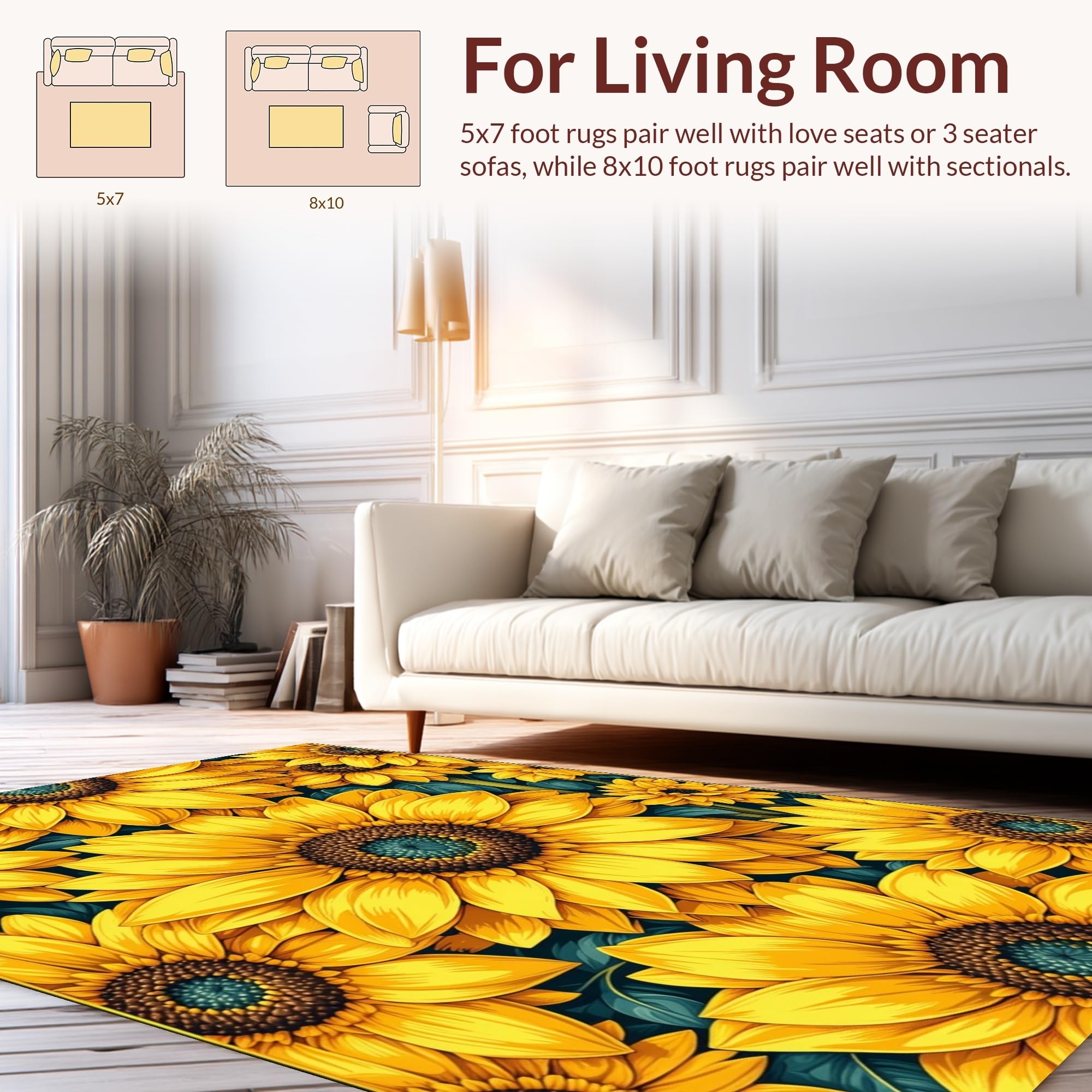 Ultra Soft Area Rug, Non Slip, Stain Resistant, Washable Area Rugs for Living Room, Bedroom, Charming Yellow Garden Motif(Yellow) Overview: