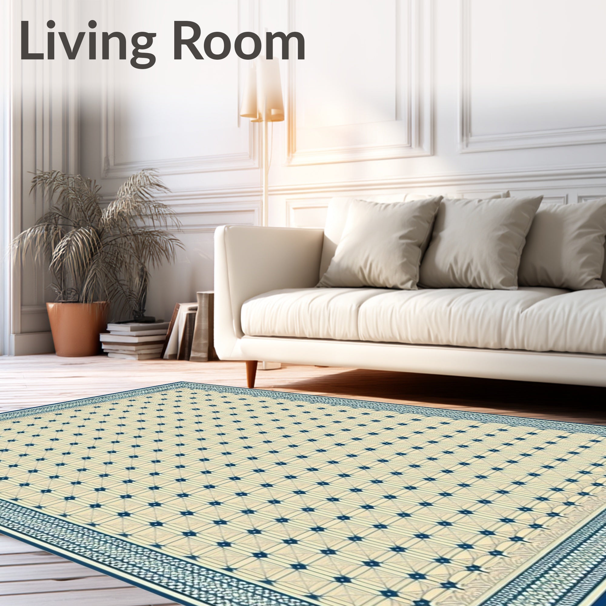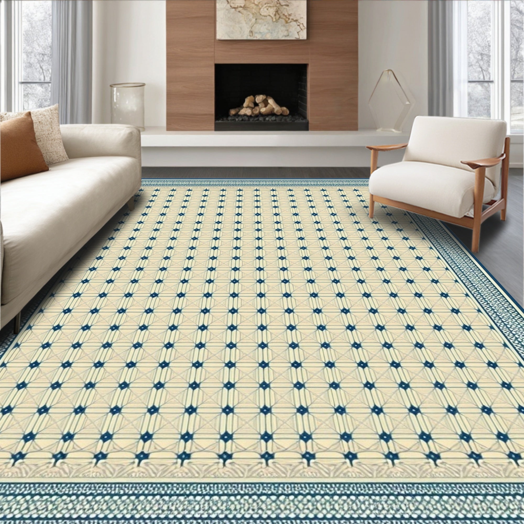 Ultra Soft Area Rug, Non Slip, Stain Resistant, Washable Area Rugs for Living Room, Bedroom, Chateau Collection Desert Oasis Area Beige Blue Geometric Diamond Grid(Beige) Overview: